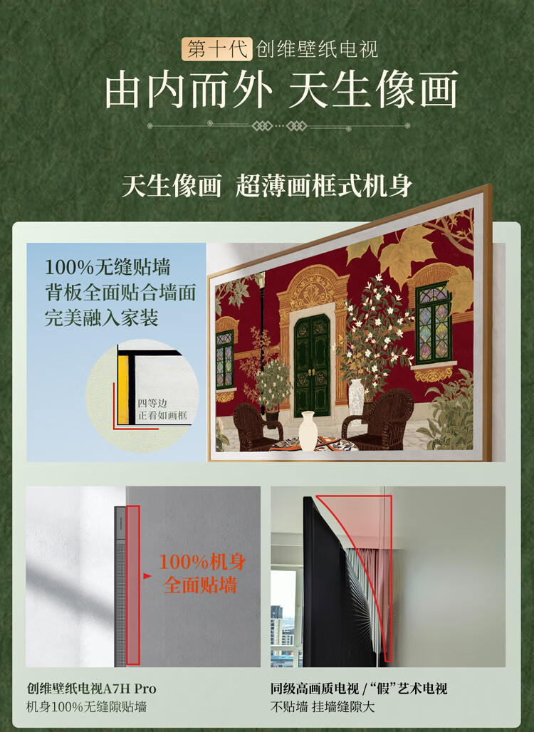 创维壁纸电视55A7H Pro 26年新品 艺术电视A7FPro升级款 MiniLED 超薄无缝贴墙 55英寸