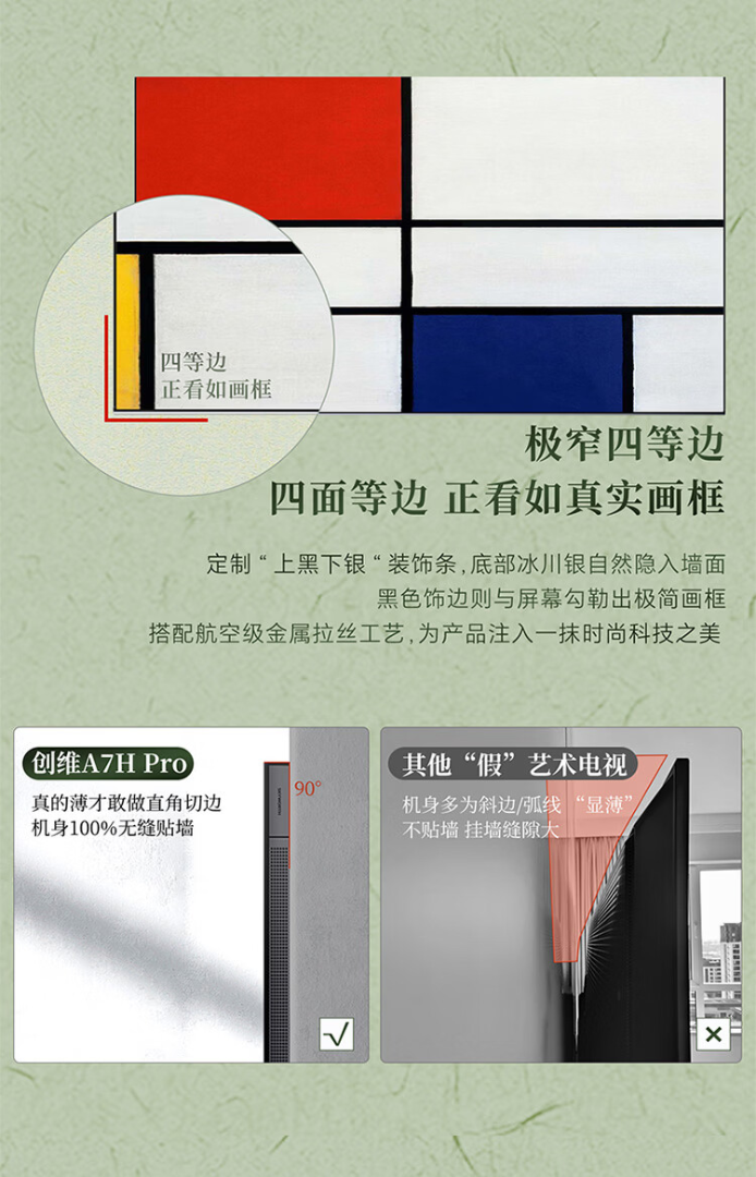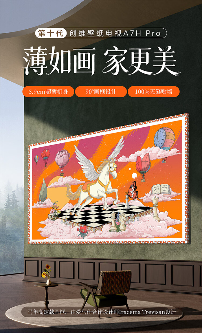 创维壁纸电视75A7H PRO75英寸艺术壁纸电视Mini LED 3.9cm超薄无缝贴墙 超薄AI控光系统 75英寸