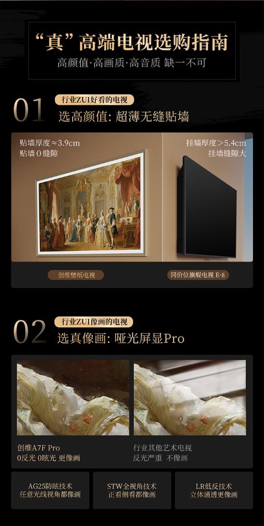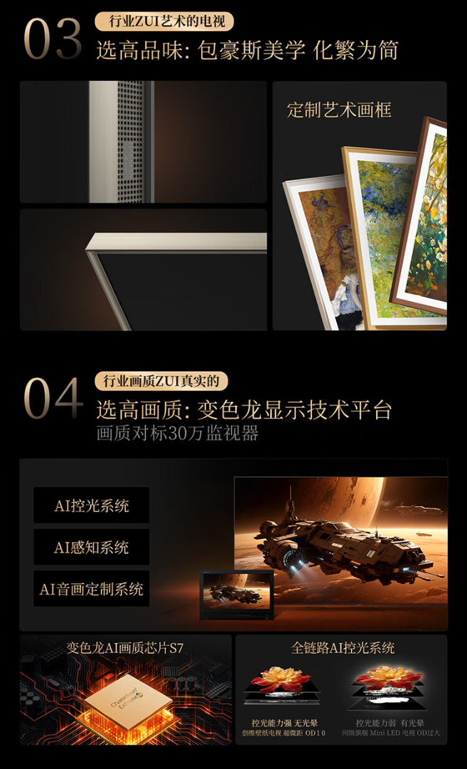 创维壁纸电视85A7F Pro 85英寸超薄壁画艺术mini led电视机85吋 平板智能家电 85A7F Pro 85英寸