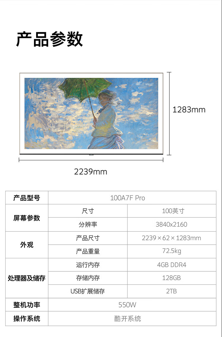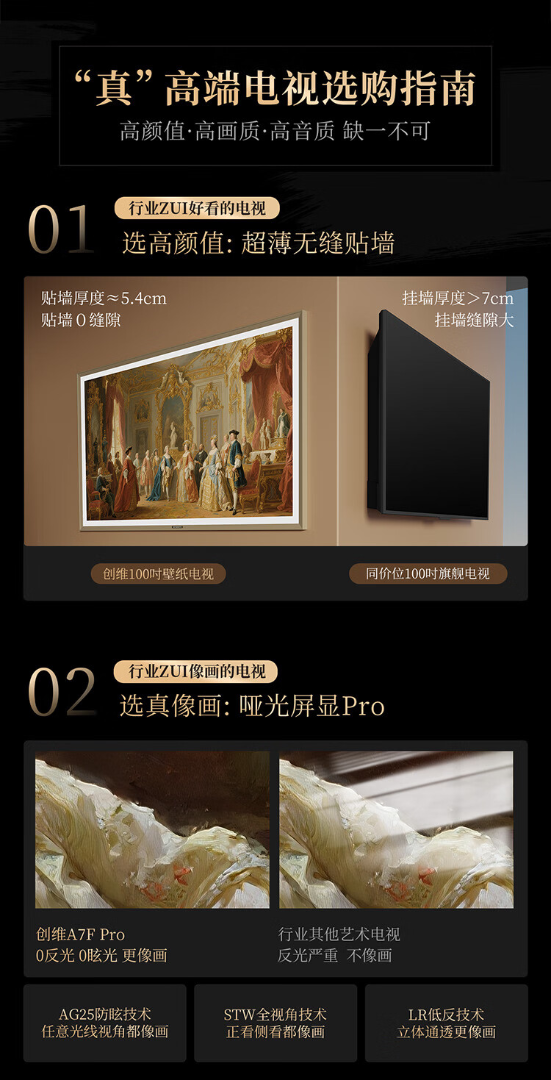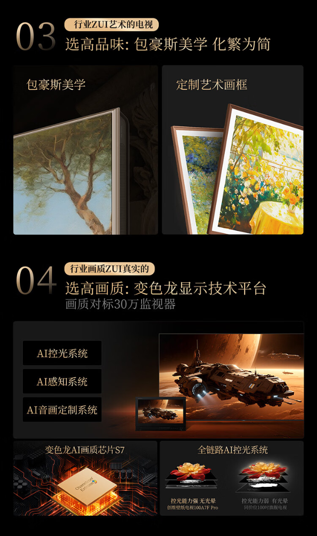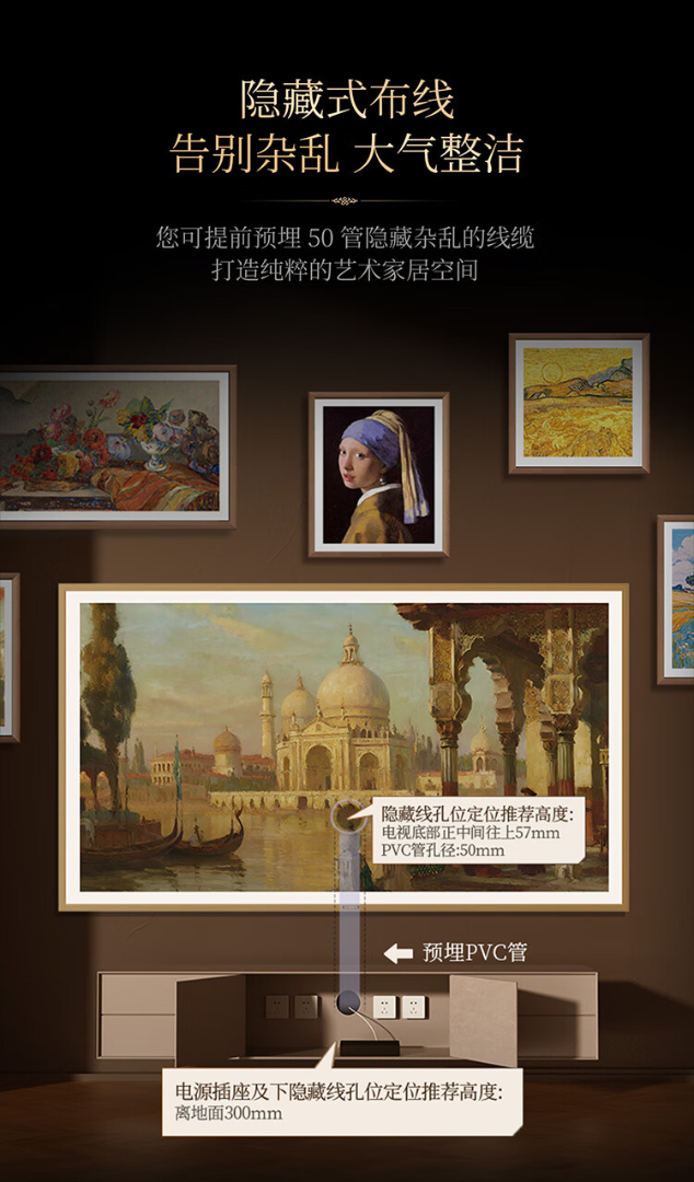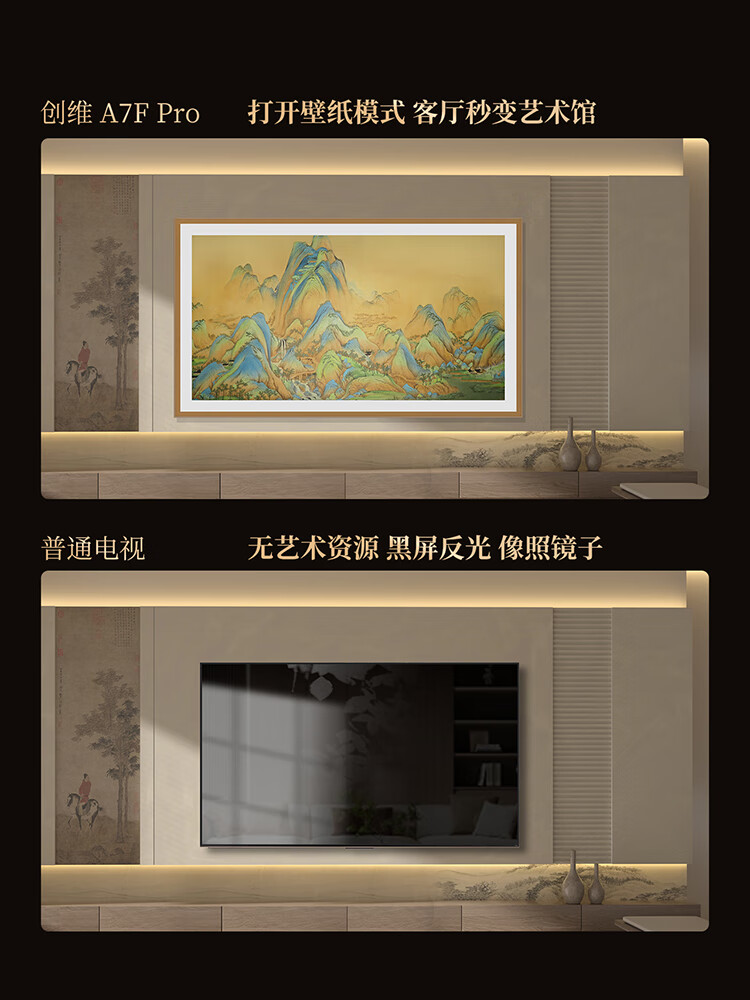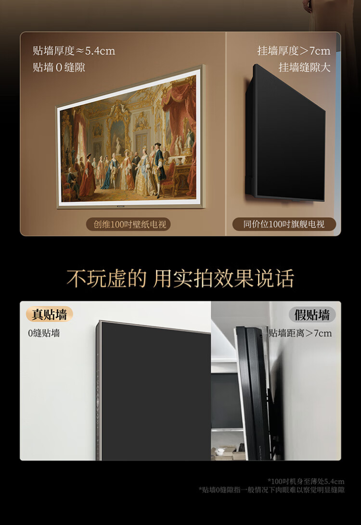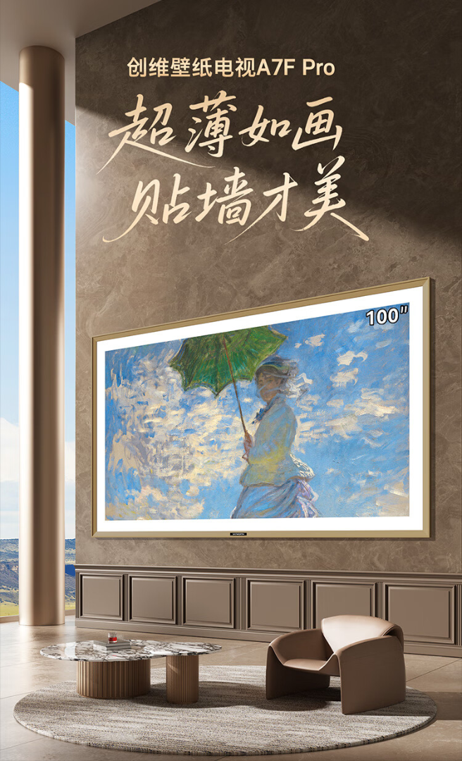 创维壁纸电视100A7F Pro 100英寸超薄无缝贴墙壁画艺术mini led 智能4K液晶平板电视机100吋【新品】官方标配 一级能效