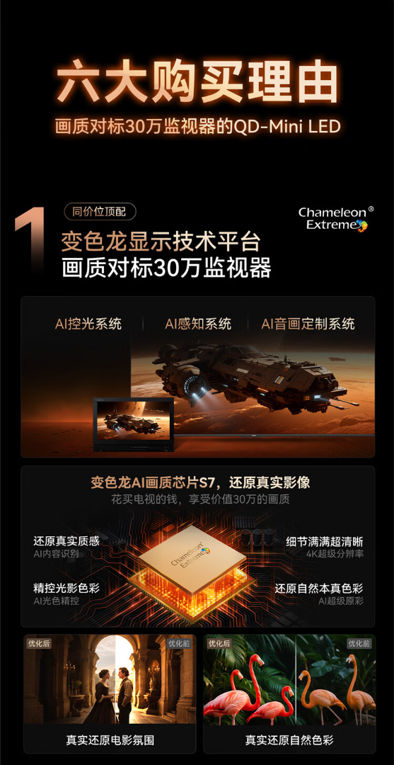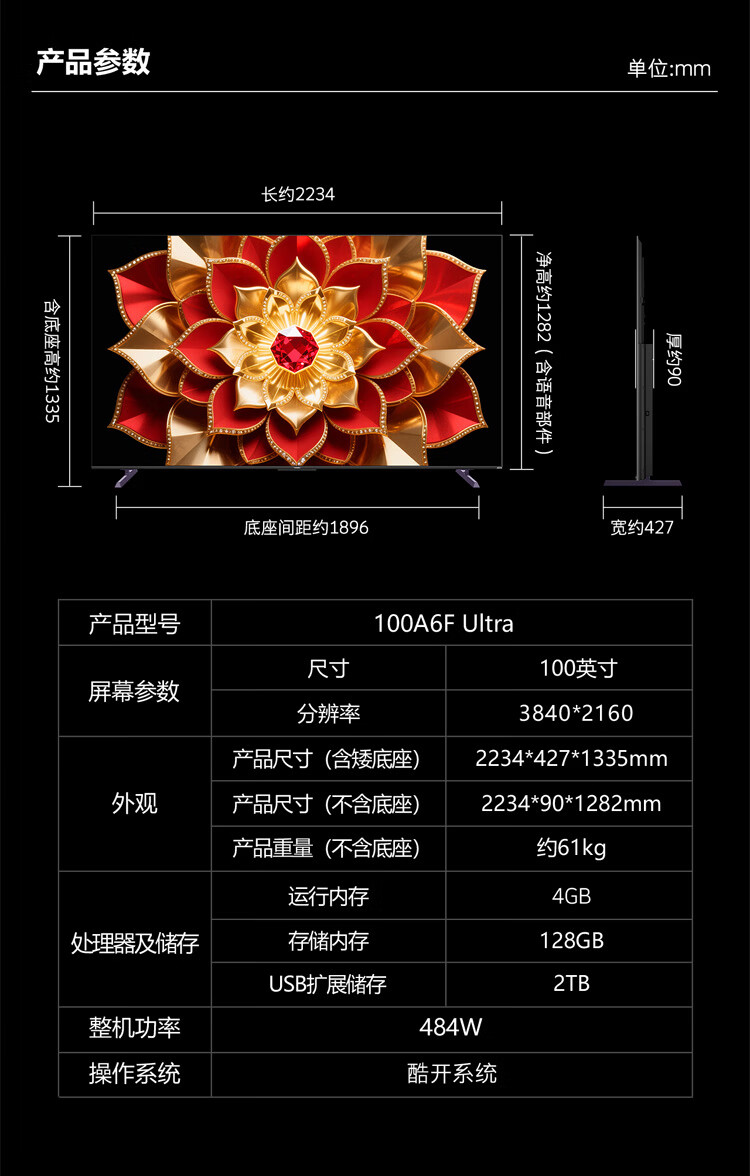 创维电视100A6F Ultra 100英寸智能平板电视机4048分区QD-Mini LED 液晶游戏 一级能效 A6F Pro升级款 100英寸