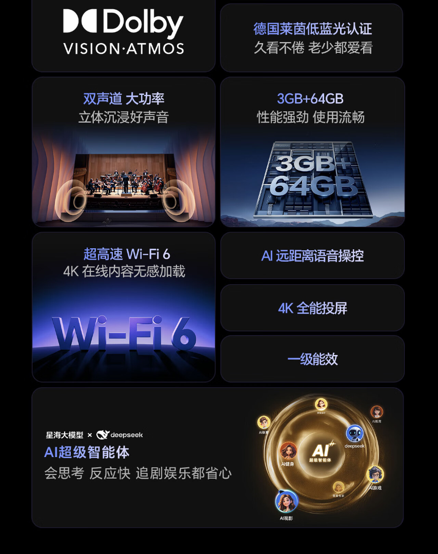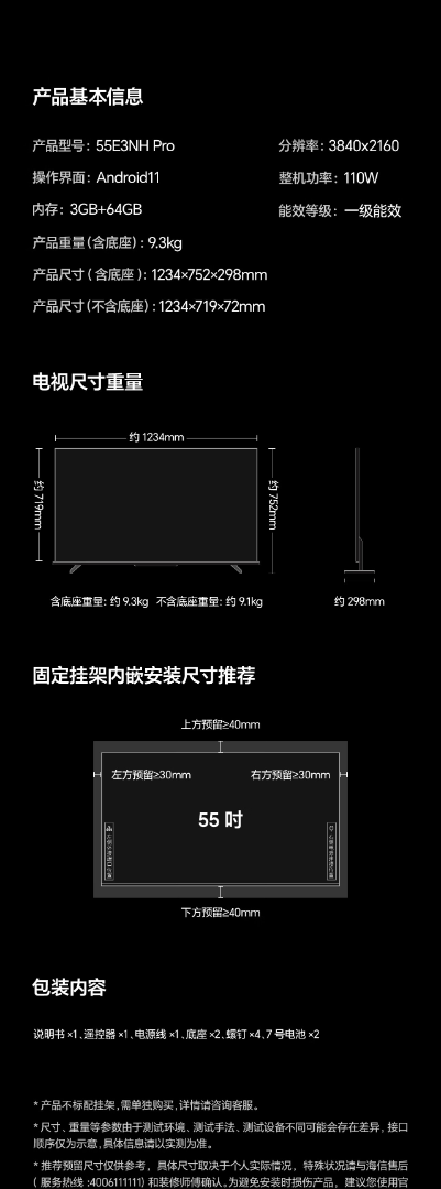 海信电视55E3NH Pro 55英寸 144Hz高刷 杜比全景声 智能Wi-Fi6 U+超画质 大内存 平板电视 55英寸