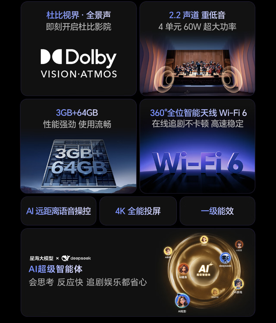 海信电视75E3NH Pro 75英寸 264Hz高刷 高色域 2.2重低音 智能Wi-Fi6 大内存 平板电视 75英寸