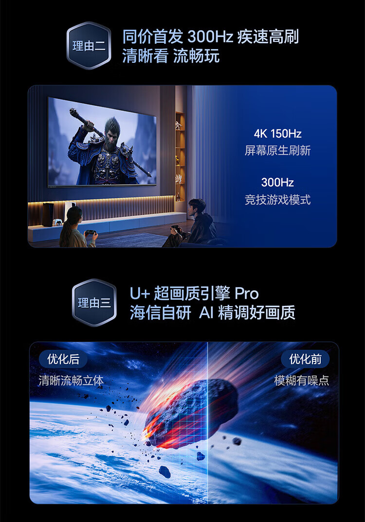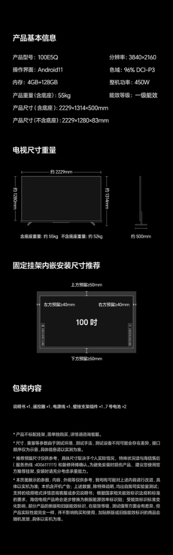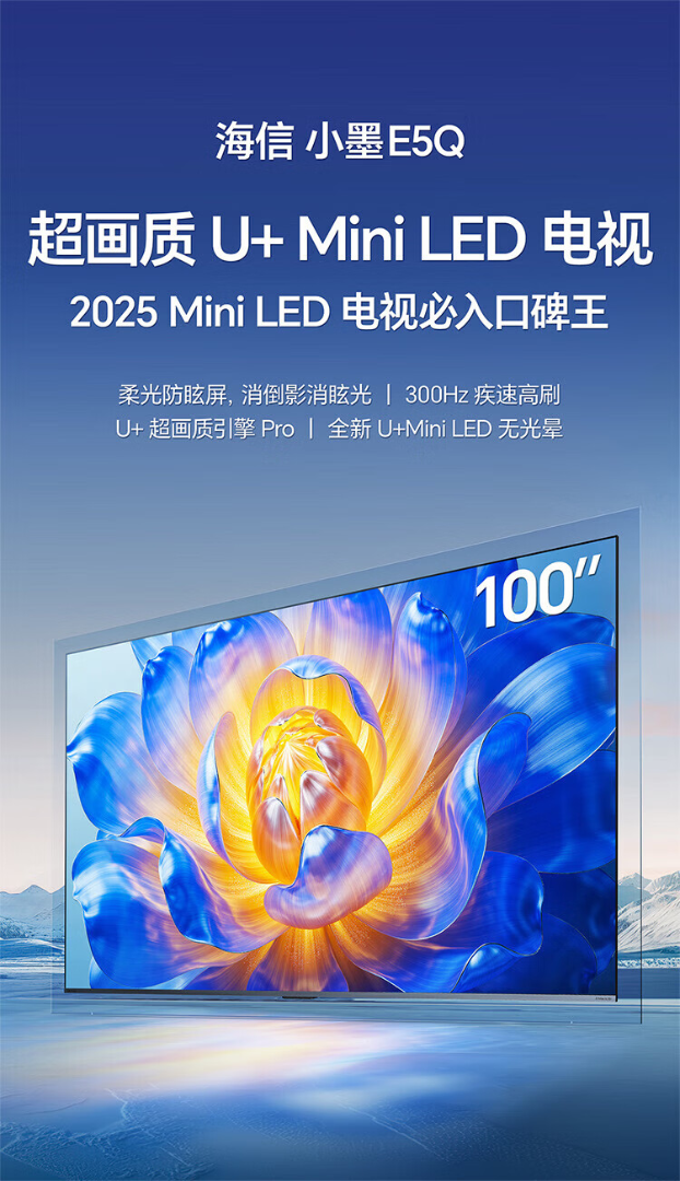 海信电视100吋 E5Q系列 柔光防眩屏 4K超画质U+MiniLED平板电视 300Hz高刷 Hi-Fi高保真音箱 100E5Q 100英寸