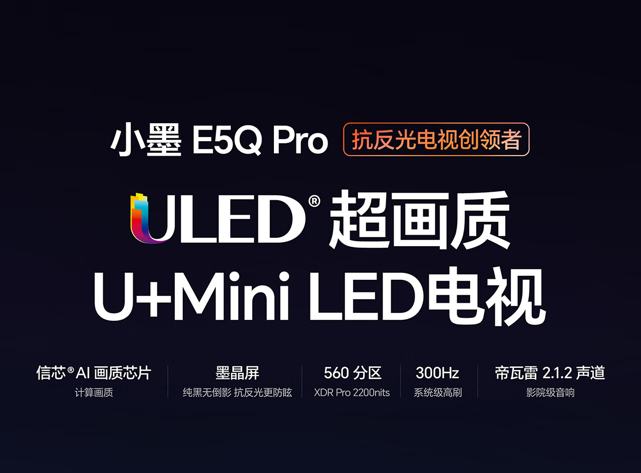 海信电视小墨E5Q Pro 65英寸 560分区U+MiniLED 信芯芯片抗反光防眩光墨晶屏世界杯65E5Q-PRO 65英寸