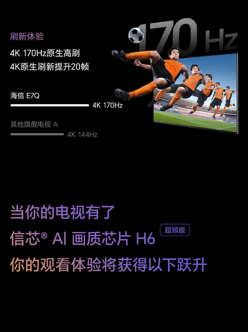 海信电视E7Q 85英寸 信芯芯片H6超频版 黑曜屏Pro XDR5200nits 3500分区 世界杯电视85E7Q 85英寸 85e7q