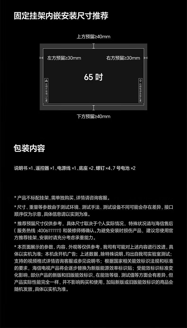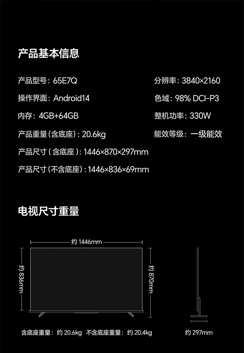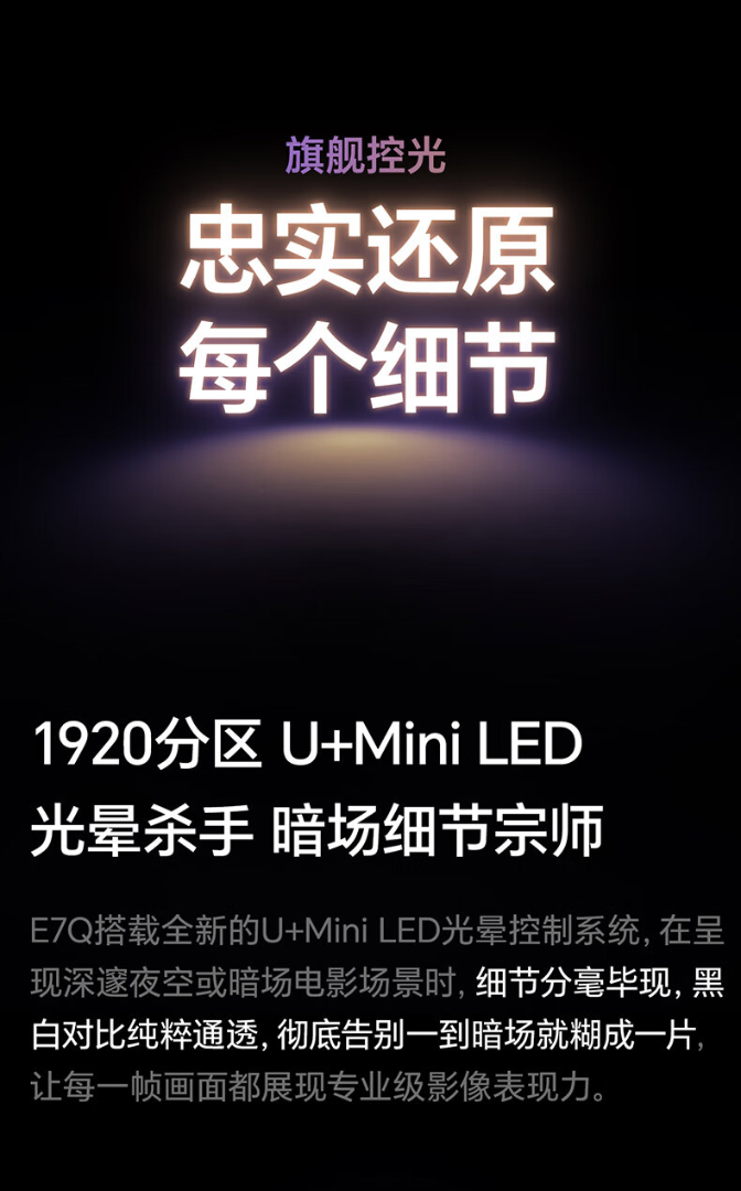 海信(Hisense)电视E7Q 65英寸 信芯芯片H6超频版 黑曜屏Pro XDR5200nits 1920分区 世界杯电视65E7Q 65英寸