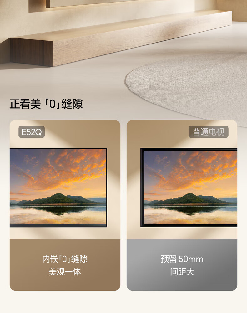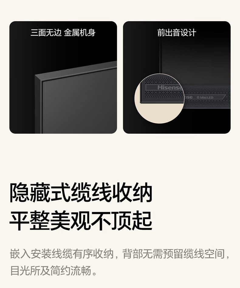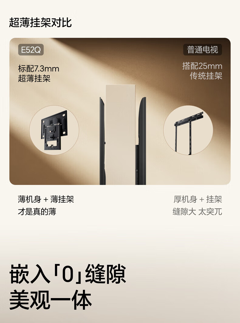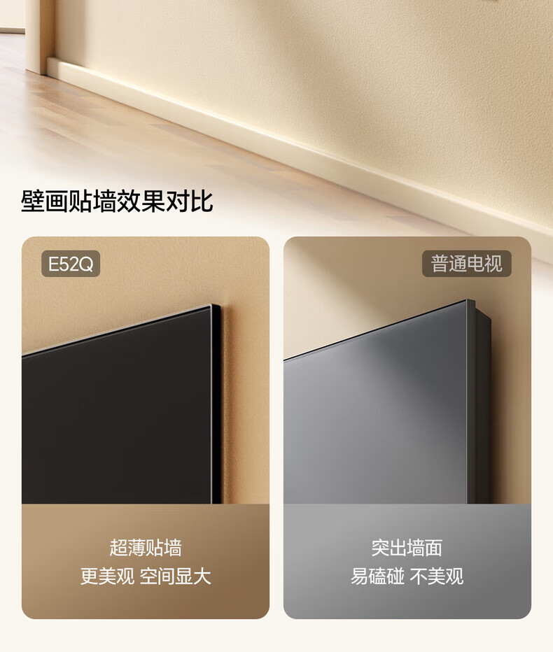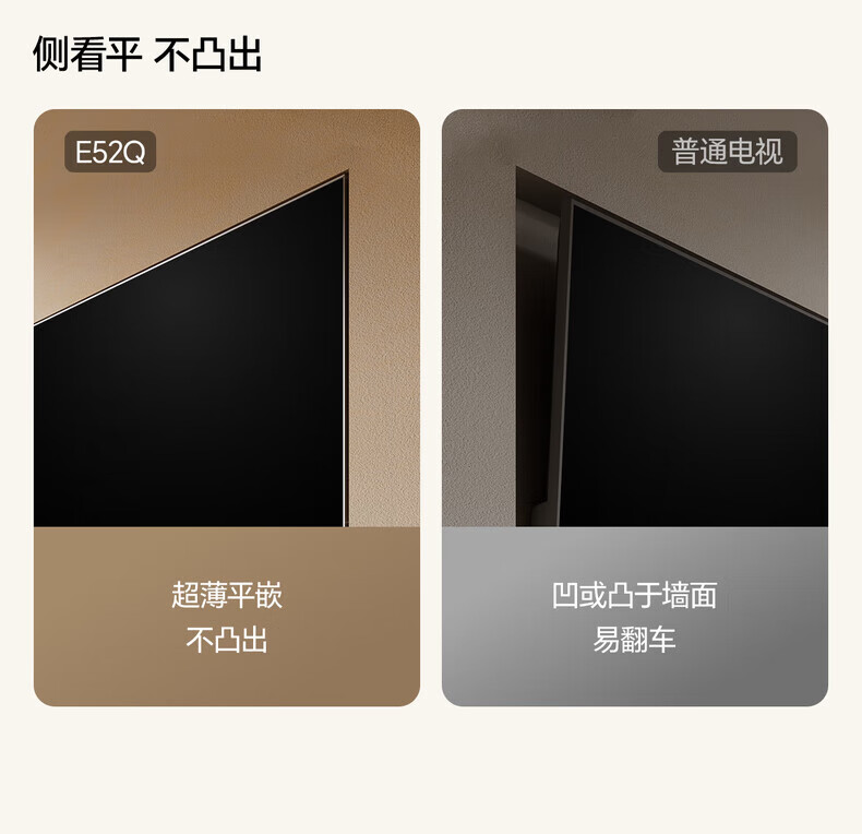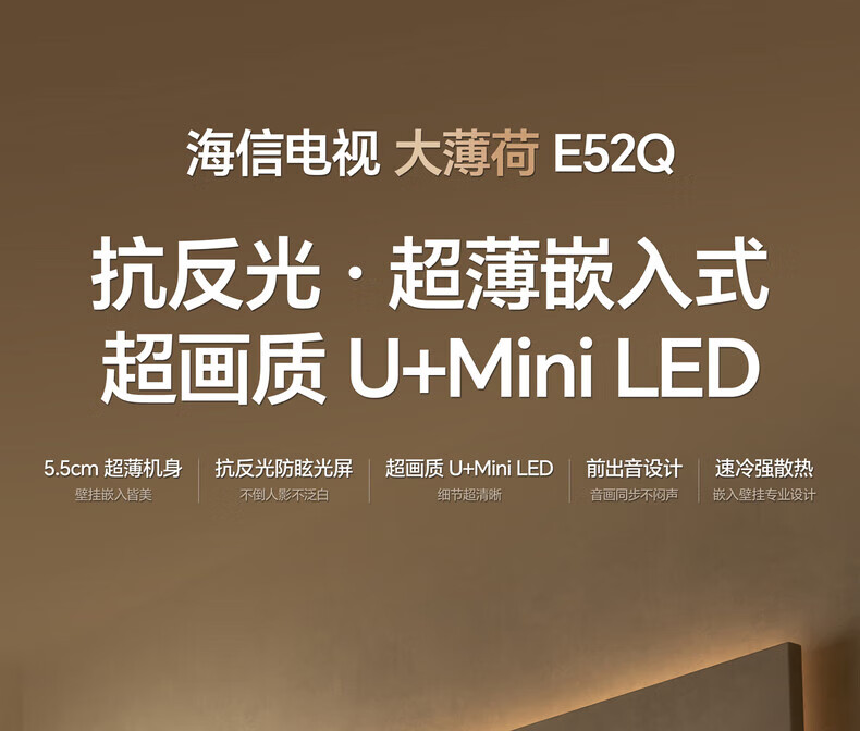 海信(Hisense)电视大薄荷E52Q 85吋 超画质U+MiniLED 前出音设置 超薄壁纸电视 抗反光防眩光 嵌入式电视85E52Q 85英寸 大薄荷E52Q系列