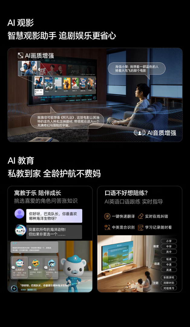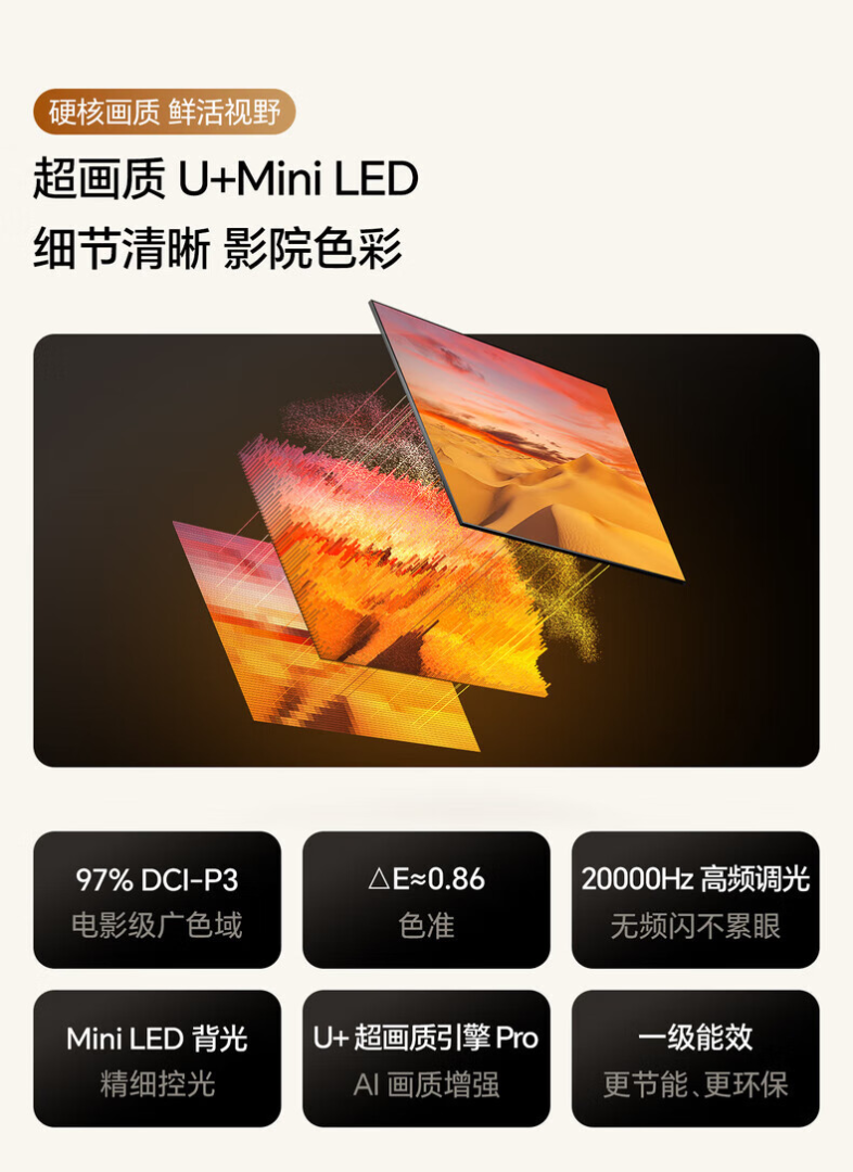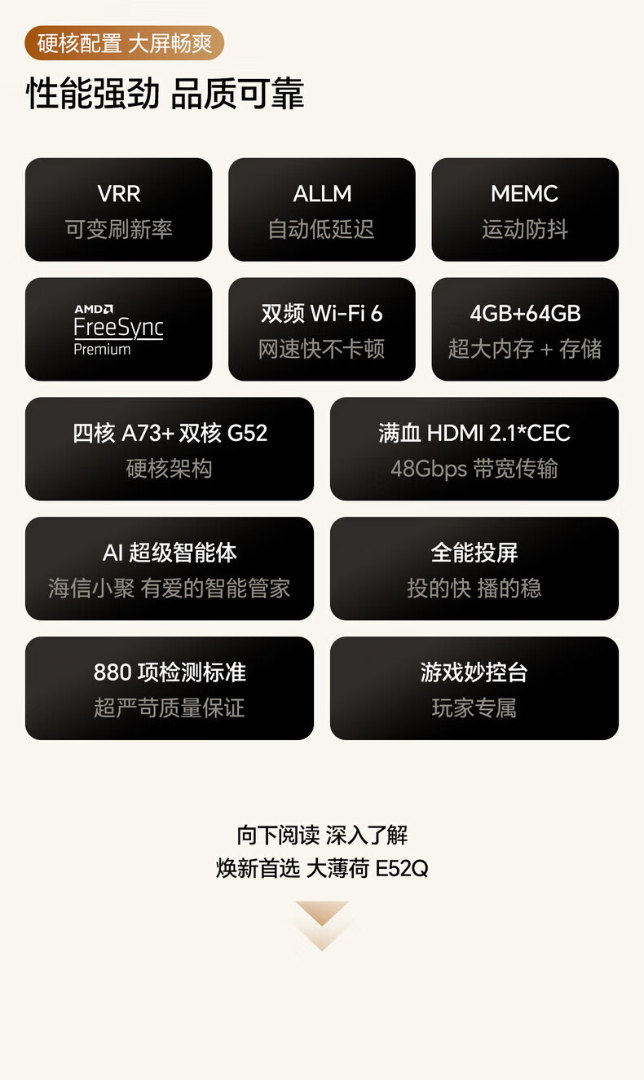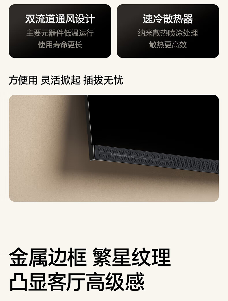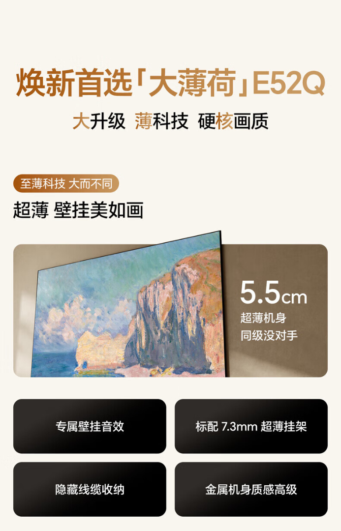 海信(Hisense)电视大薄荷E52Q 85吋 超画质U+MiniLED 前出音设置 超薄壁纸电视 抗反光防眩光 嵌入式电视85E52Q 85英寸 大薄荷E52Q系列