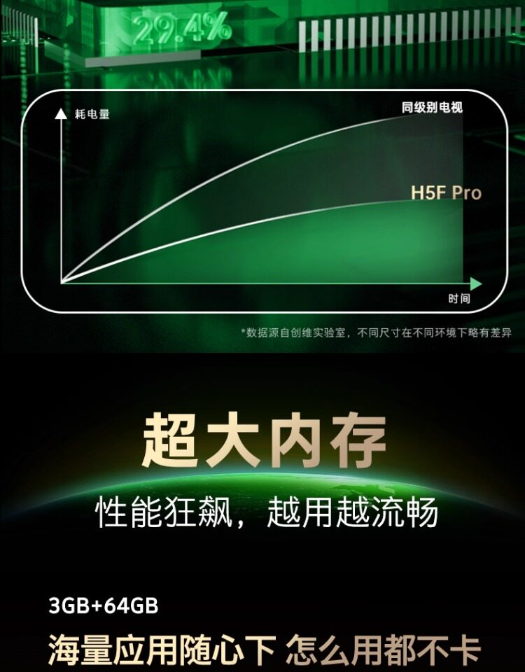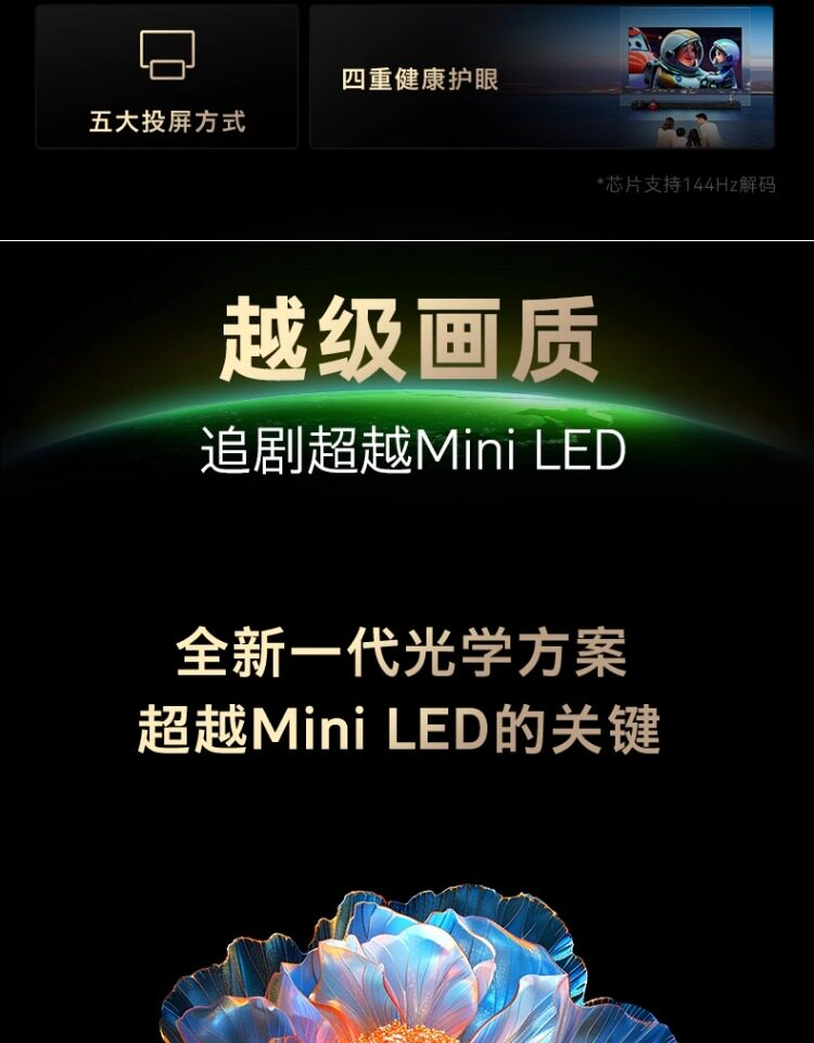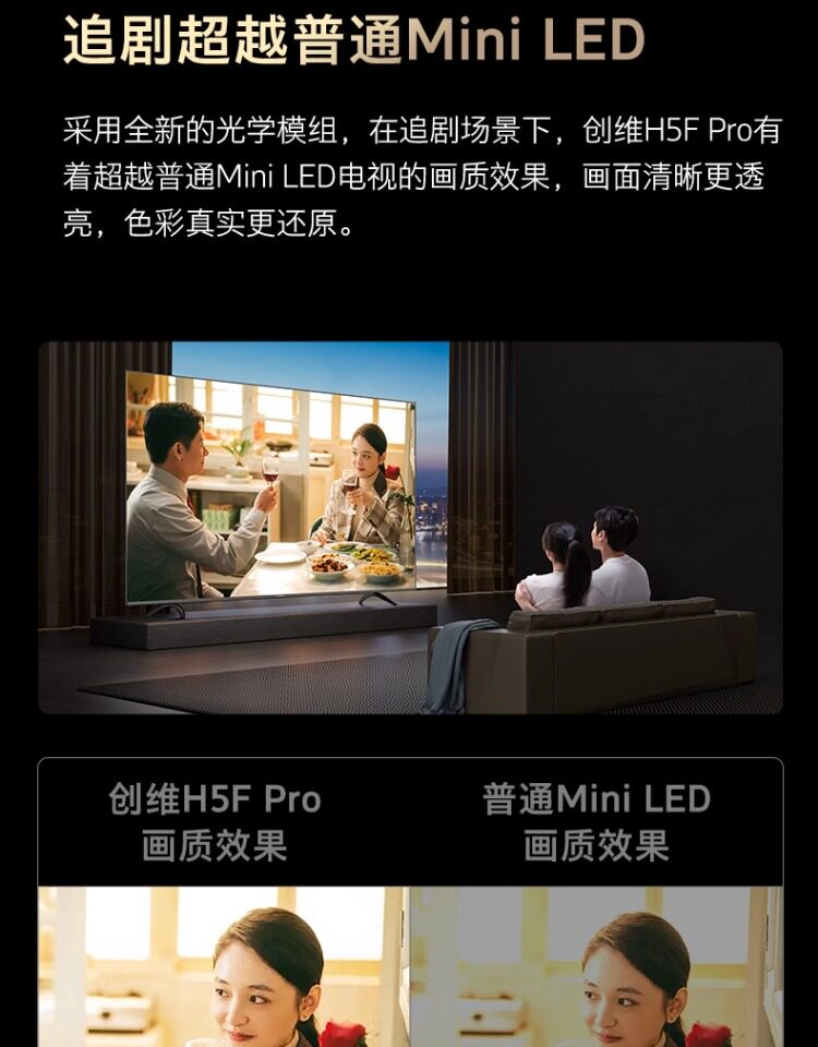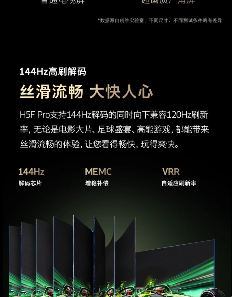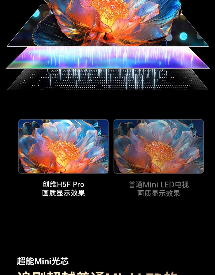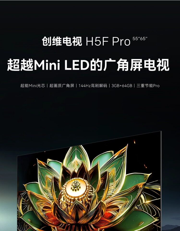 创维大内存高亮广角屏65H5F Pro 超能Mini光芯 144Hz高刷 3+64G