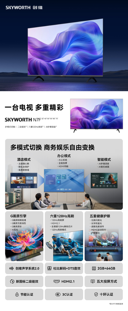 【云采】创维75英寸电视机 120Hz二级能效 AI秒懂语音 75N7F 底座