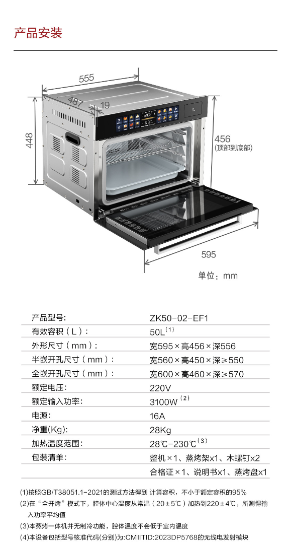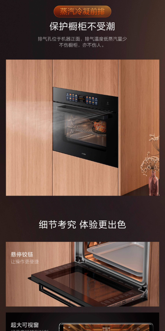方太蒸烤烘炸炖一体机02-EF1智能彩膜嵌入式电蒸烤箱家用官方旗舰
