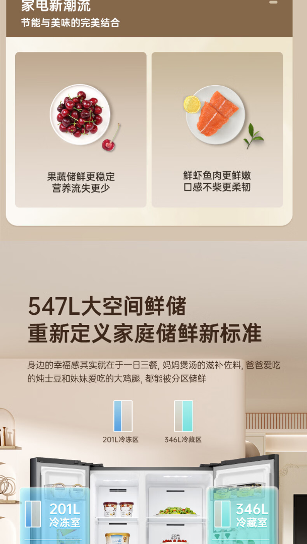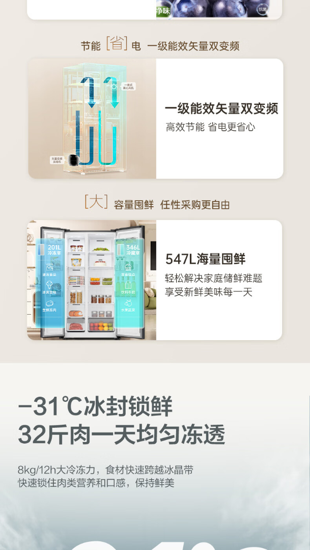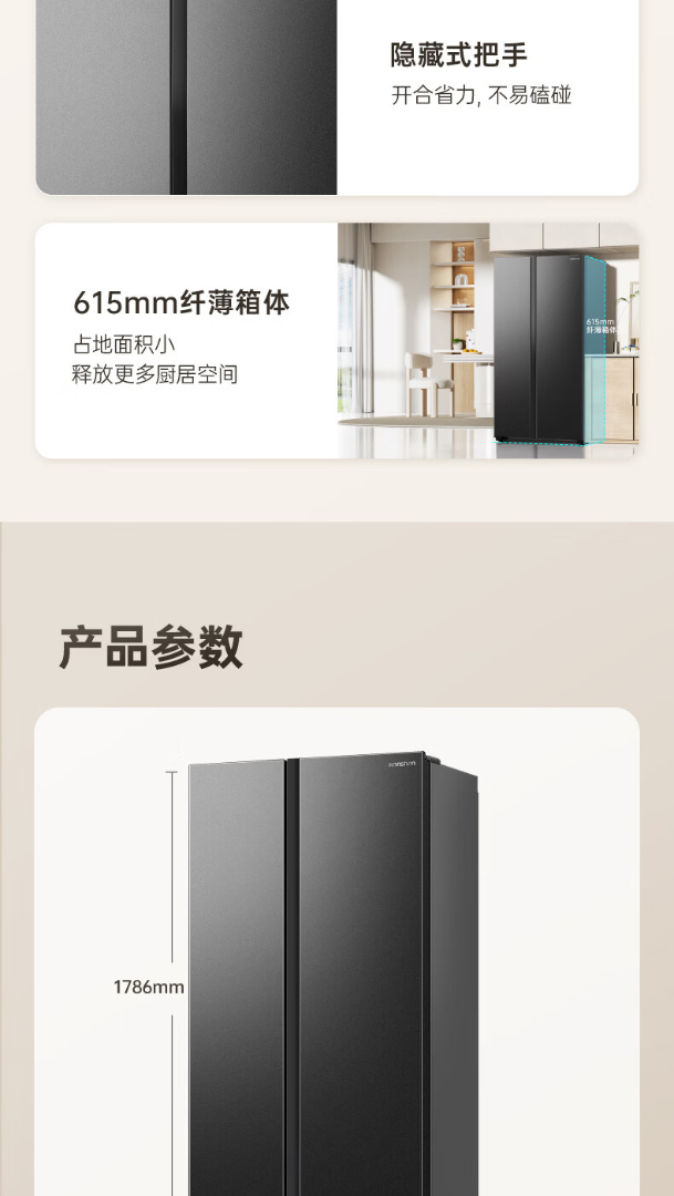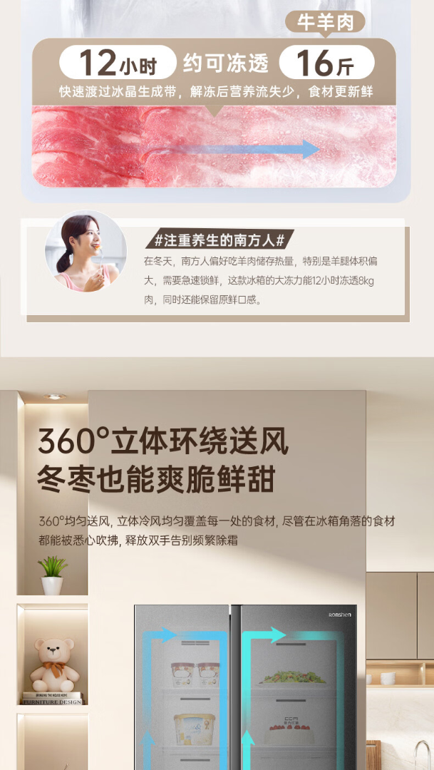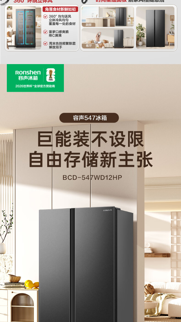 容声(Ronshen)547升双开门对开门电冰箱家用一级能效节能变频风冷无霜抗菌净味大容量 BCD-547WD12HP灰