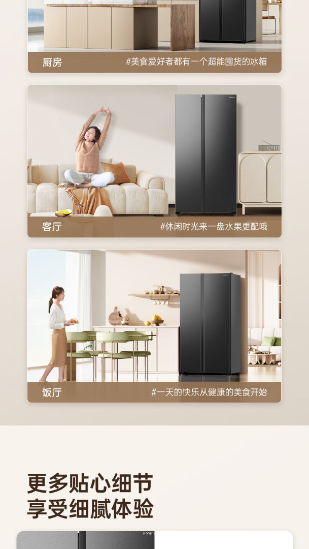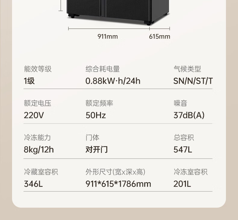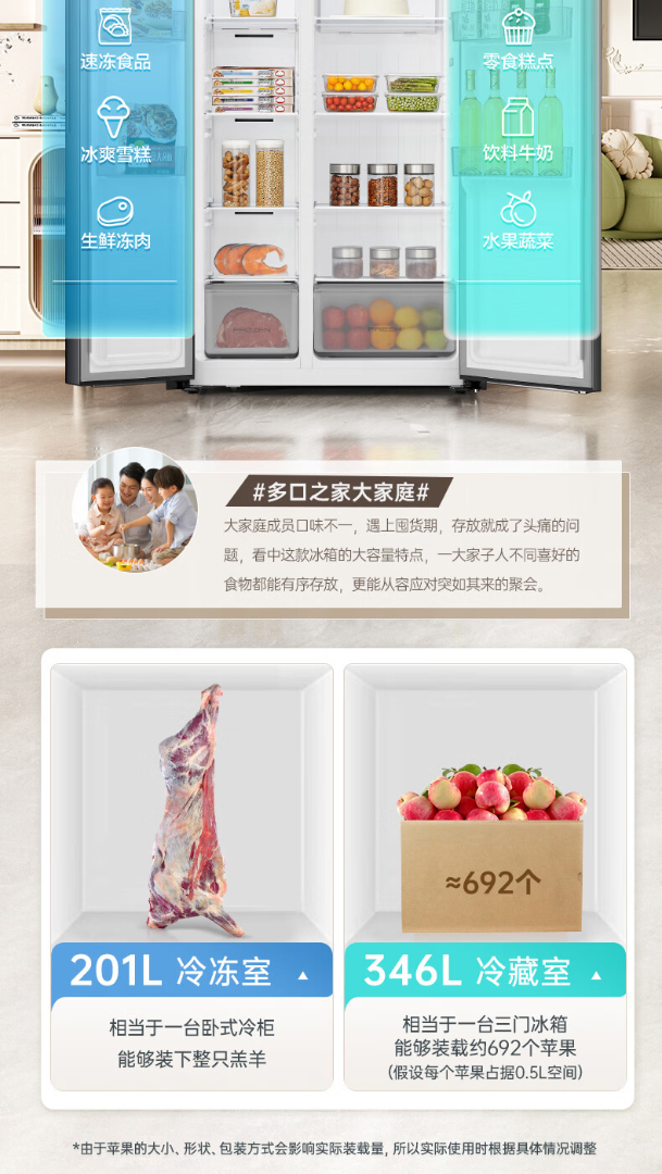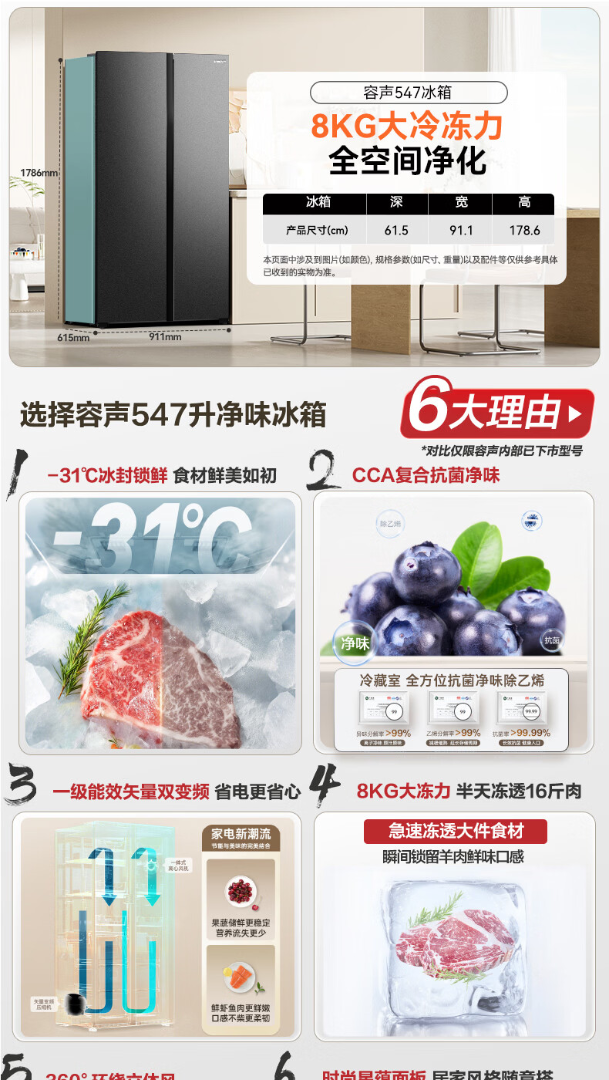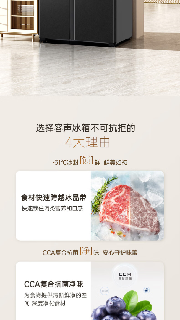 容声(Ronshen)547升双开门对开门电冰箱家用一级能效节能变频风冷无霜抗菌净味大容量 BCD-547WD12HP灰