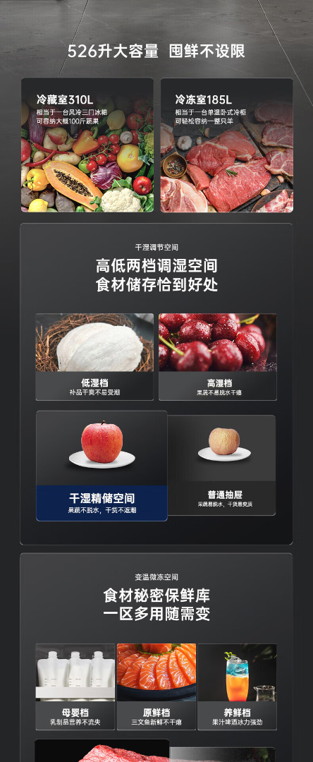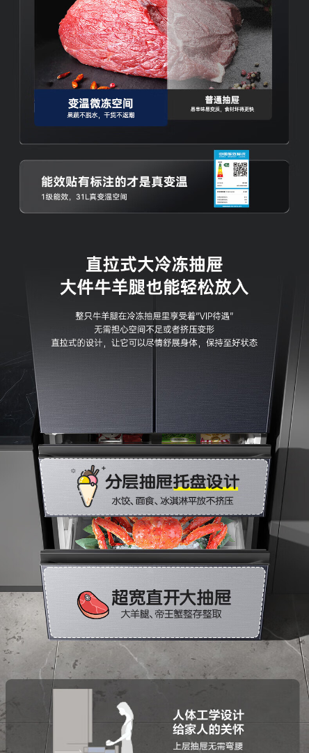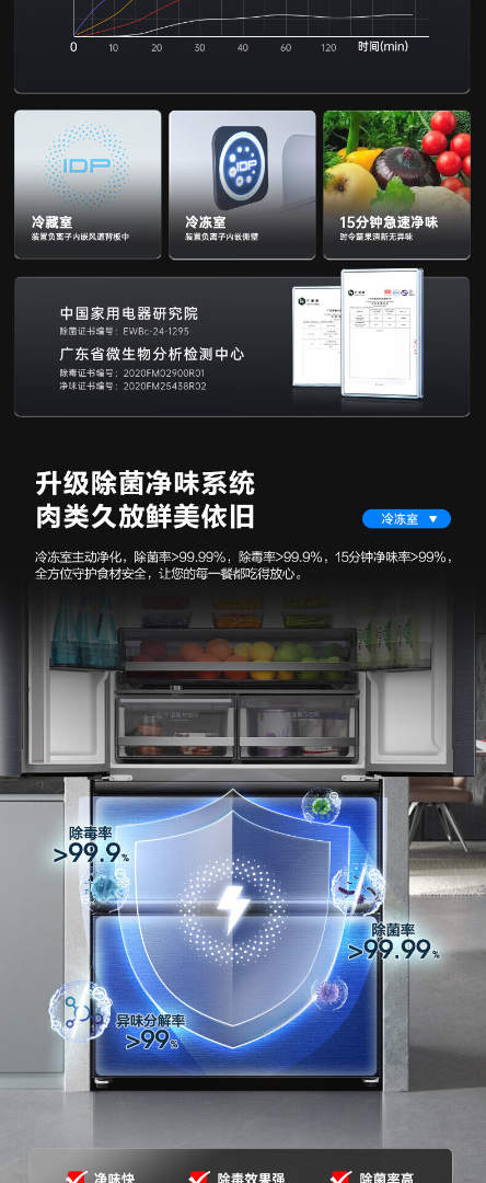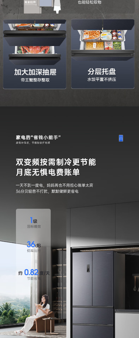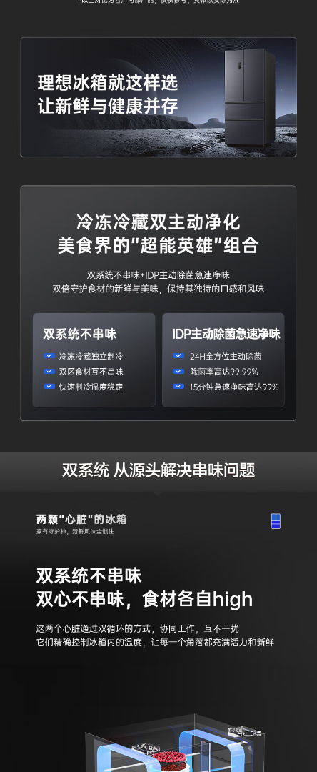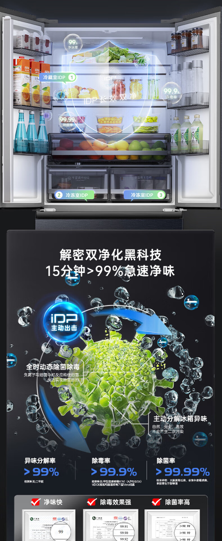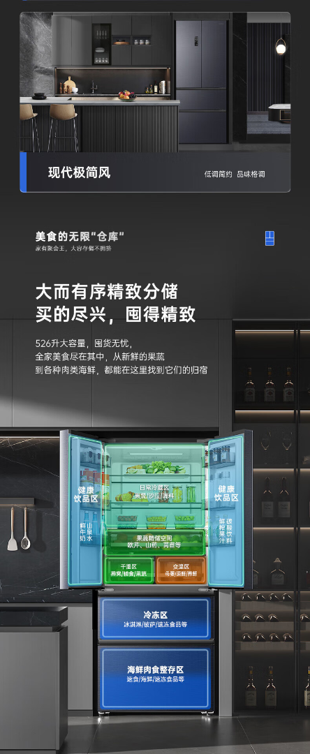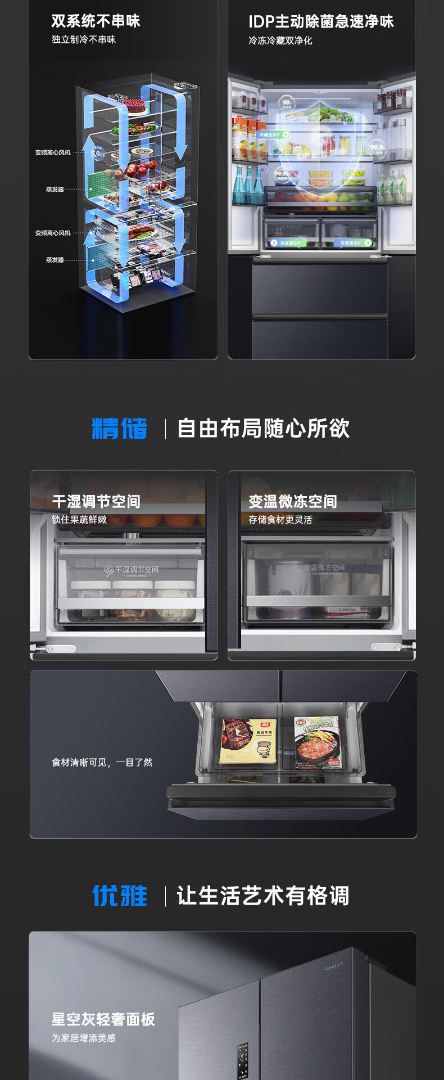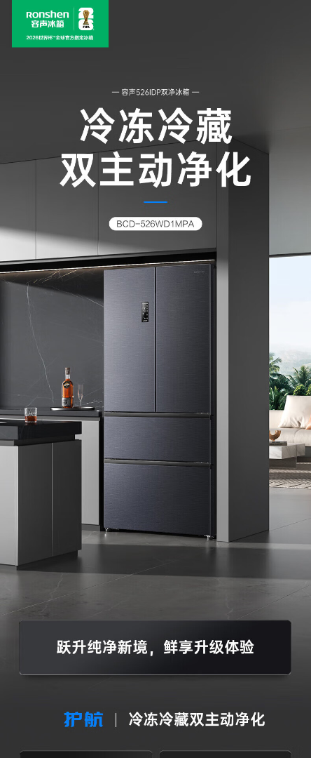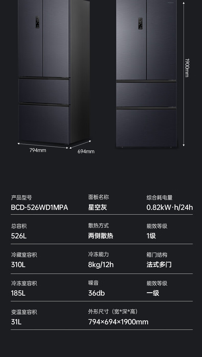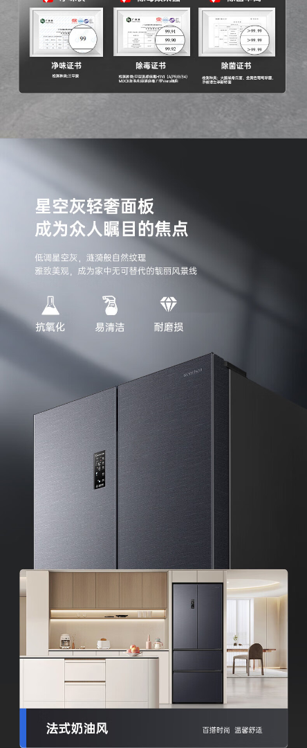 容声526升双净双系统 法式多门四开门电冰箱家用一级能效风冷无霜节能大容量BCD-526WD1MPA灰 526L冷藏冷冻双净化