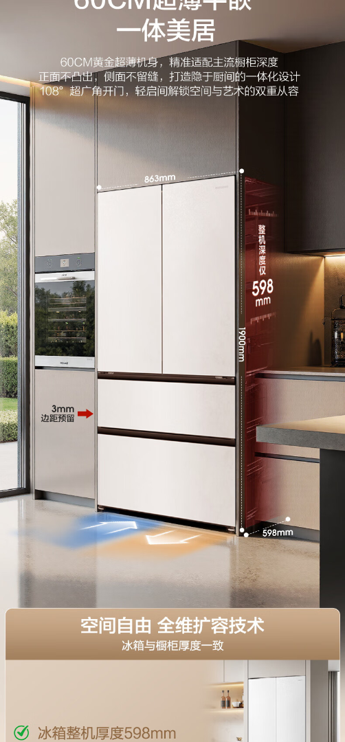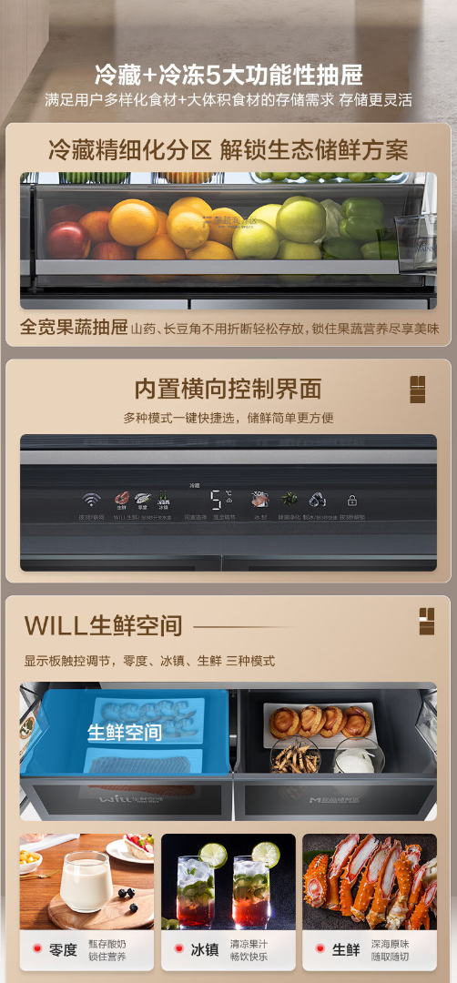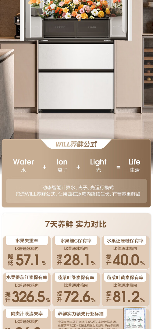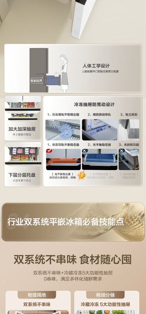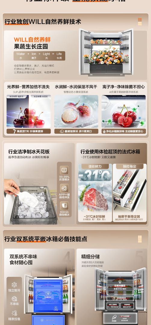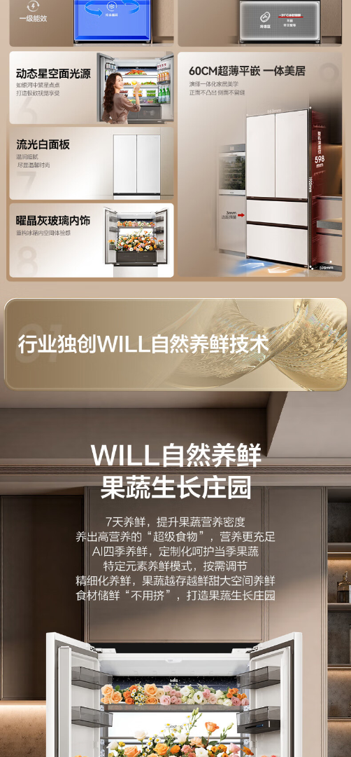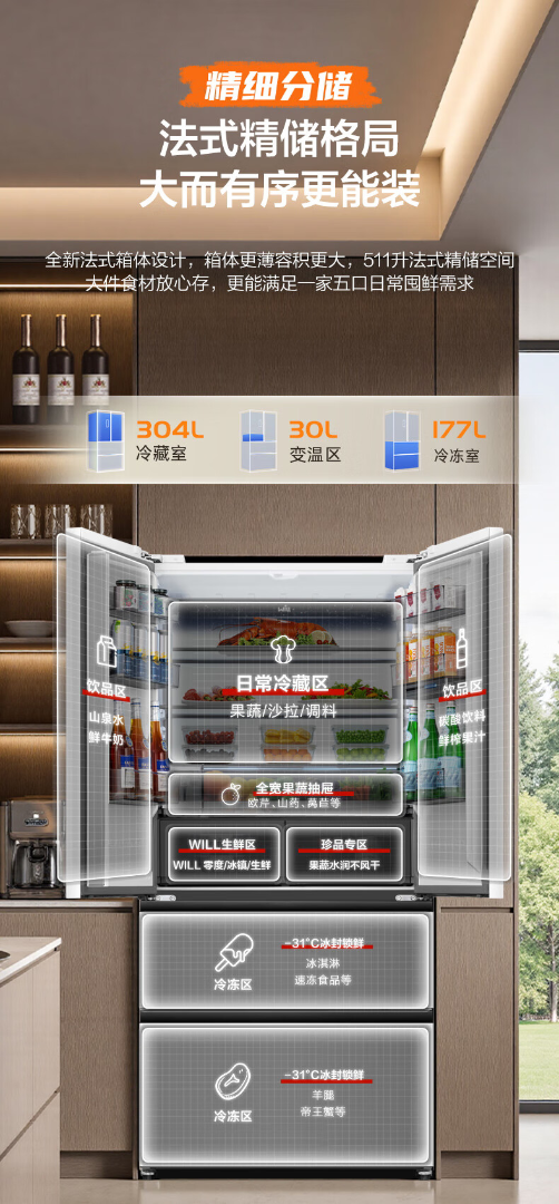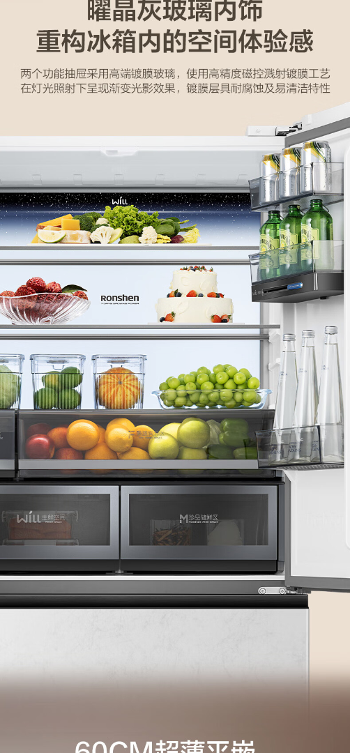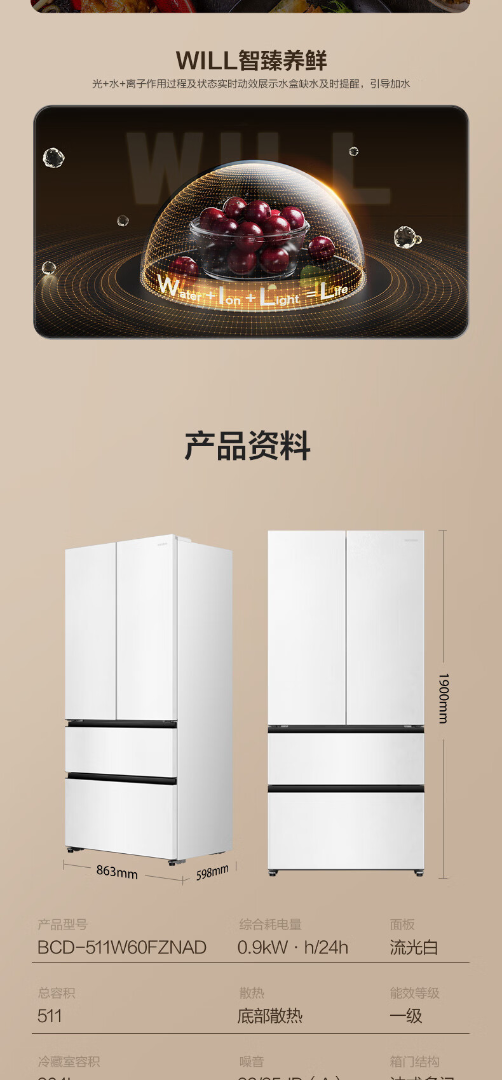 容声WILL养鲜511L法式多门冰箱双系统超薄嵌入一级能效自动制冰BCD-511W60FZNAD BCD-511W60FZNAD流光白