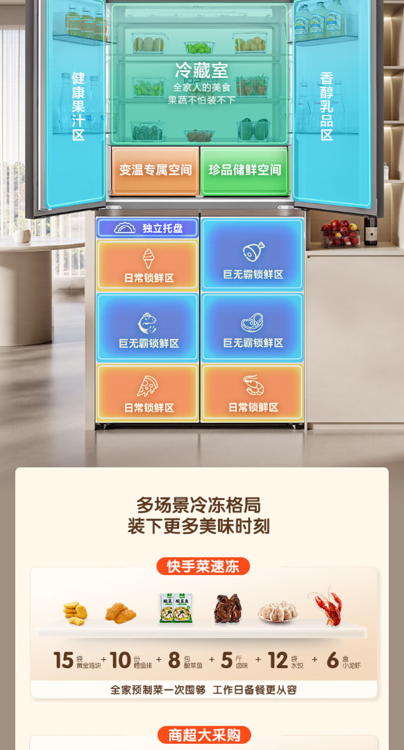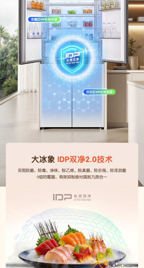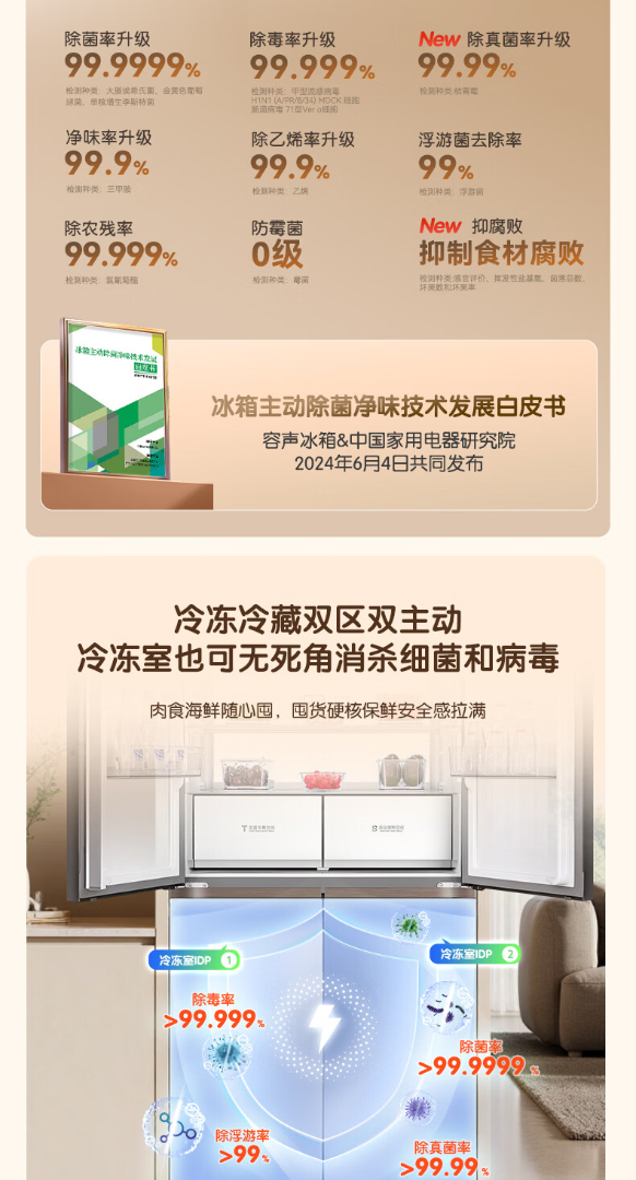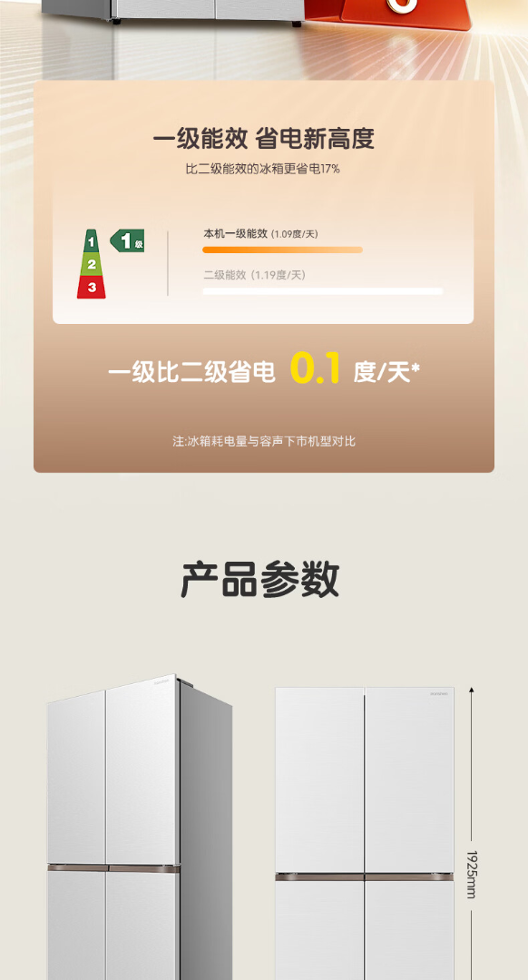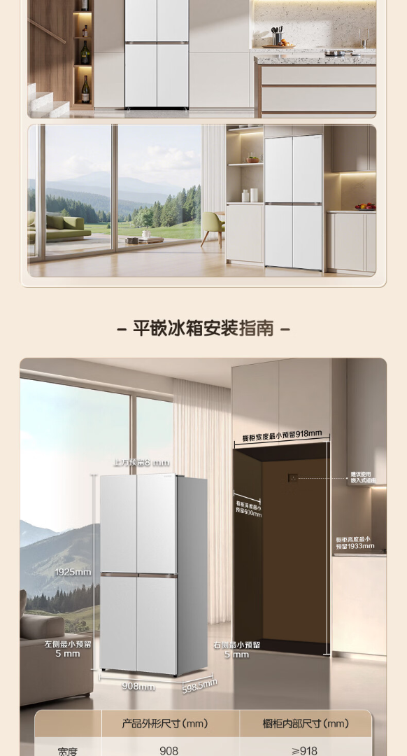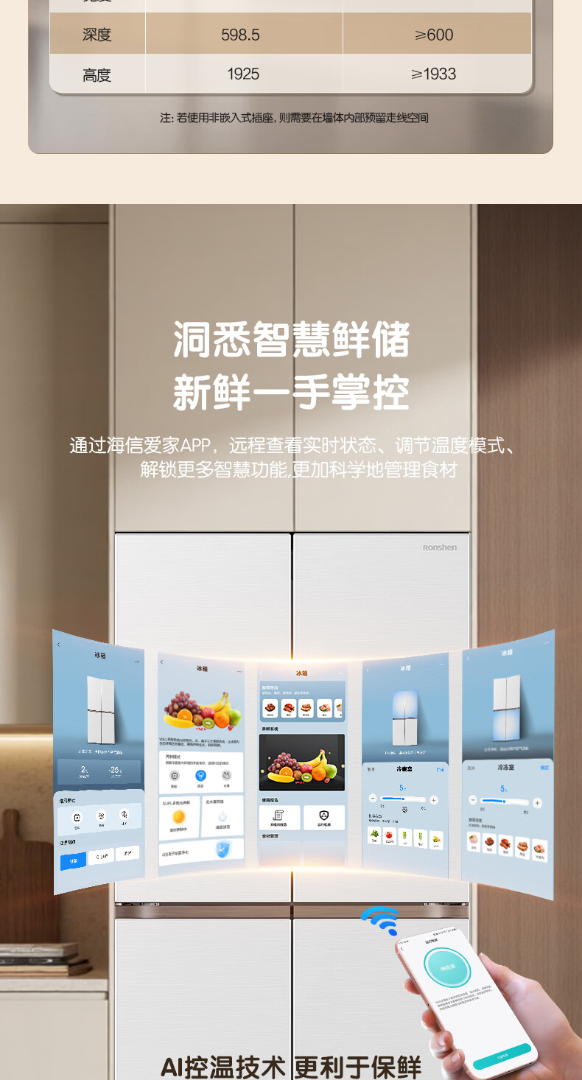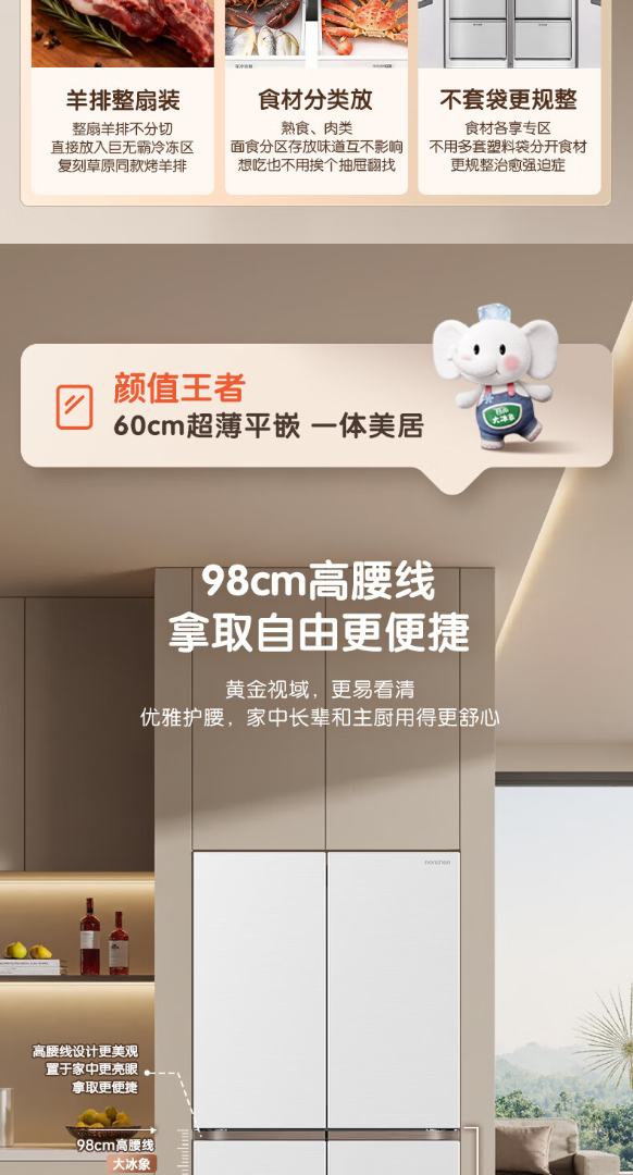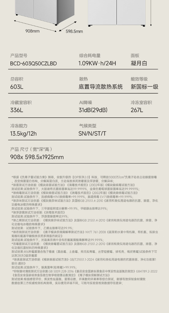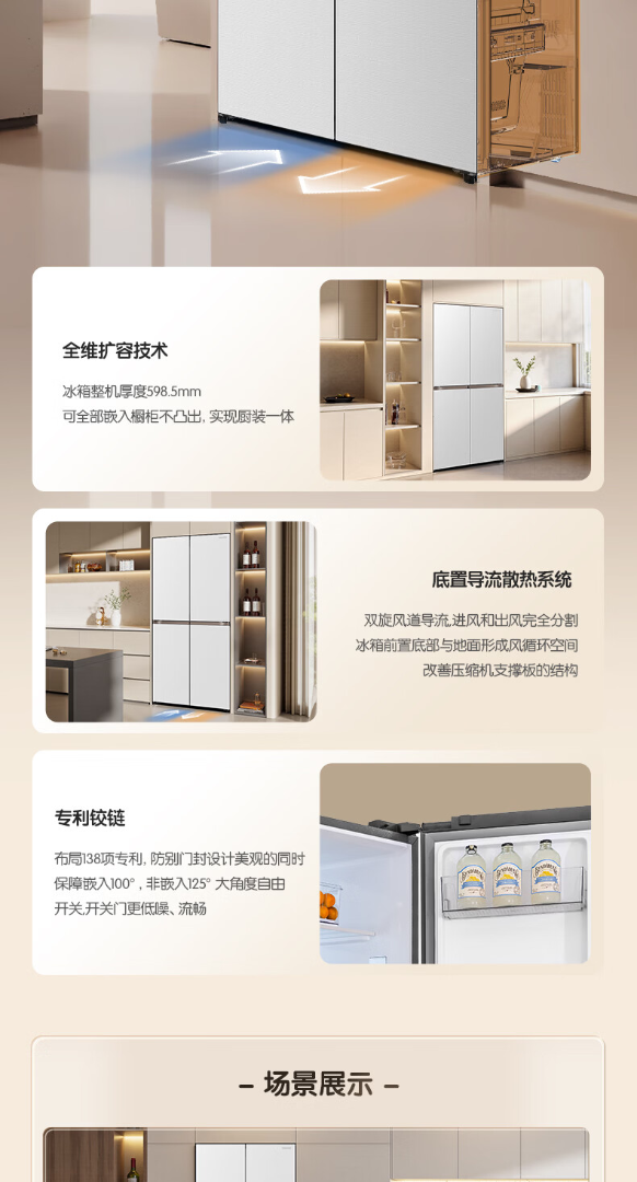 容声世界杯定制大冰象603L十字门冰箱双系统超薄嵌入式一级能效风冷无霜 BCD-603Q50CZLBD 凝月白