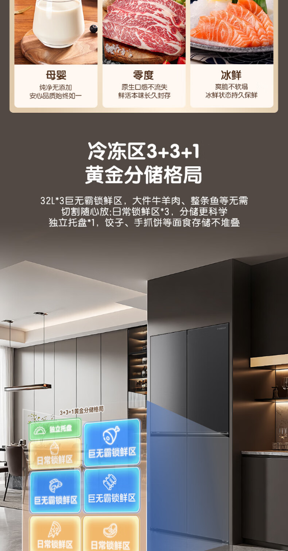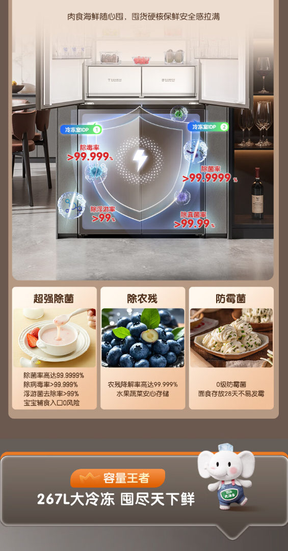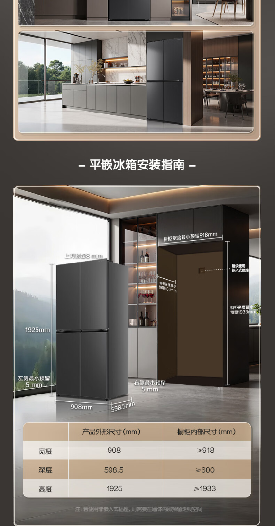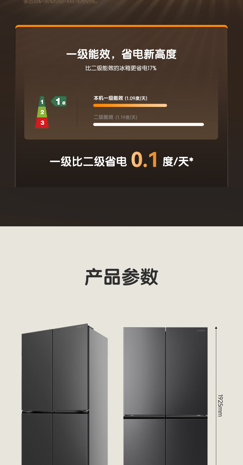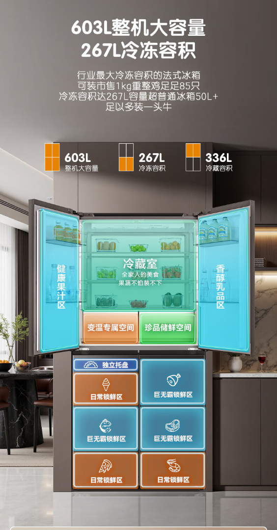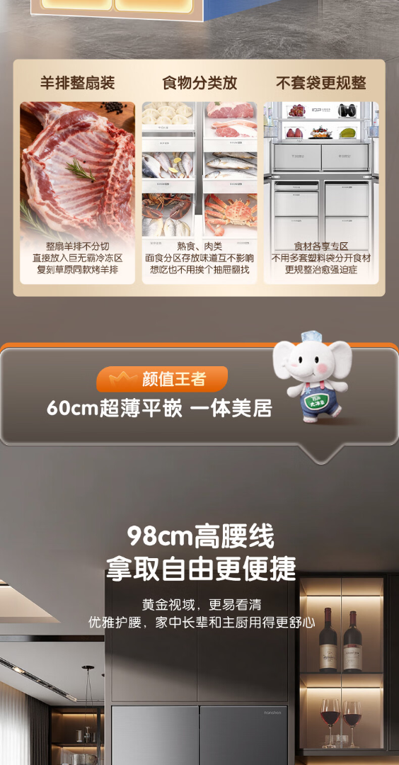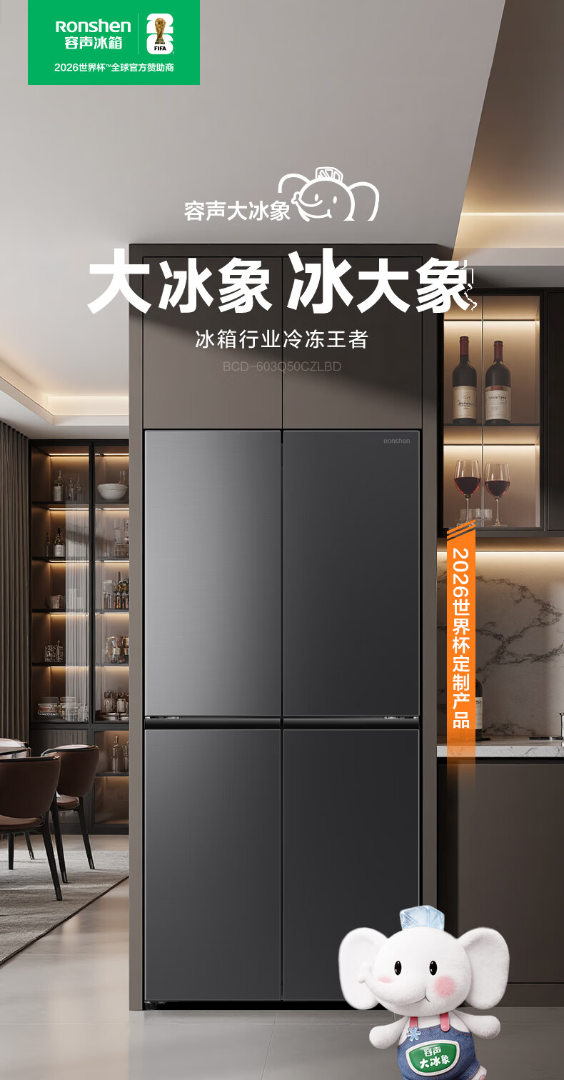 容声世界杯定制大冰象603L十字门冰箱双系统超薄嵌入式一级能效风冷无霜 BCD-603Q50CZLBD 星耀灰