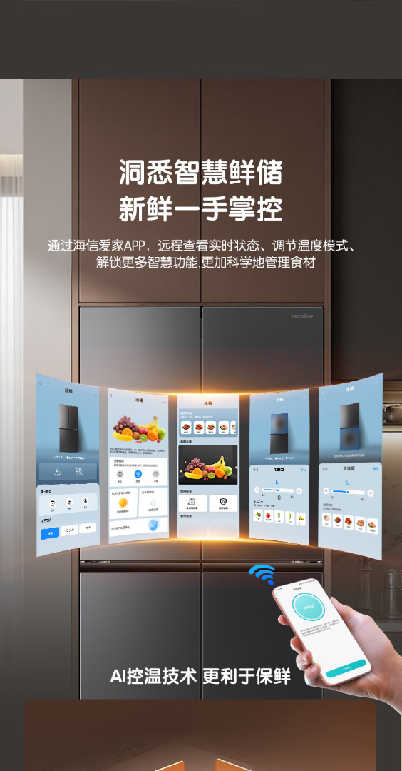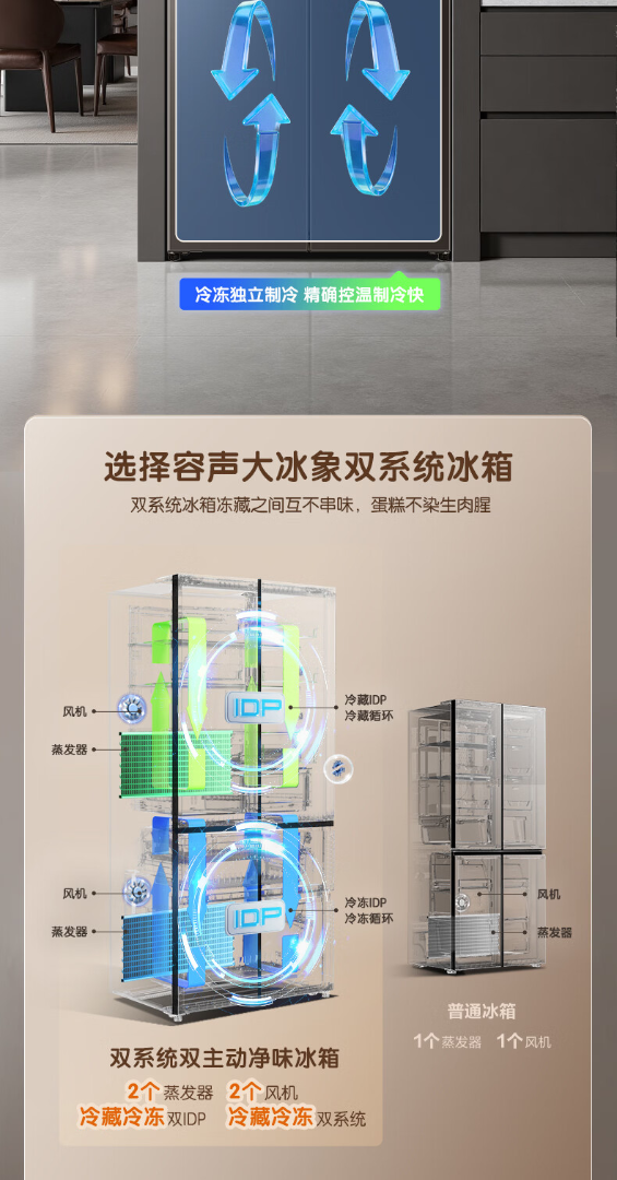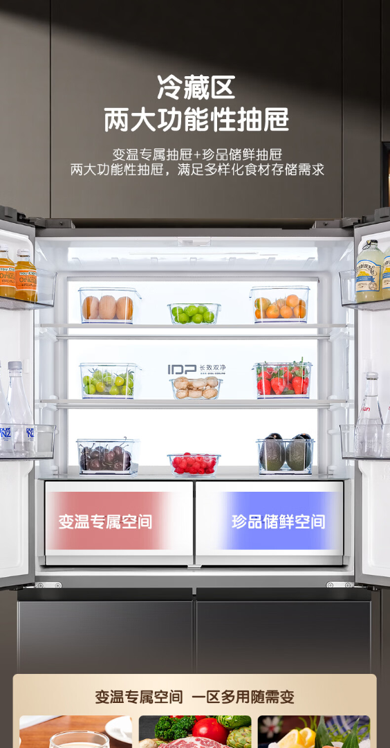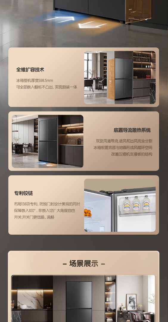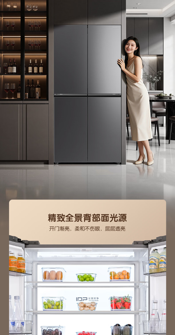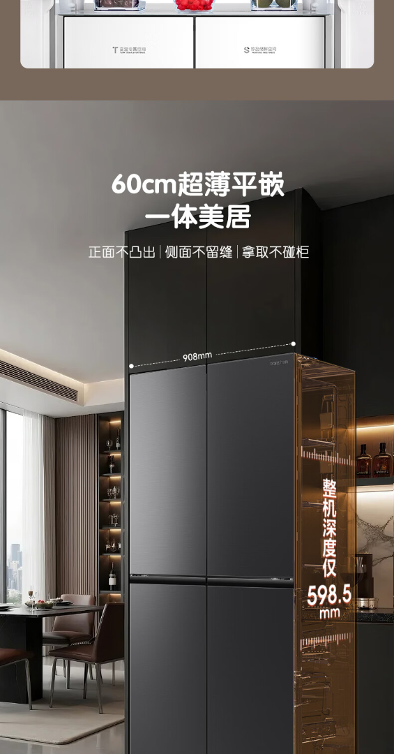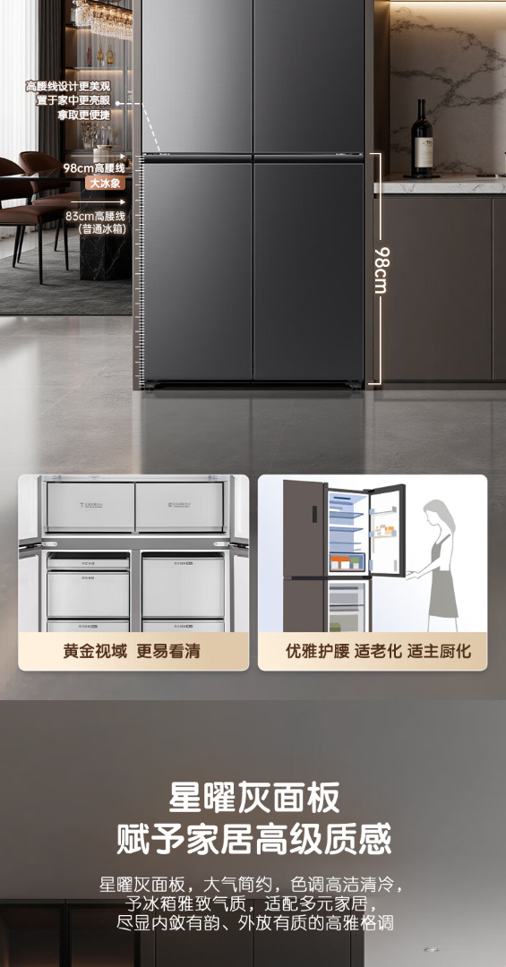 容声世界杯定制大冰象603L十字门冰箱双系统超薄嵌入式一级能效风冷无霜 BCD-603Q50CZLBD 星耀灰