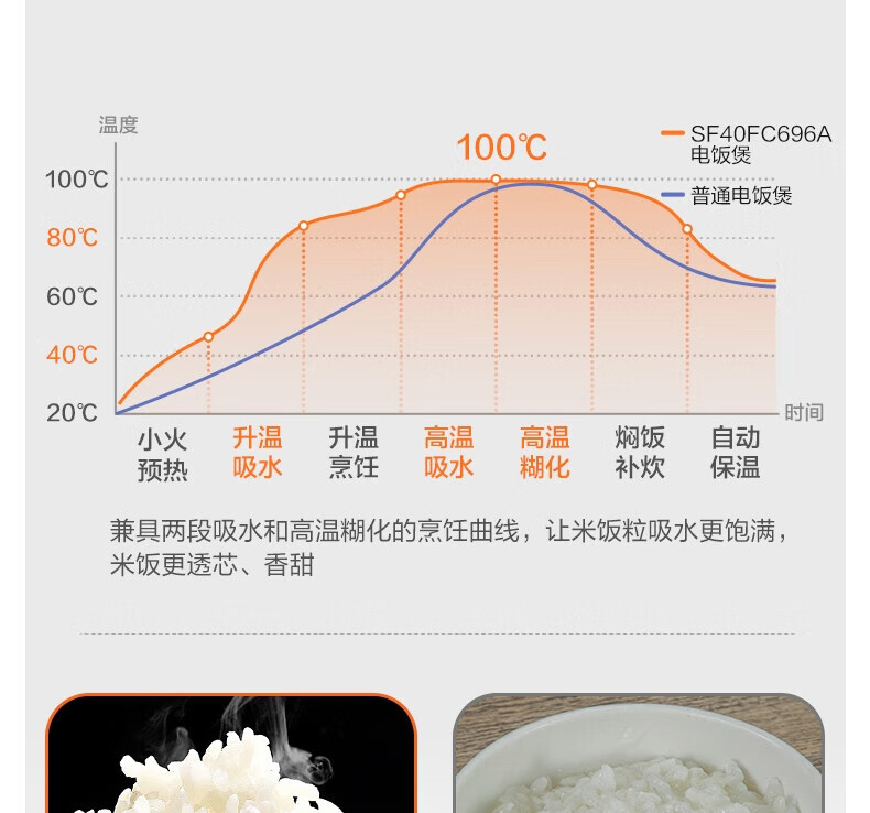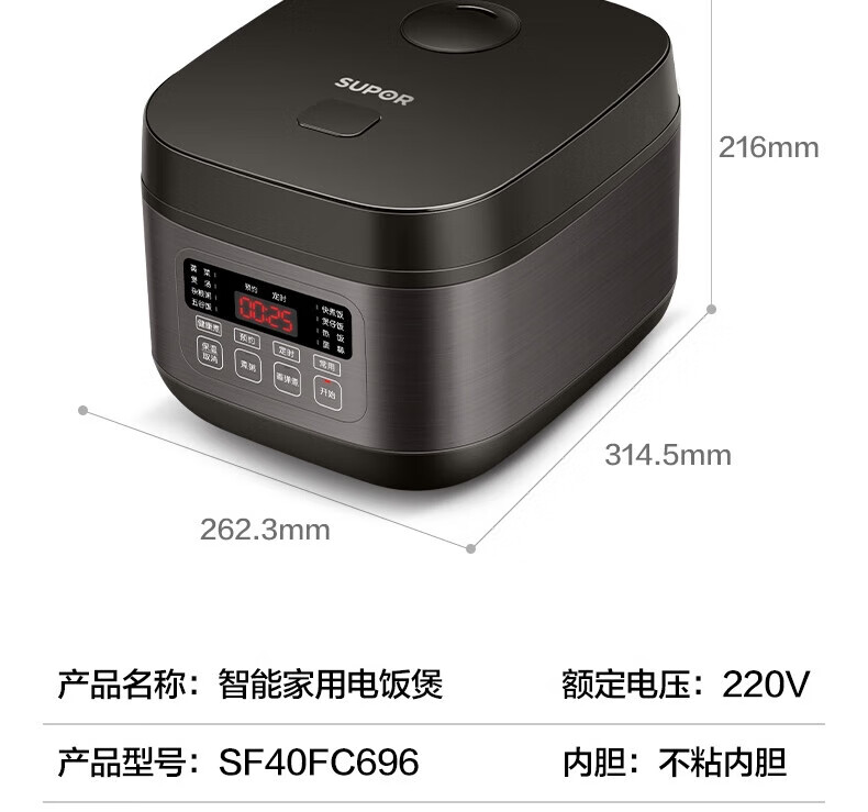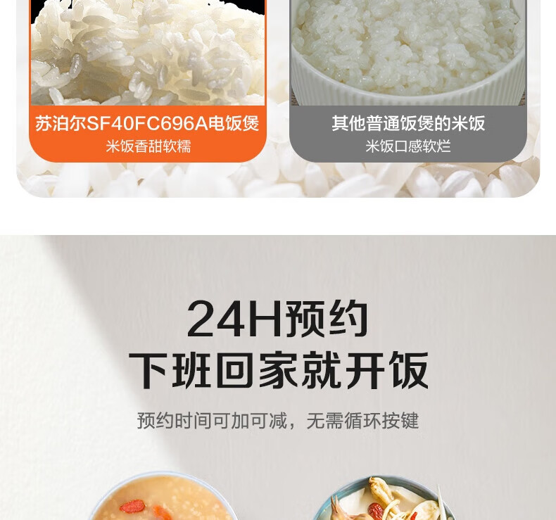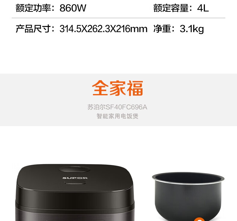 苏泊尔(SUPOR)电饭煲 家用4L电饭锅加热智能定时预约触摸操控蒸煮煲闷 SF40FC696