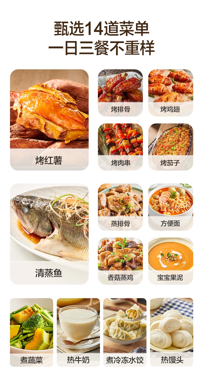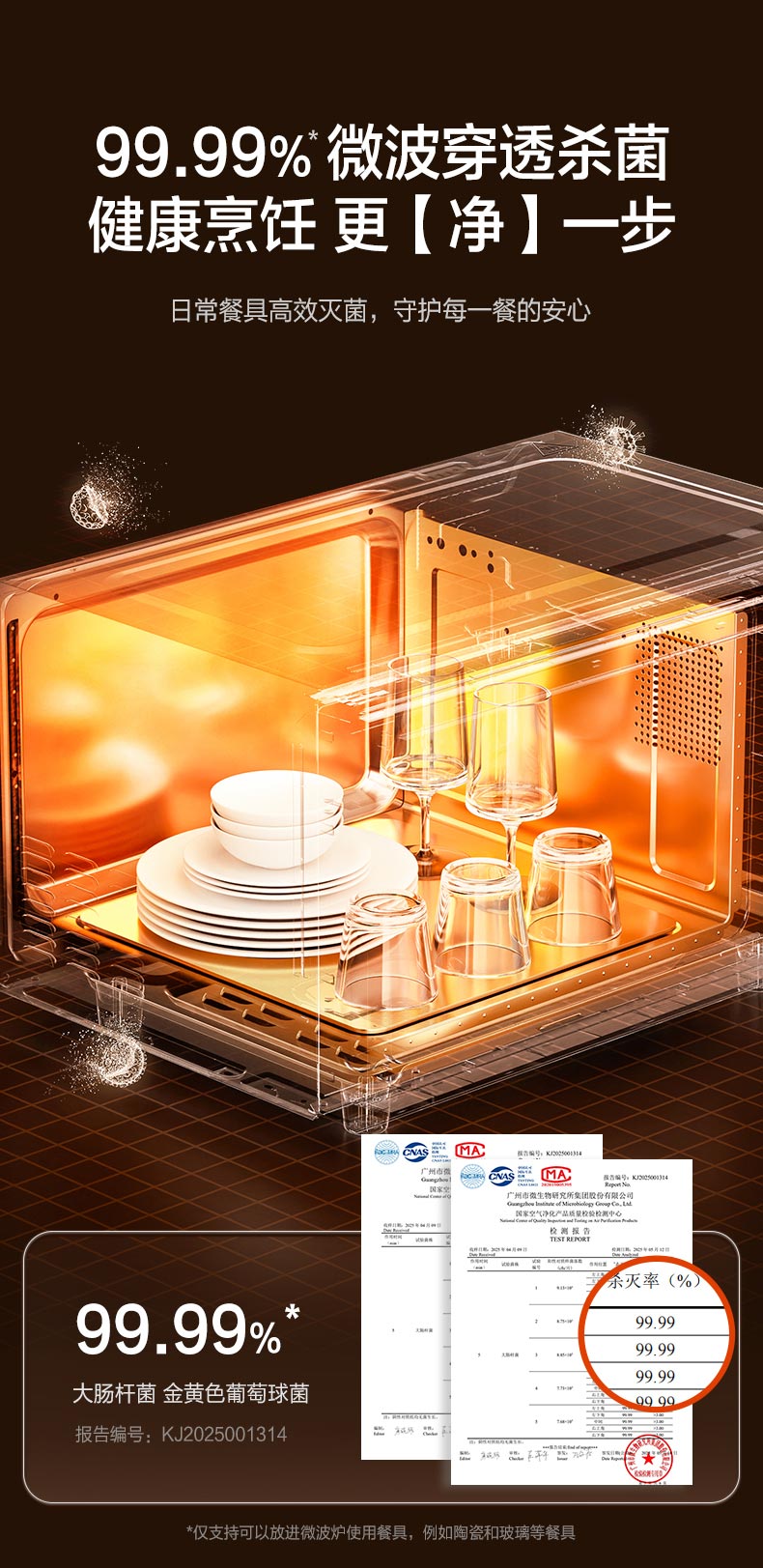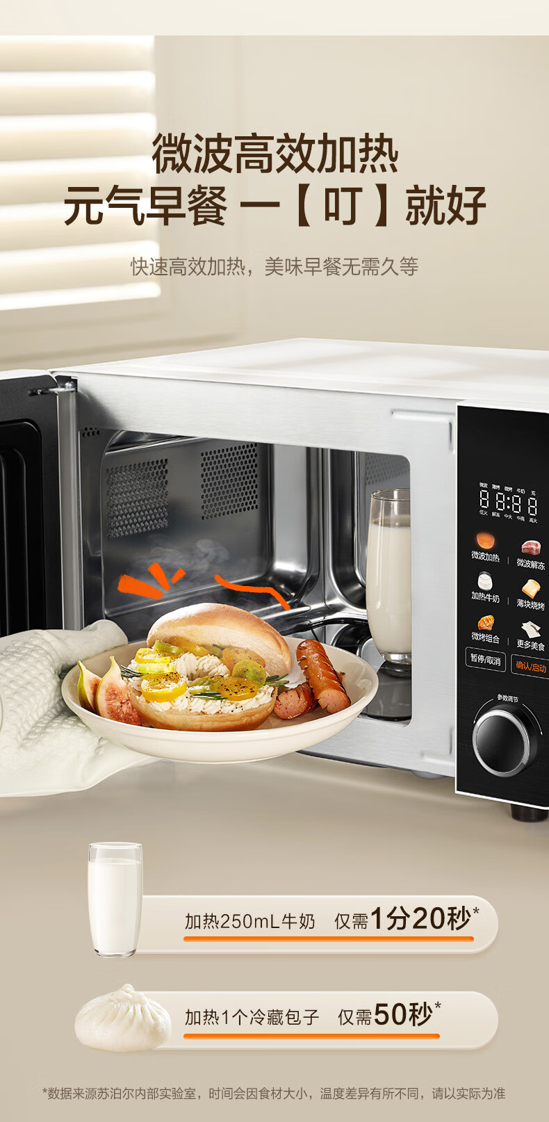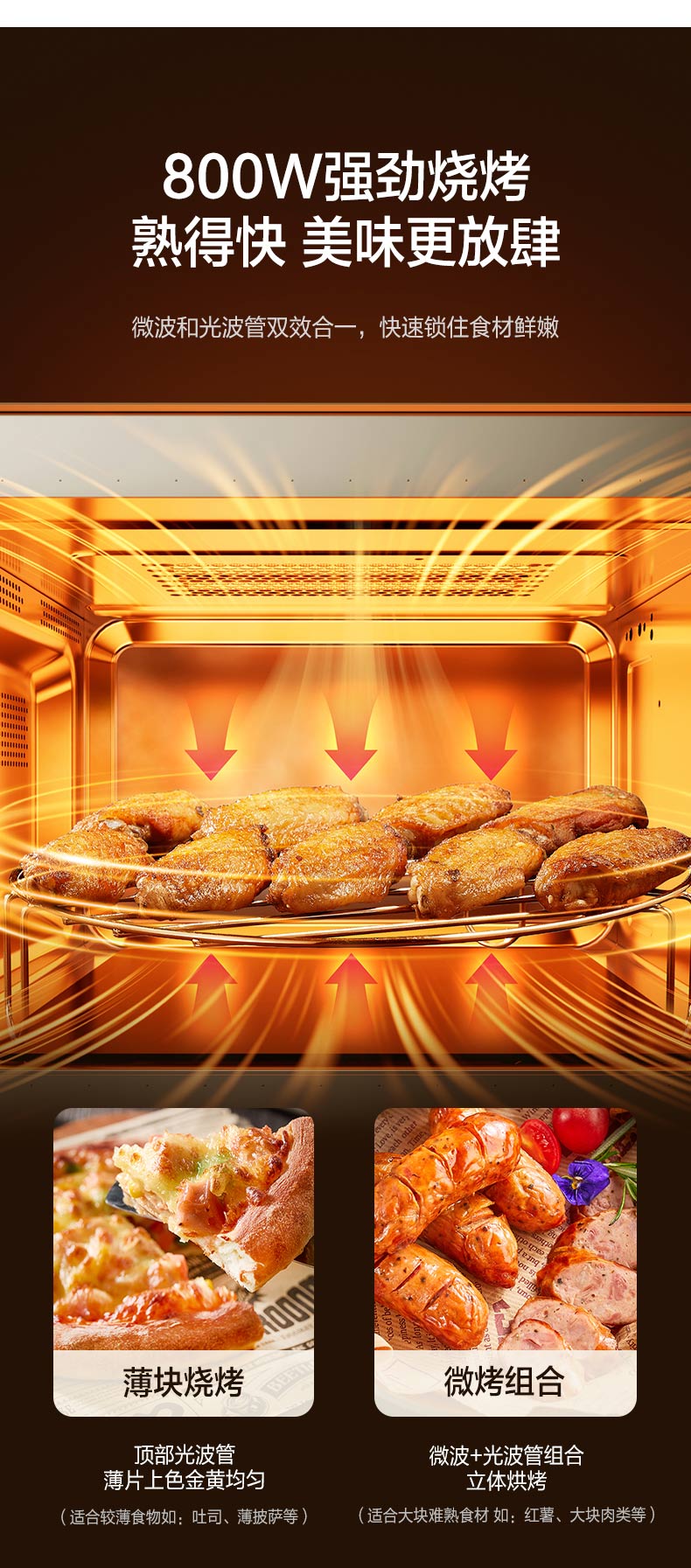 苏泊尔(SUPOR)微波炉烤箱一体机 0涂层不锈钢 家用20升平板加热智能杀菌解冻光波烧烤彩屏SW20B1商超同款