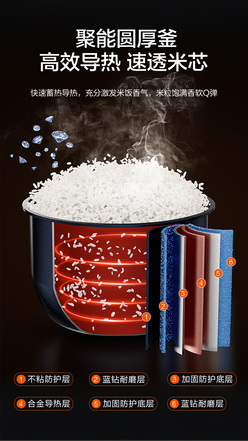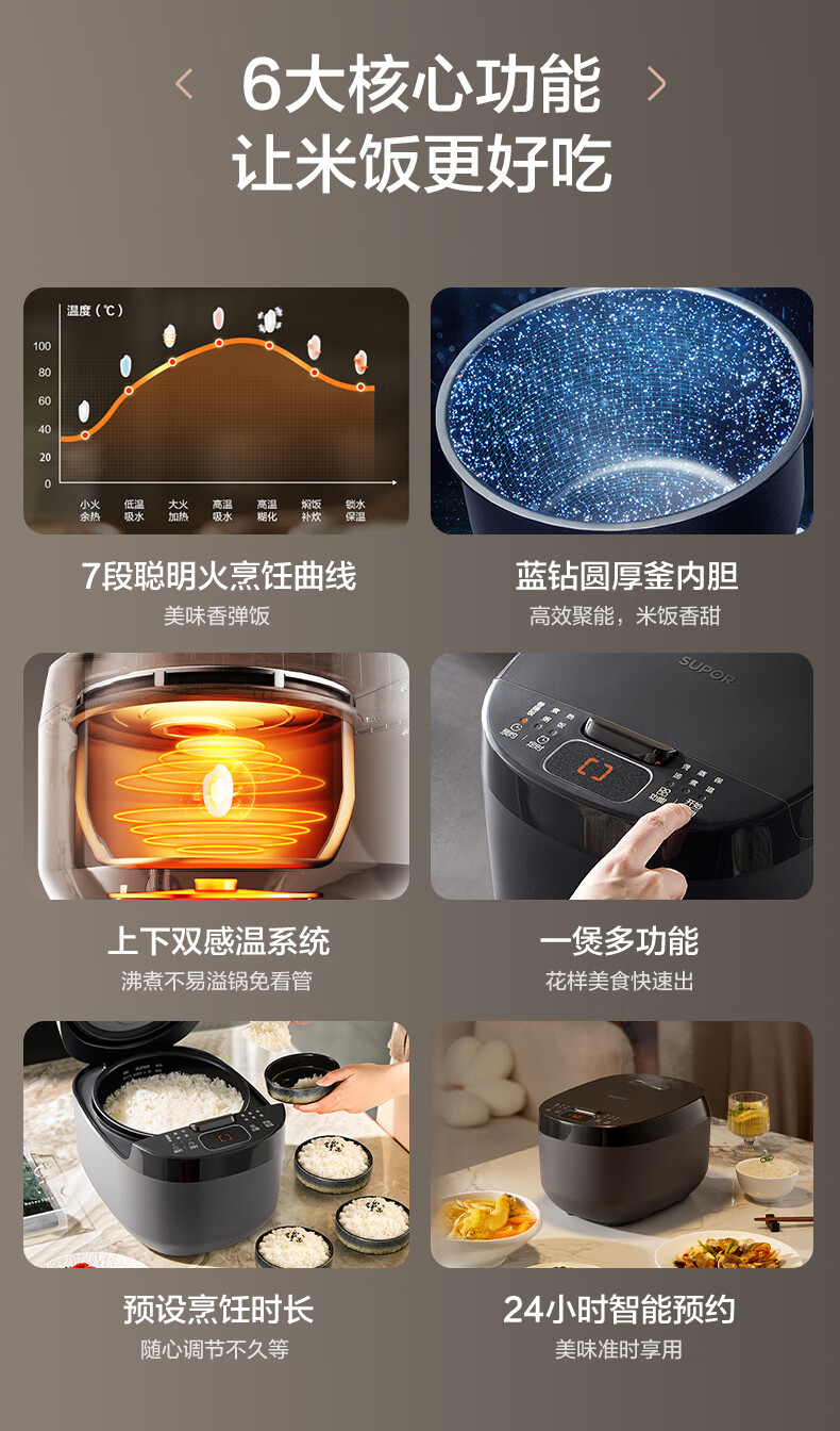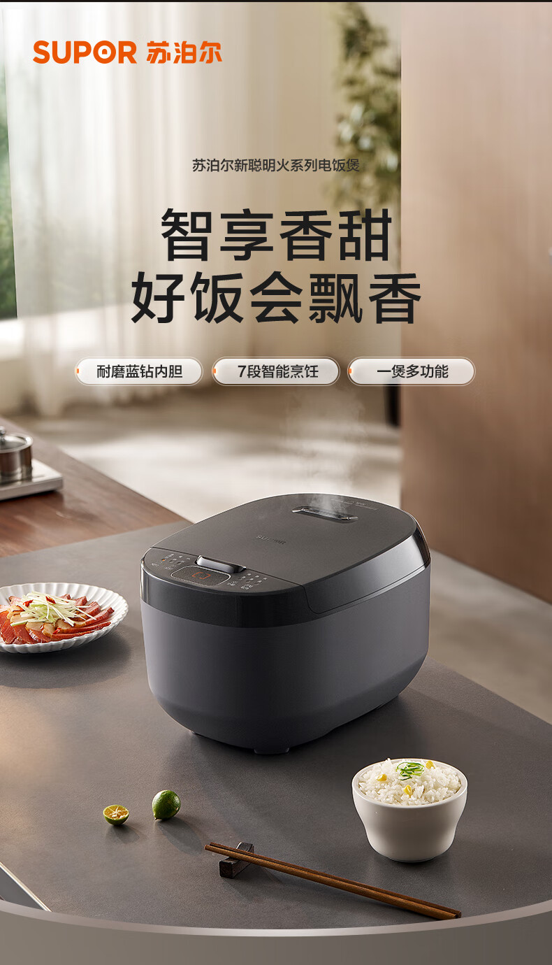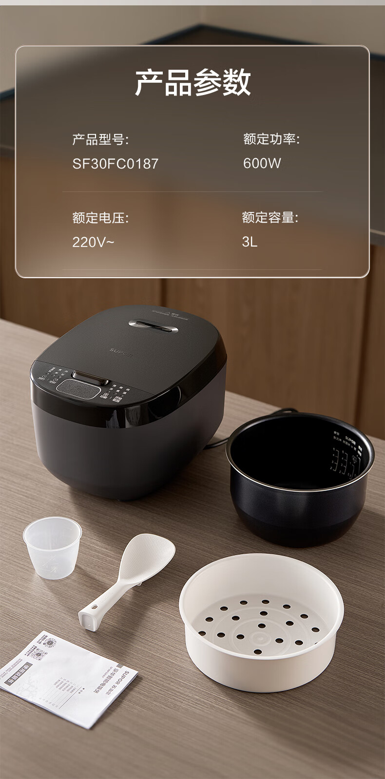 苏泊尔(SUPOR)小电饭煲2-3人3升蓝钻不粘内胆家用电煮锅煮饭煮粥智能预约多功能一锅多用小型微压电饭锅30FC0187