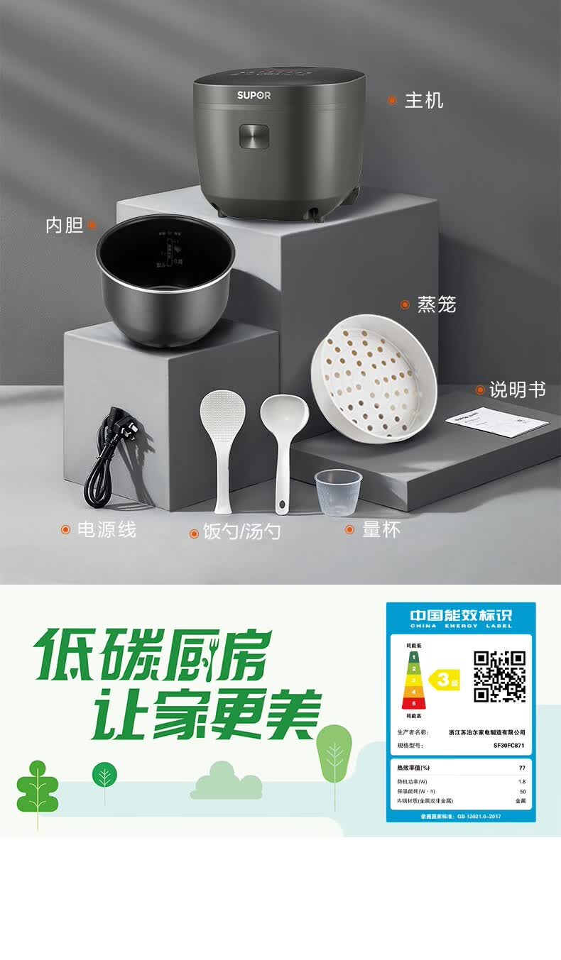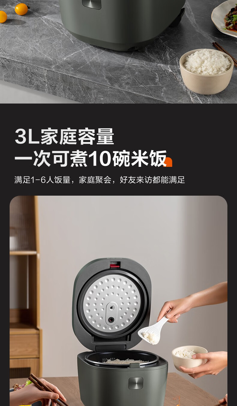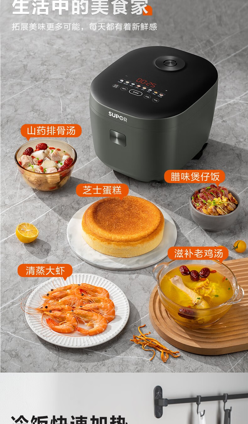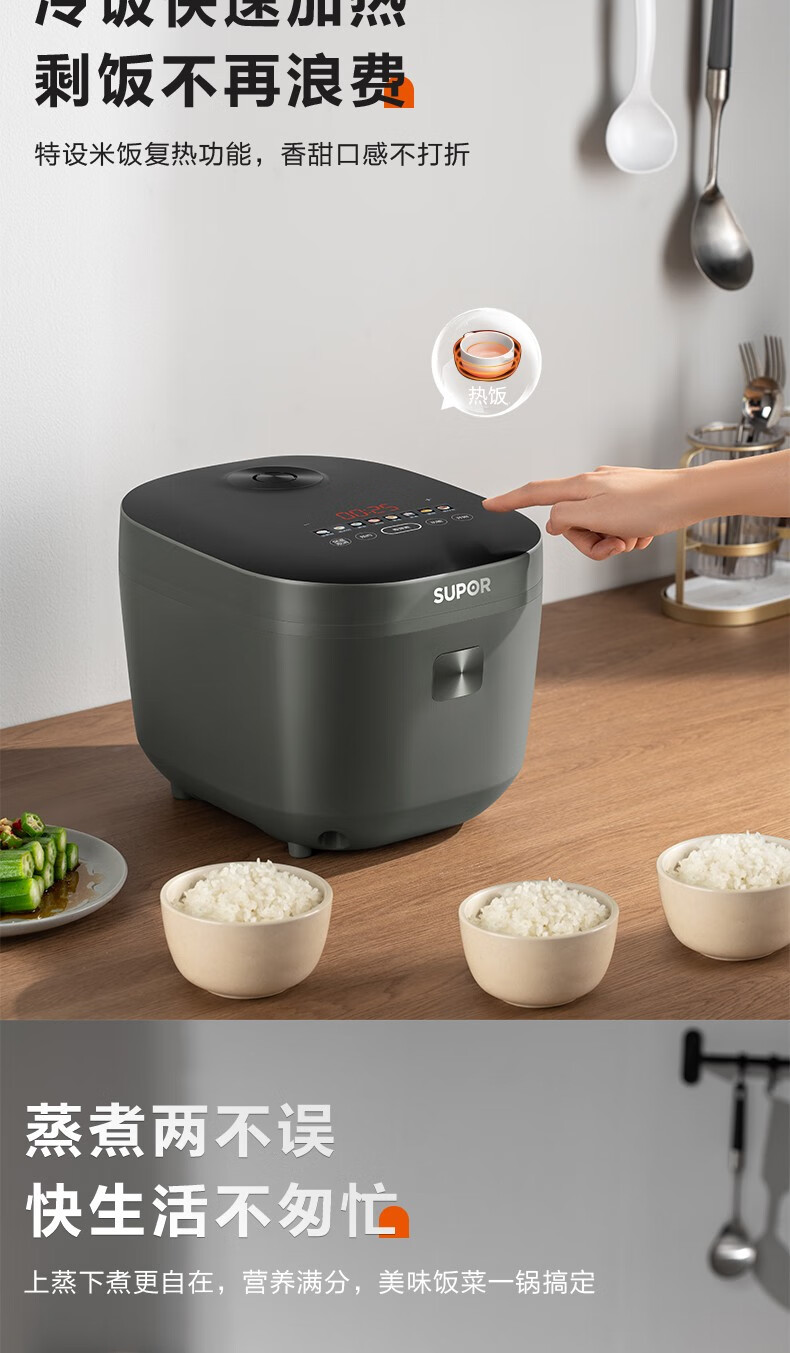 苏泊尔(SUPOR)电饭煲家用电饭锅厚釜内胆3L小型电饭煲微压多功能快煮柴火饭电饭煲煮粥锅 SF30FC871 3L