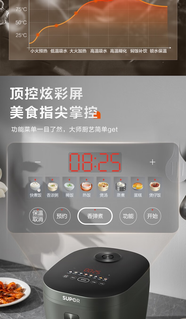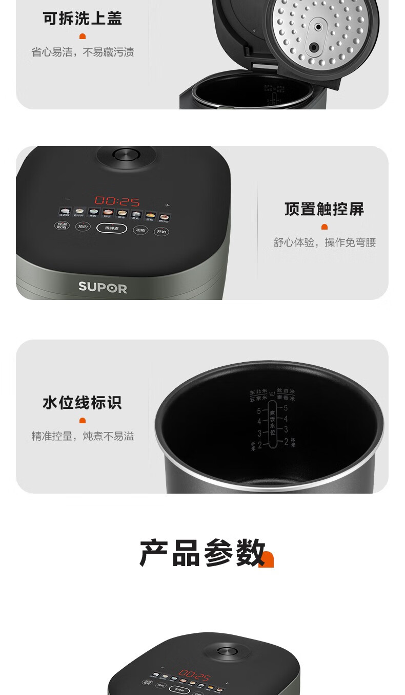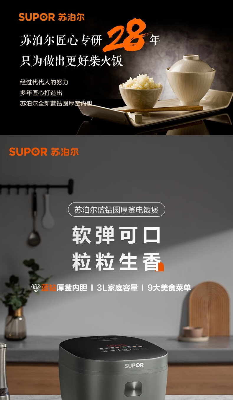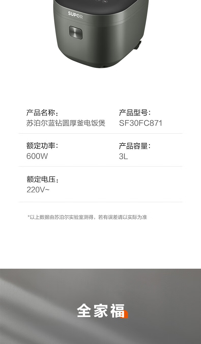 苏泊尔(SUPOR)电饭煲家用电饭锅厚釜内胆3L小型电饭煲微压多功能快煮柴火饭电饭煲煮粥锅 SF30FC871 3L