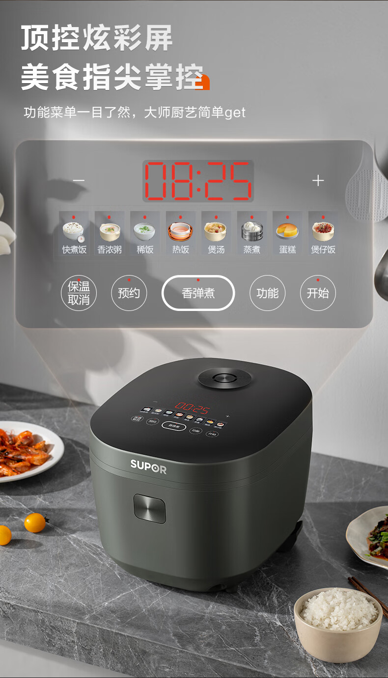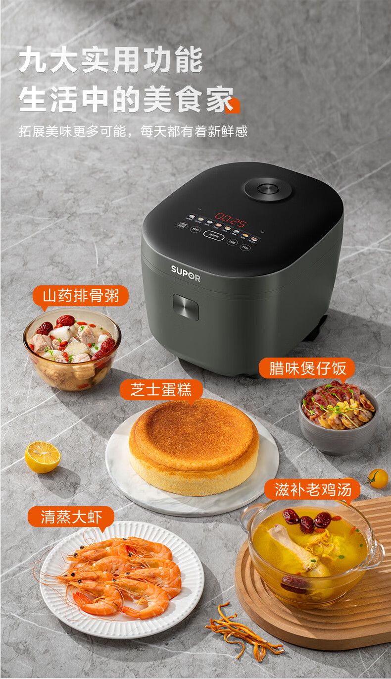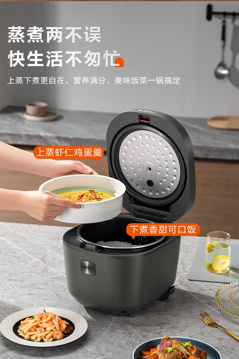 苏泊尔(SUPOR)电饭煲 微压电饭锅多功能一体家用小型4-5人智能预约4升 蓝钻内胆热饭功能上蒸下煮带蒸笼 【蓝钻圆厚釜】 4L 丨适用4-5人