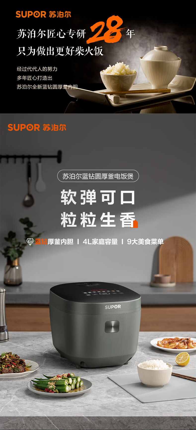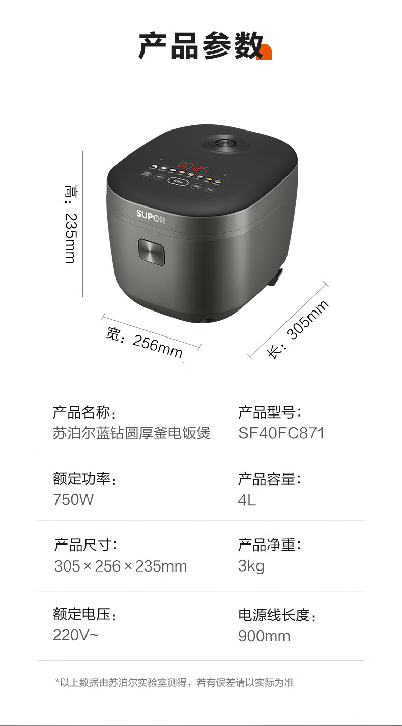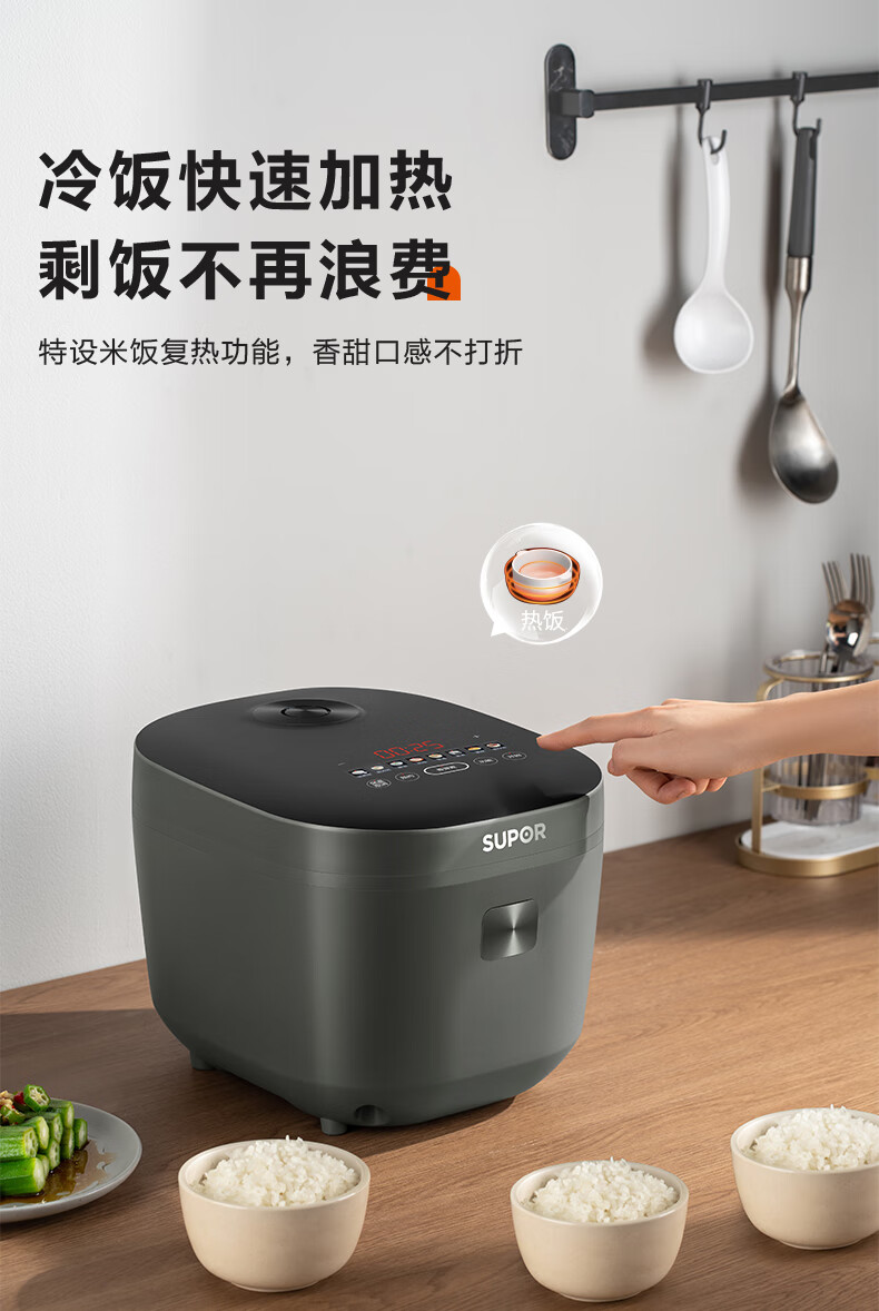 苏泊尔(SUPOR)电饭煲 微压电饭锅多功能一体家用小型4-5人智能预约4升 蓝钻内胆热饭功能上蒸下煮带蒸笼 【蓝钻圆厚釜】 4L 丨适用4-5人