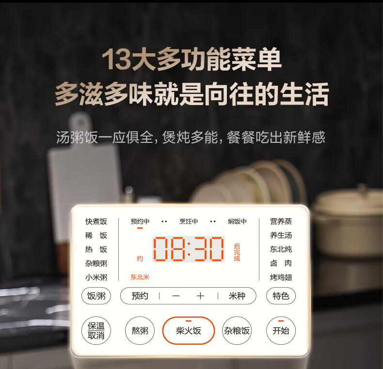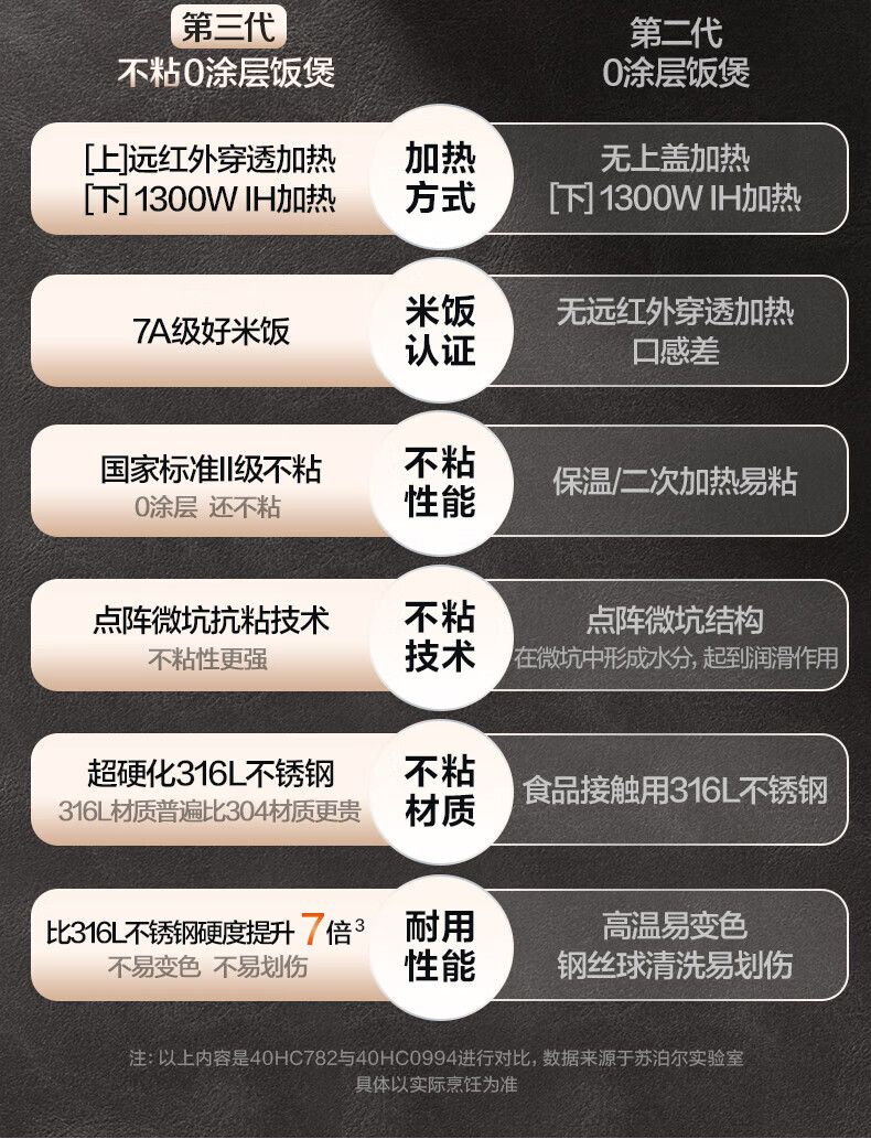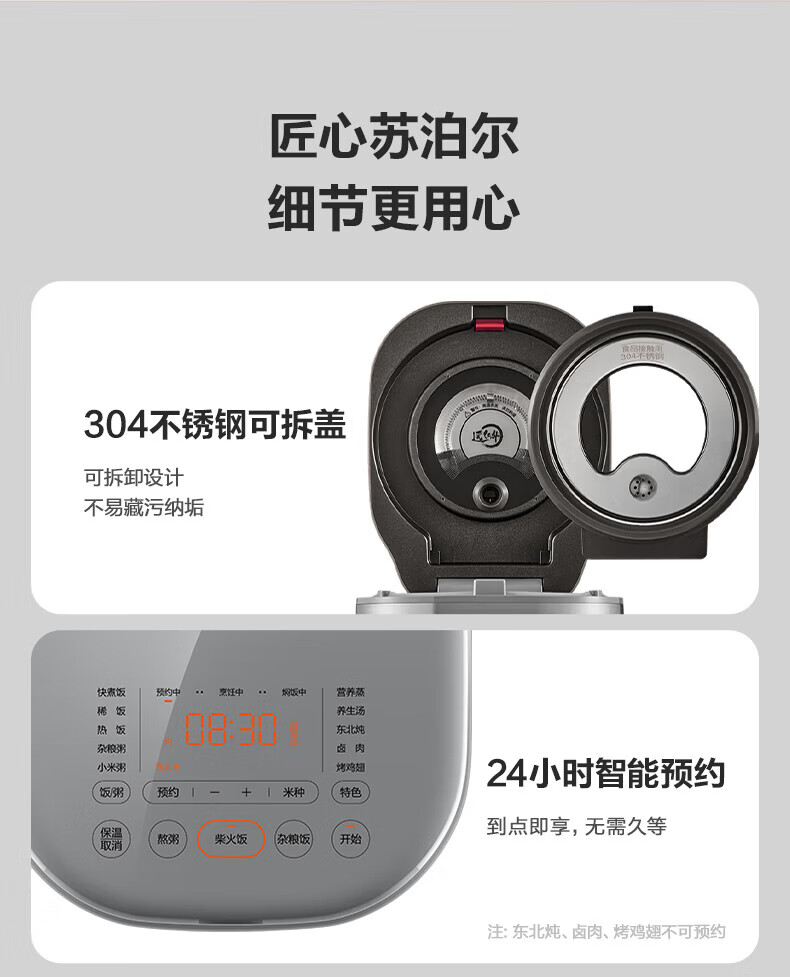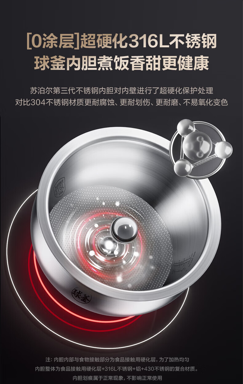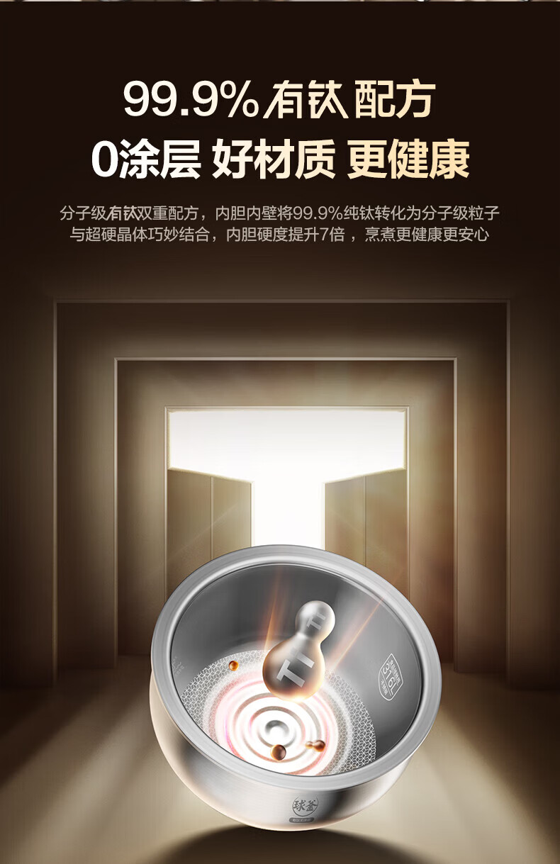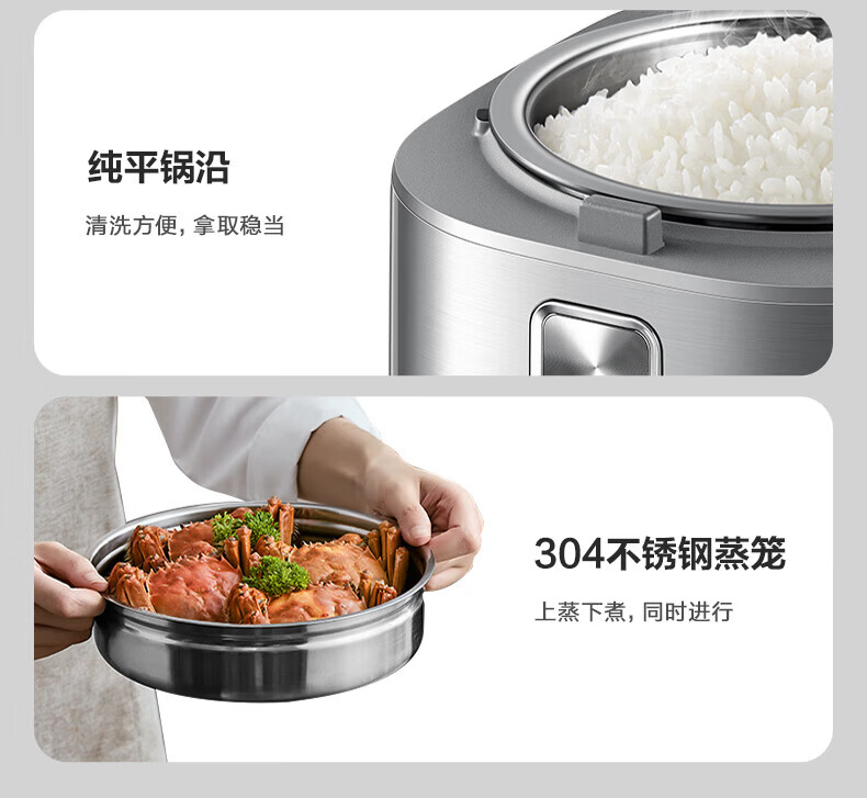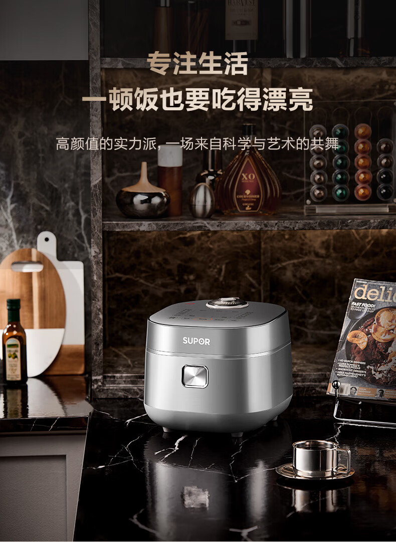苏泊尔(SUPOR)0涂层4升3-8人 无涂层电饭锅不粘内胆1300W IH电磁加热 不锈钢内胆 智能预约电饭煲家用多功能 4L SF40HC782