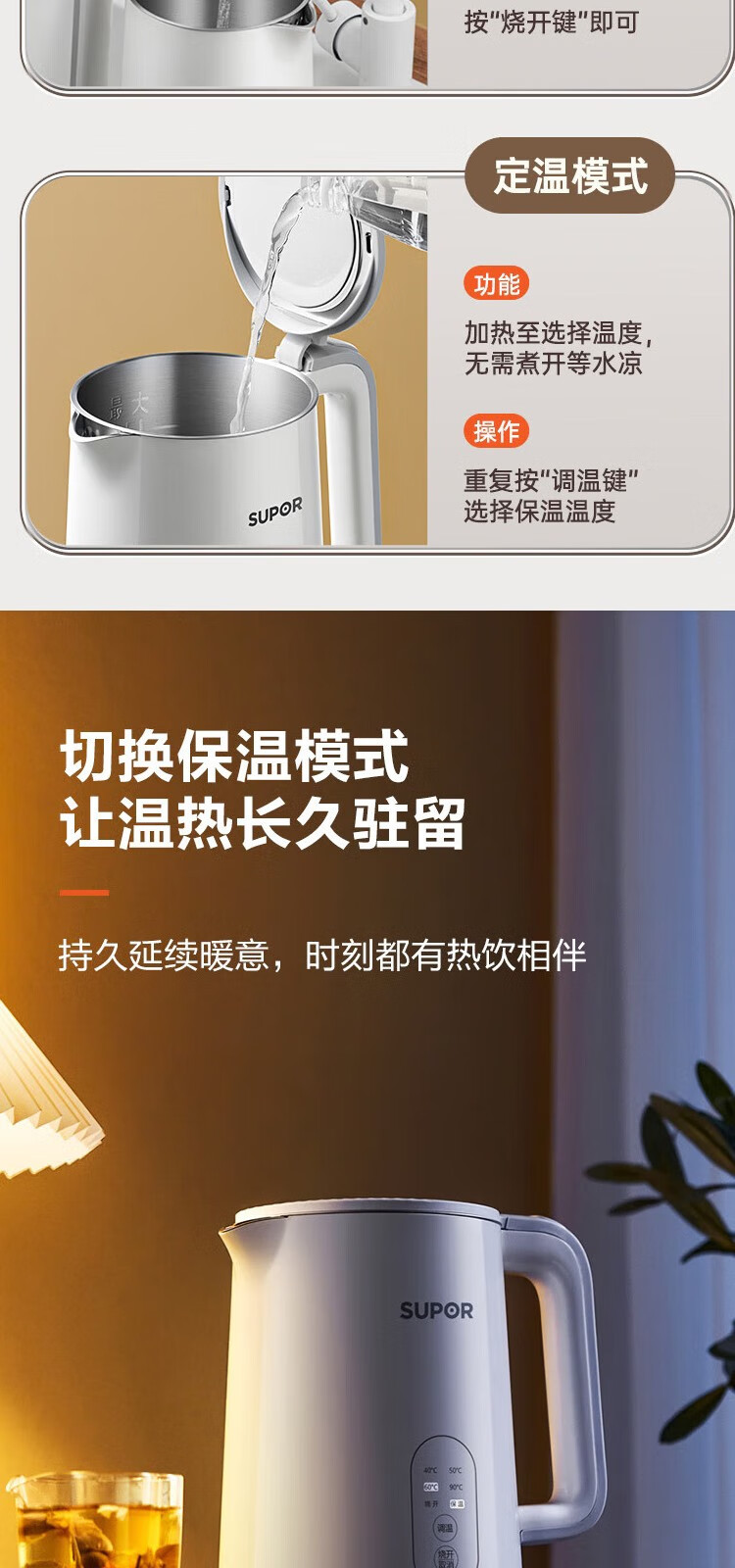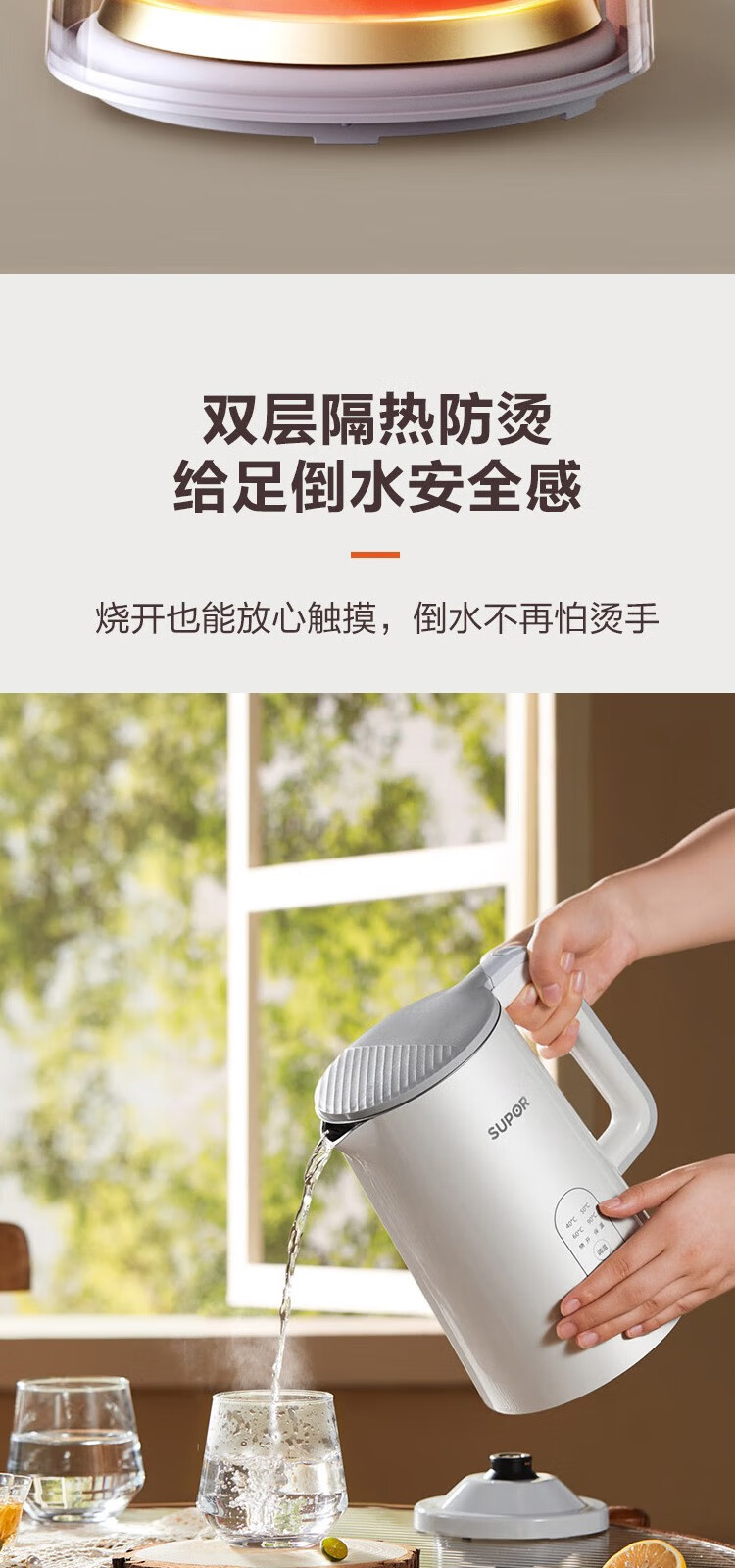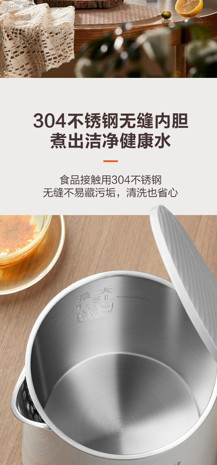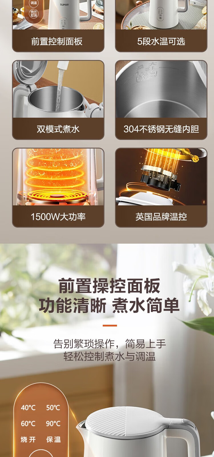 苏泊尔(SUPOR) 电热水壶0胶水1.5L烧水壶5段调温恒温保温电水壶304不锈钢内胆SW-15J71A 1.5L