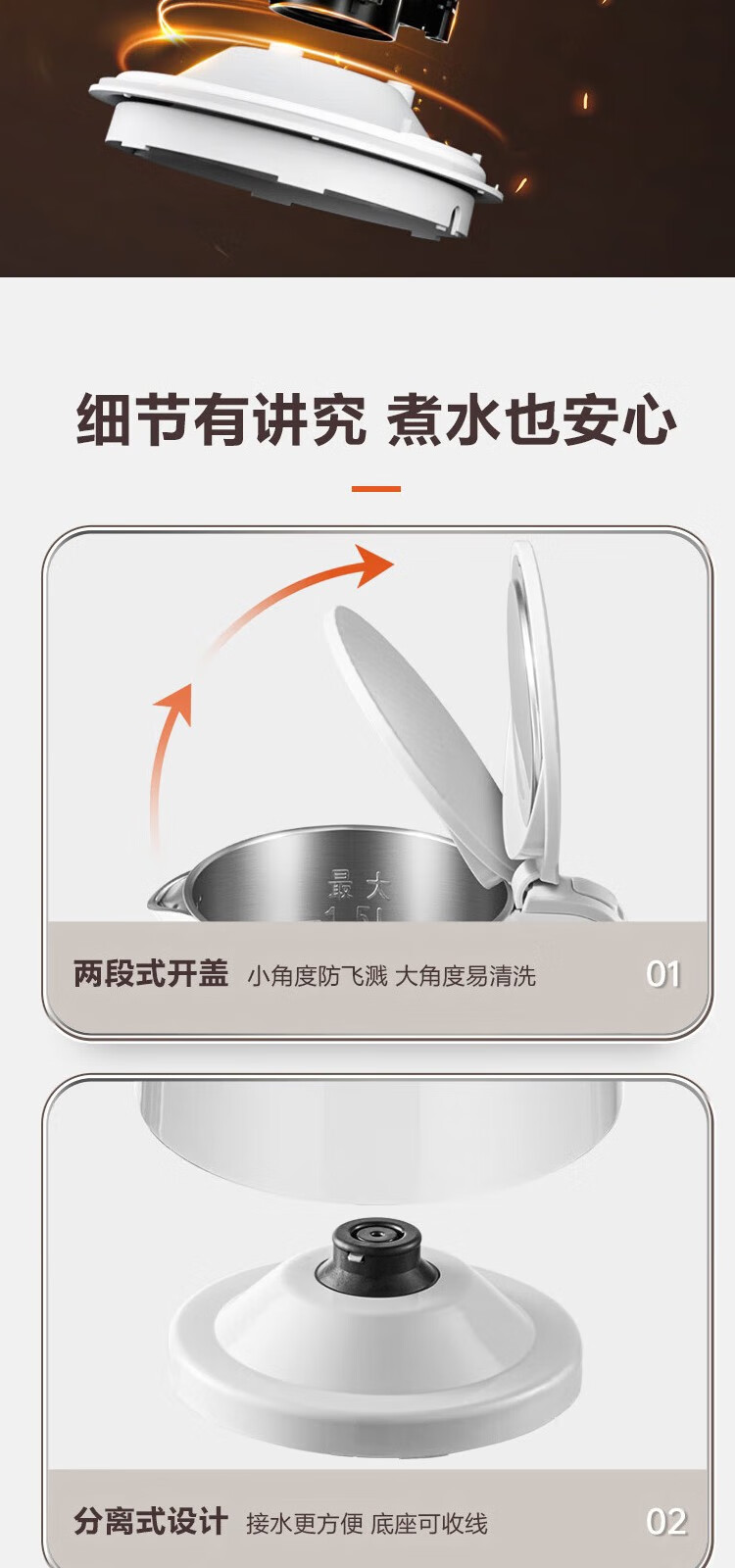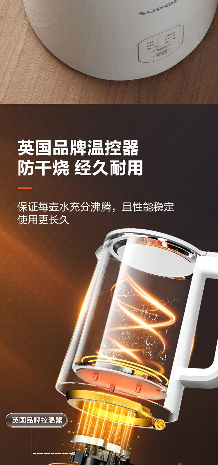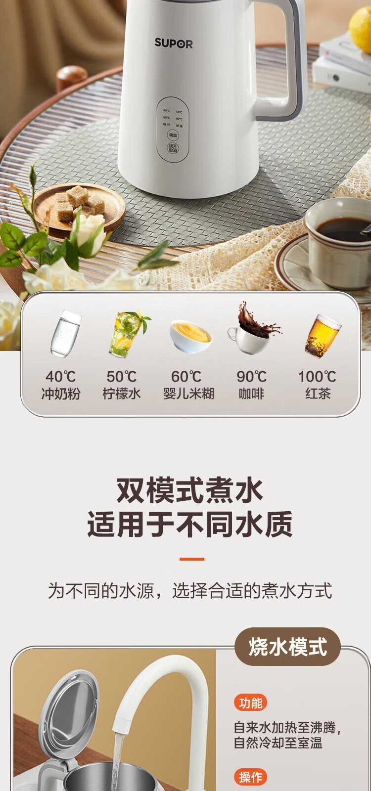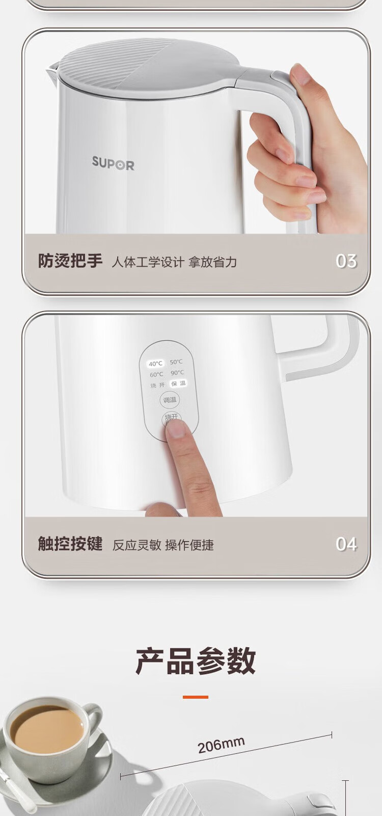 苏泊尔(SUPOR) 电热水壶0胶水1.5L烧水壶5段调温恒温保温电水壶304不锈钢内胆SW-15J71A 1.5L