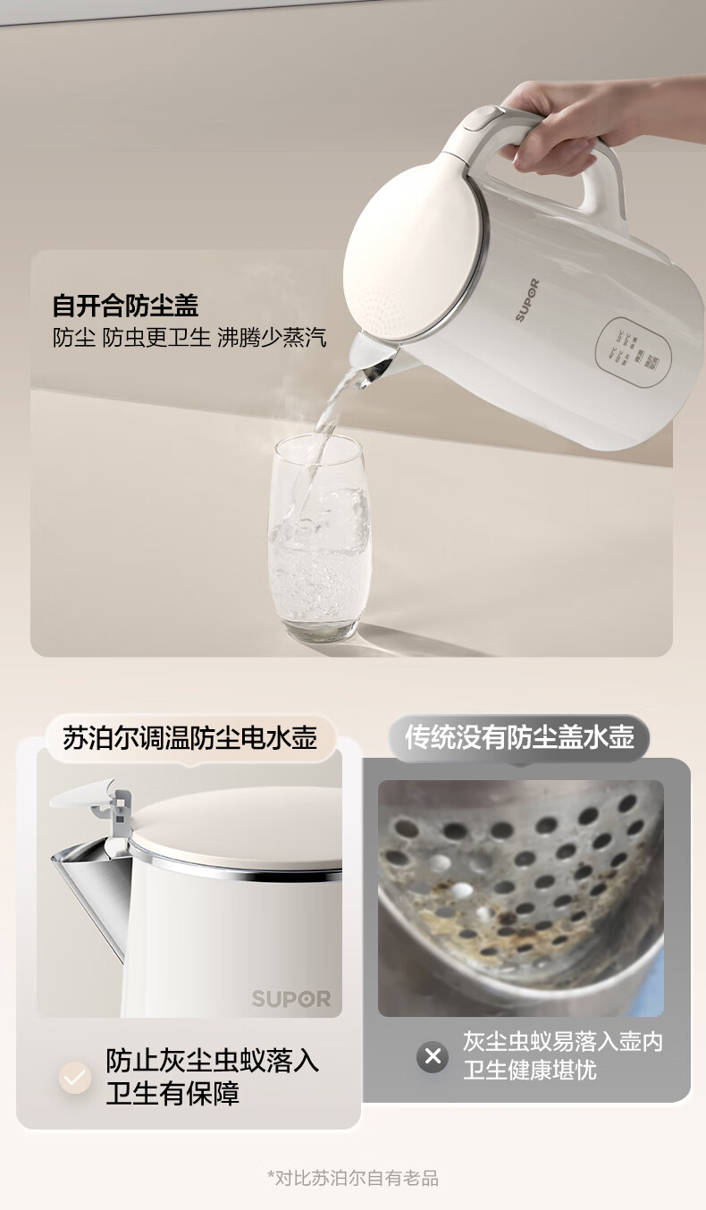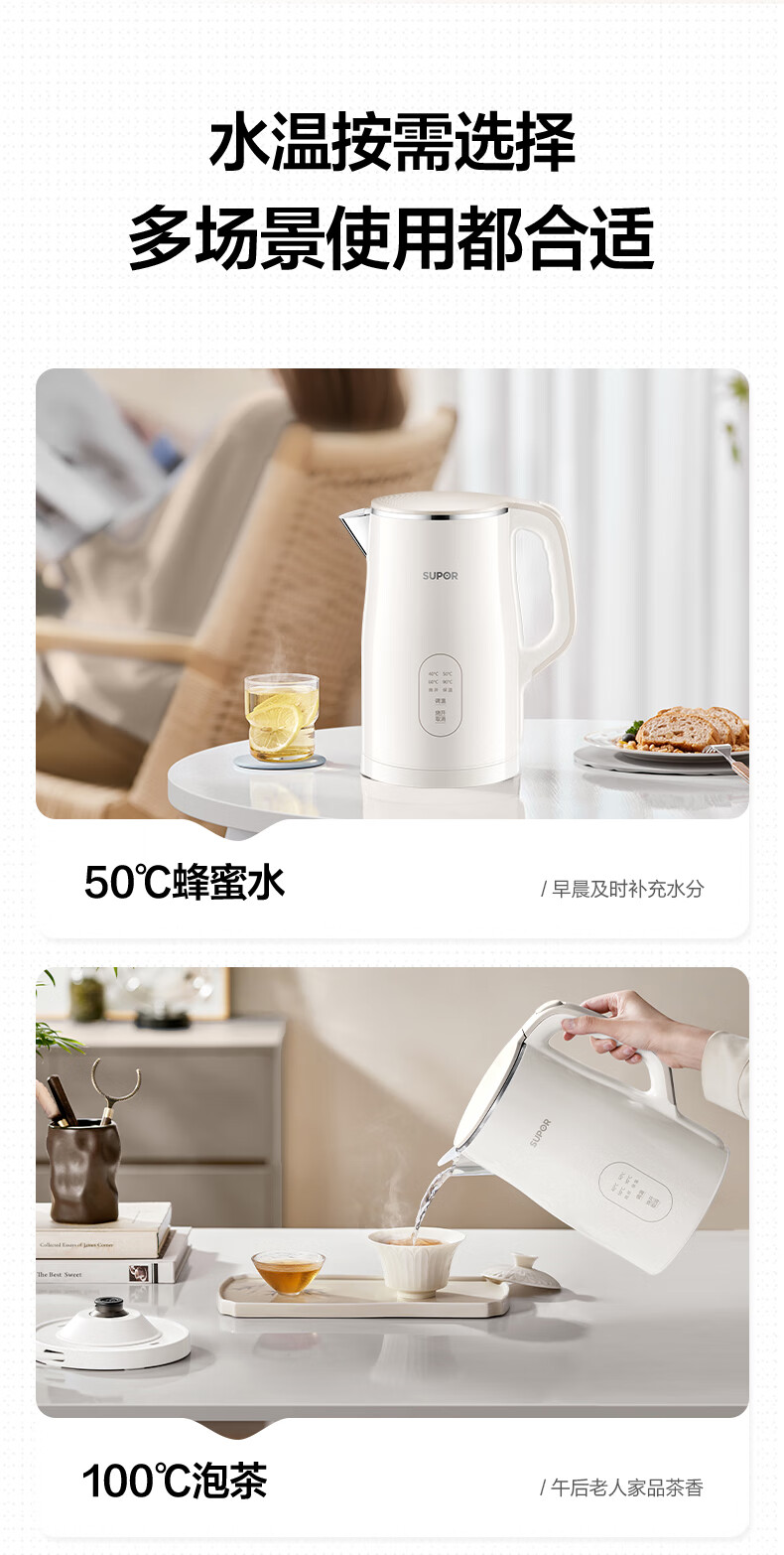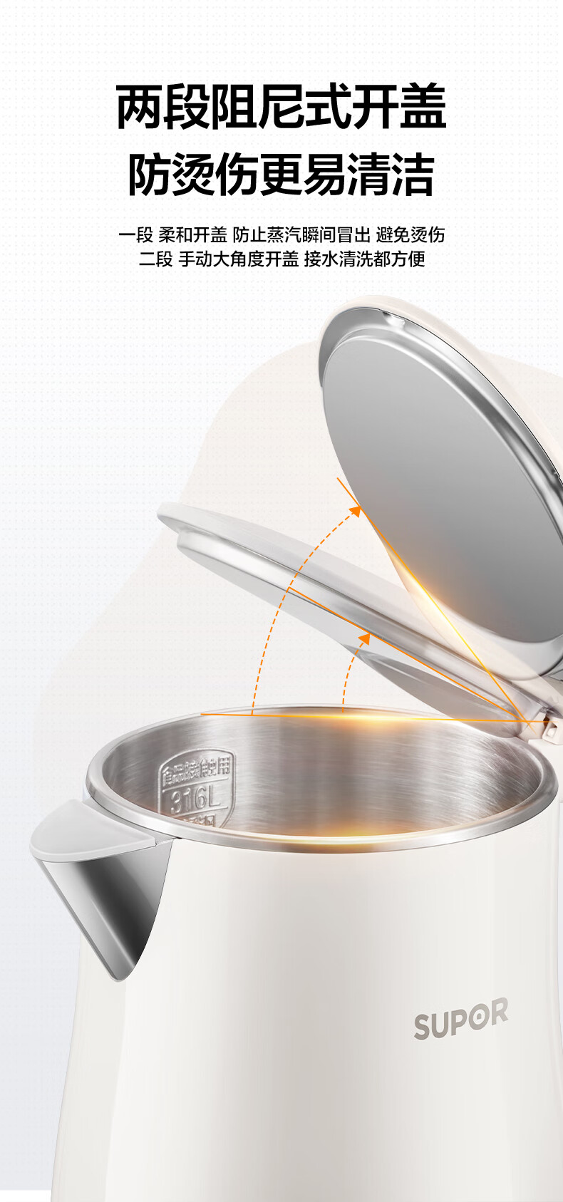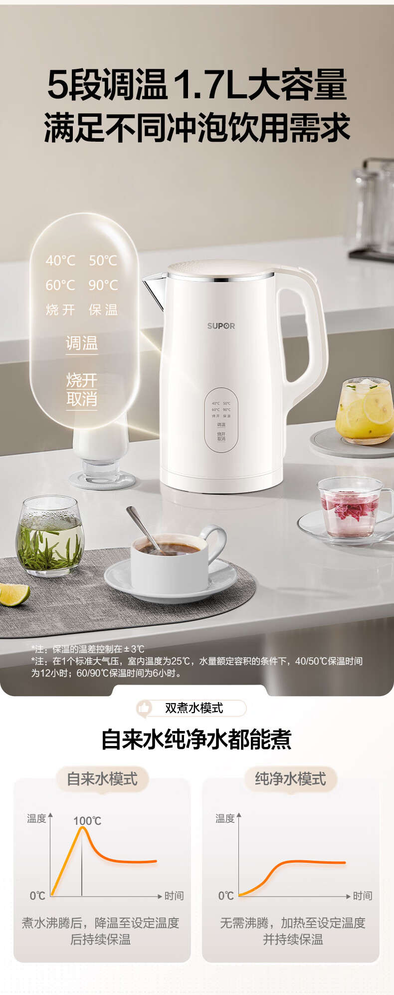 苏泊尔电热水壶家用无缝内胆大容量精准控温自动断电双层防烫低音烧水壶 1.7L 【316L不锈钢】SW-17S03F