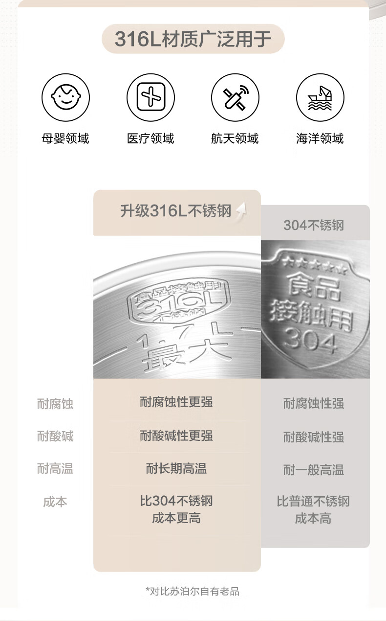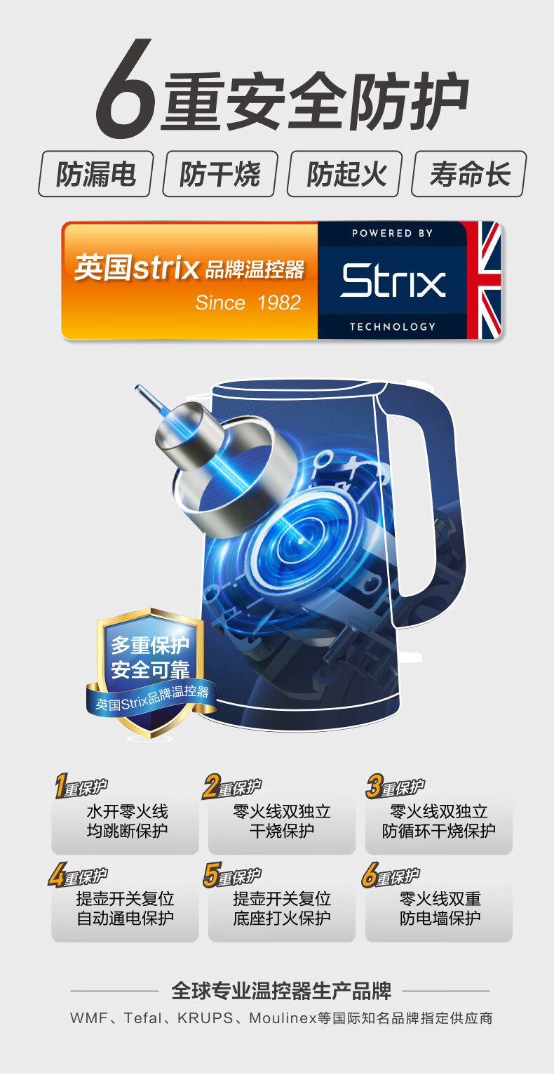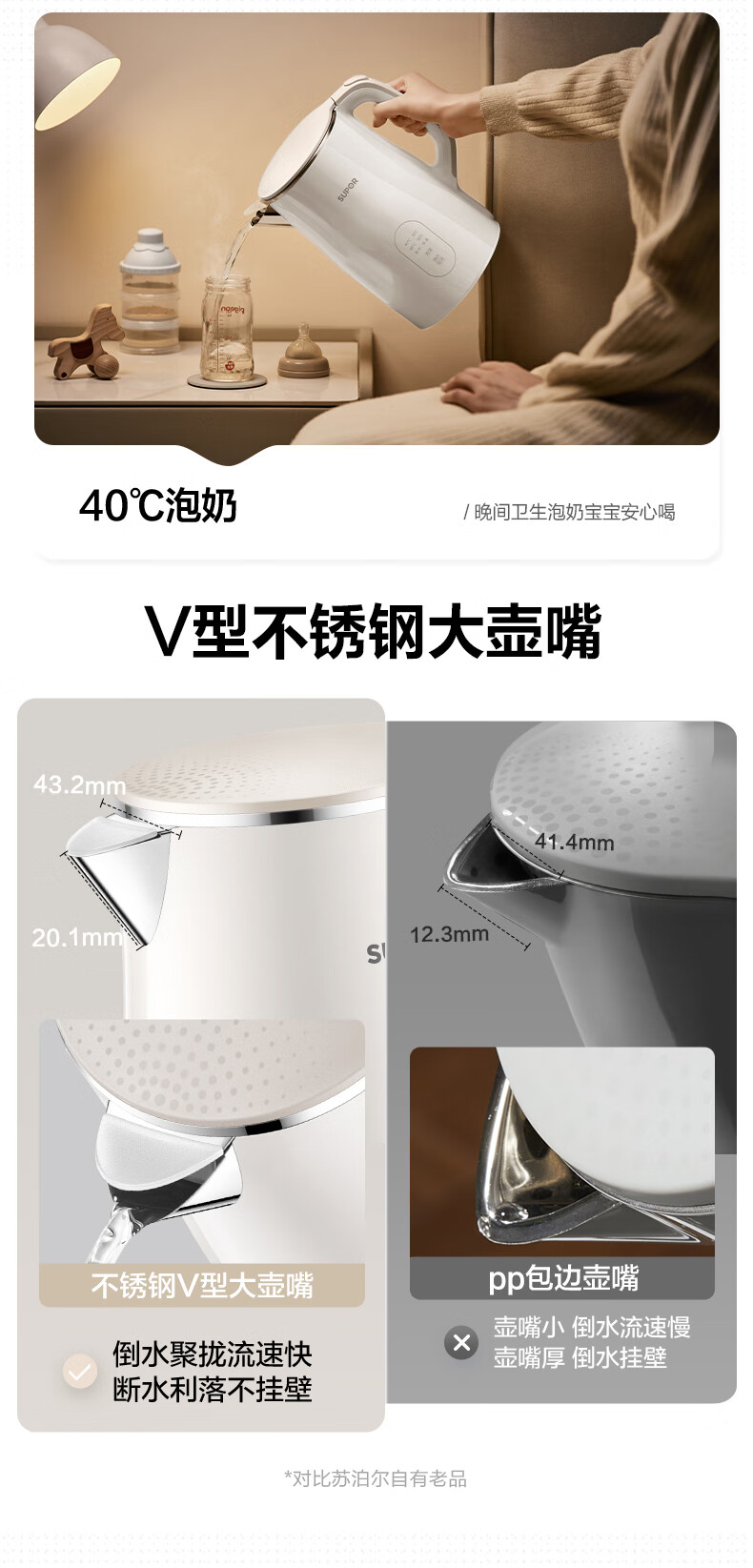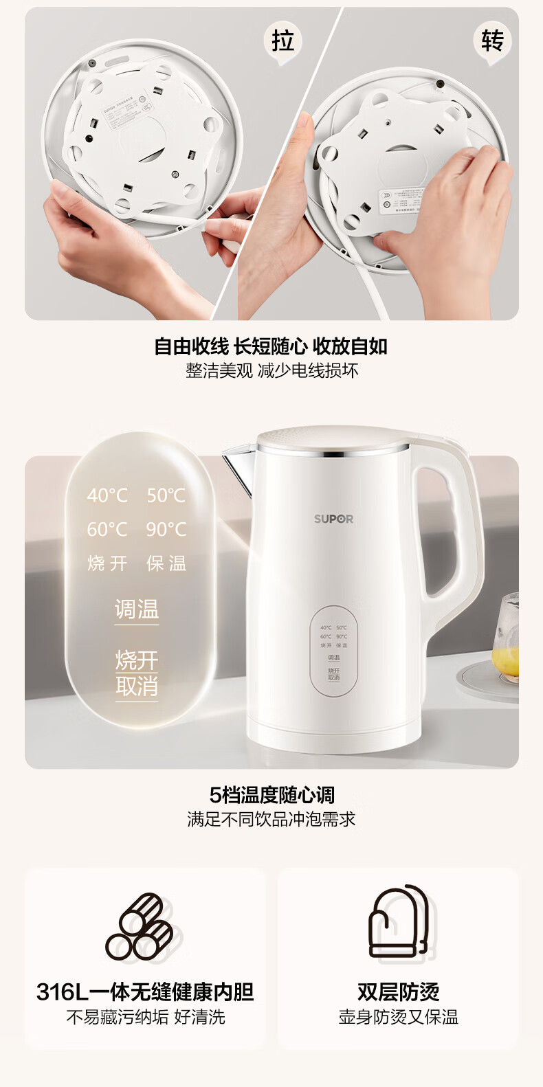 苏泊尔电热水壶家用无缝内胆大容量精准控温自动断电双层防烫低音烧水壶 1.7L 【316L不锈钢】SW-17S03F