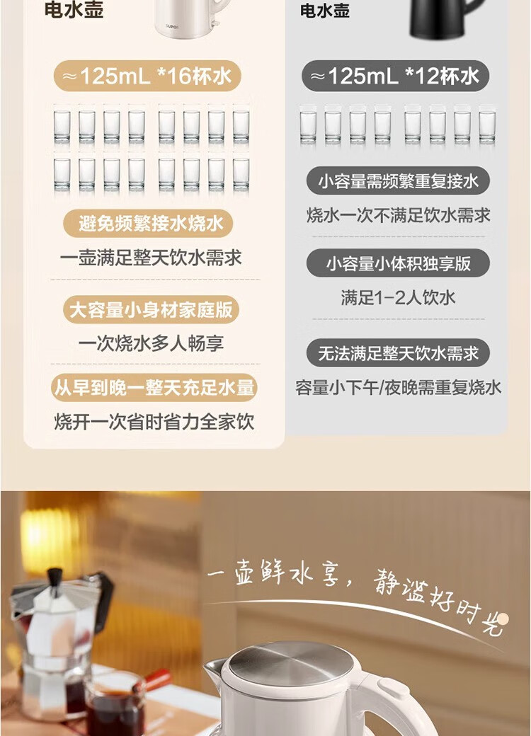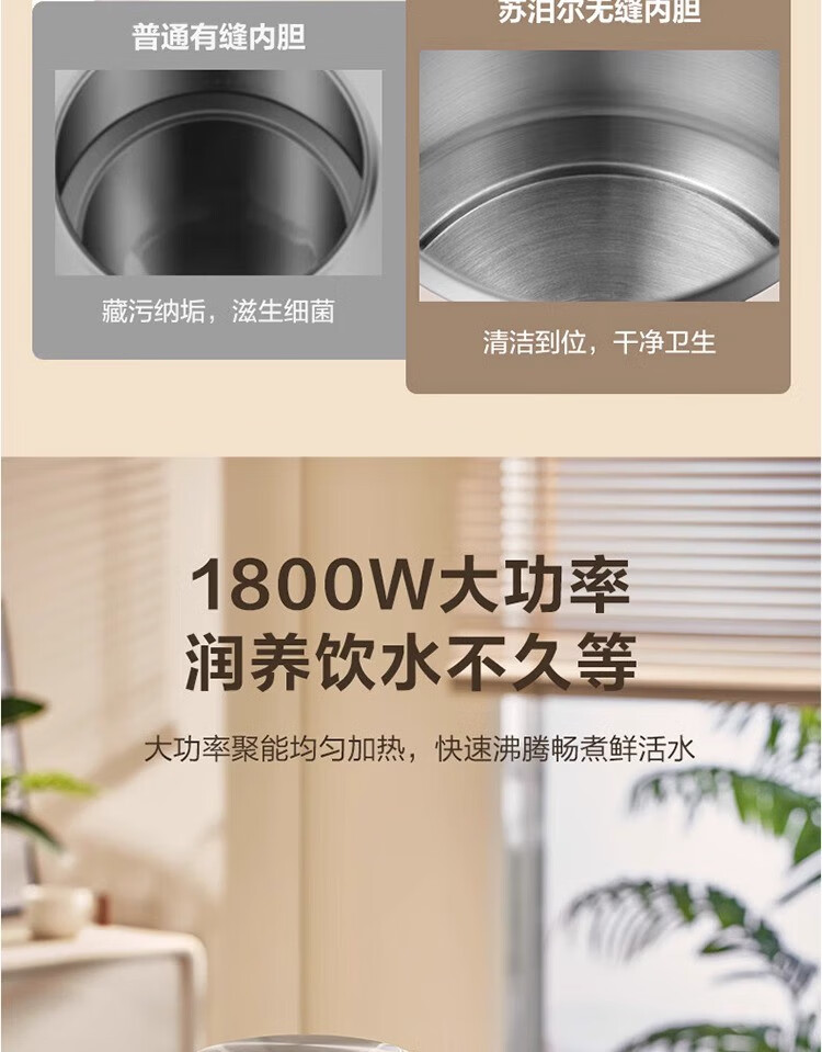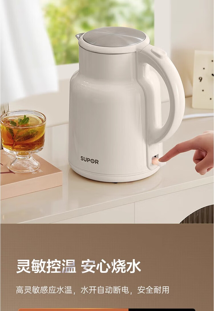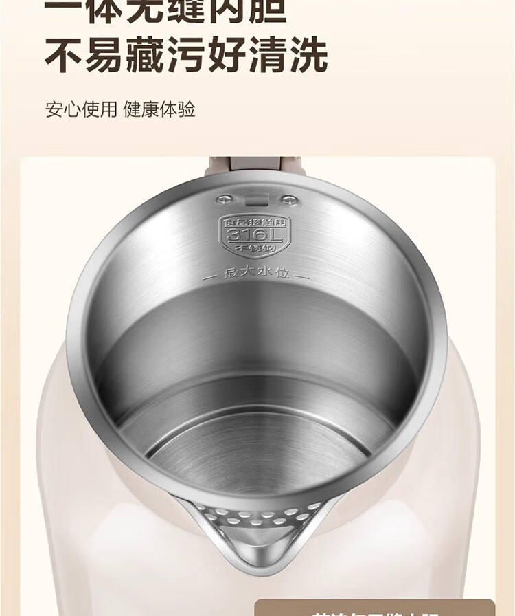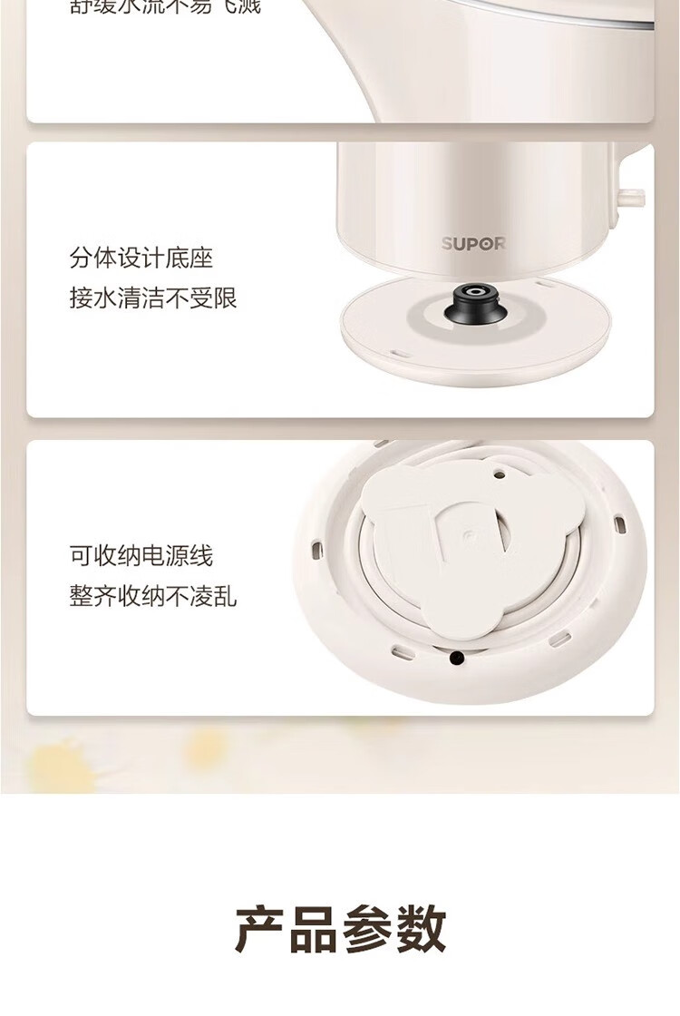 苏泊尔苏泊尔20S86A电热水壶家用316L不锈钢大容量电烧水壶保温电热壶 米白色 2l 2L 2l