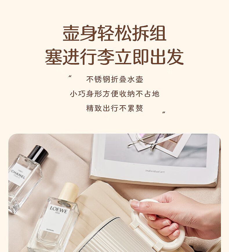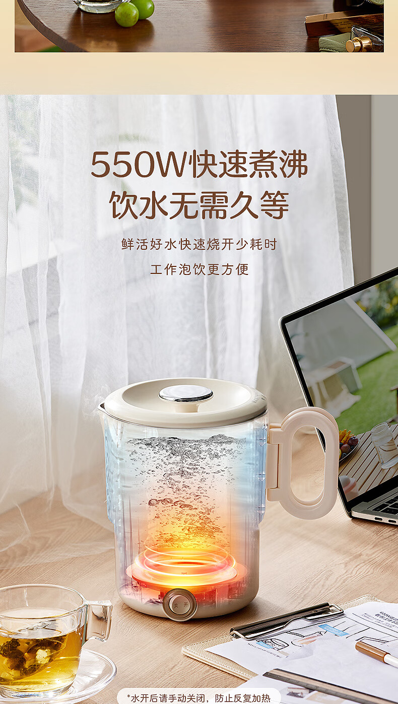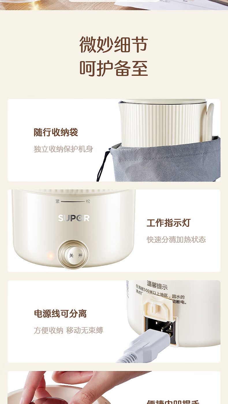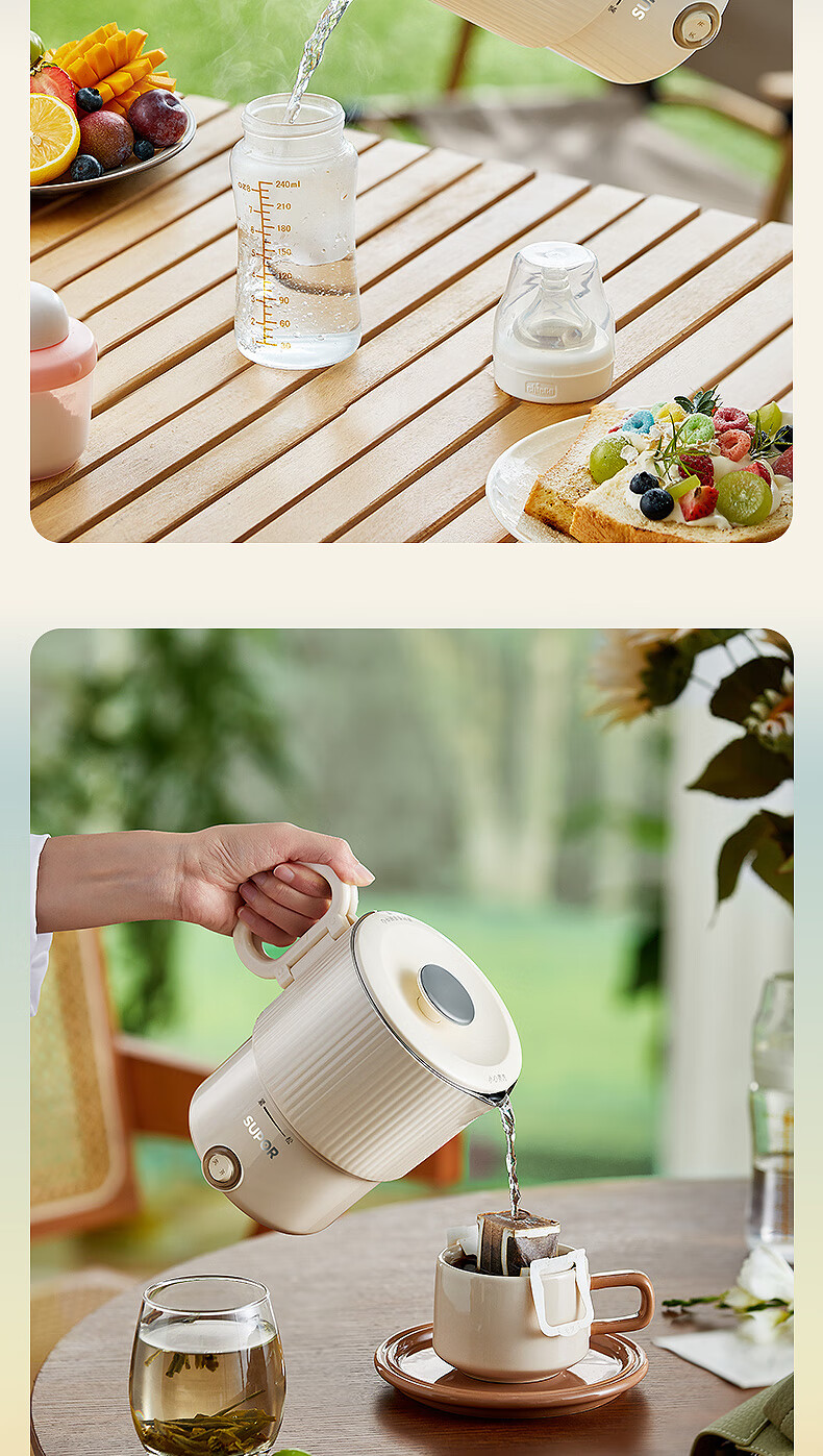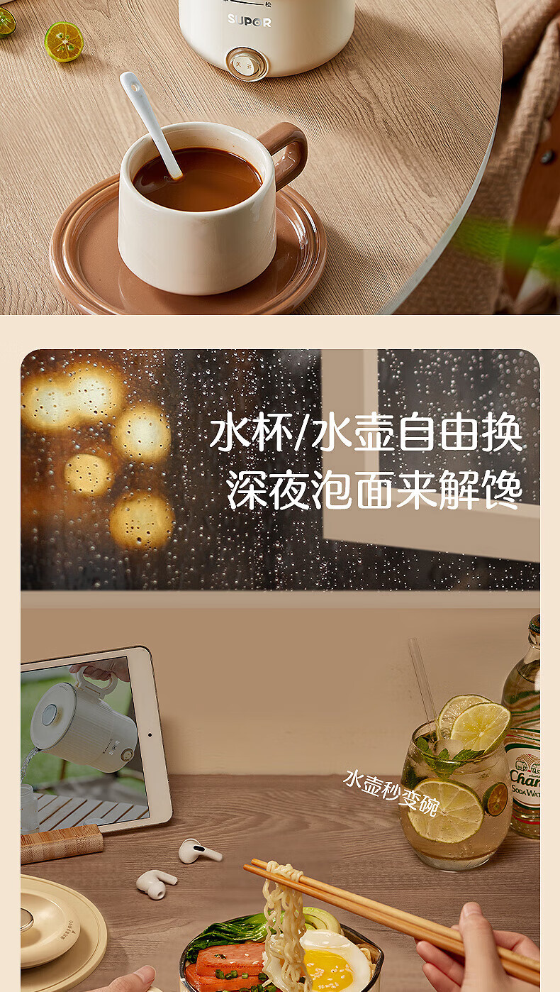 苏泊尔(SUPOR)便携式烧水壶电水壶可折叠0.8L 旅行出差家用养生冲奶电热水壶学生304不锈钢泡面杯 SW-08J01