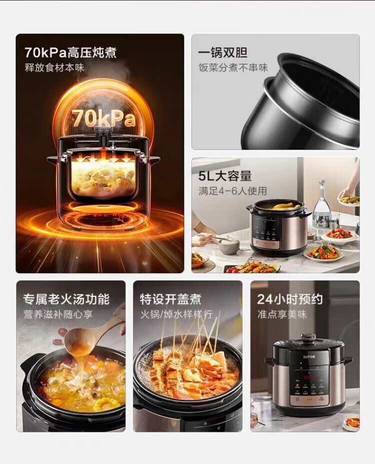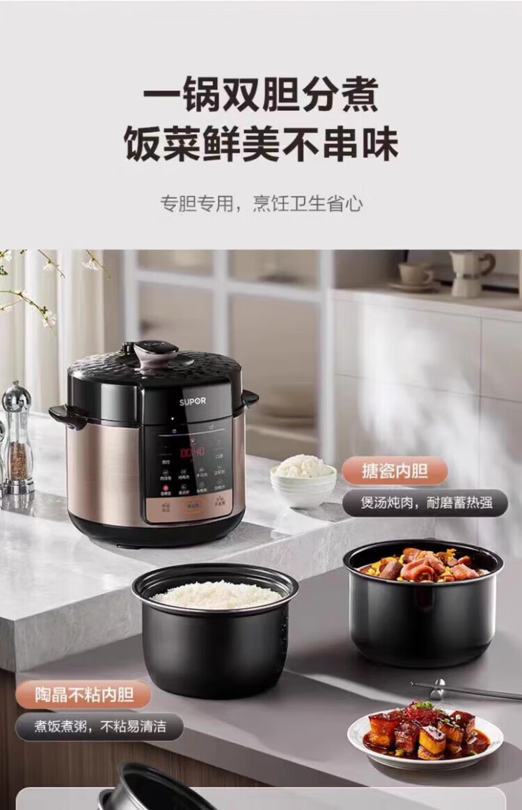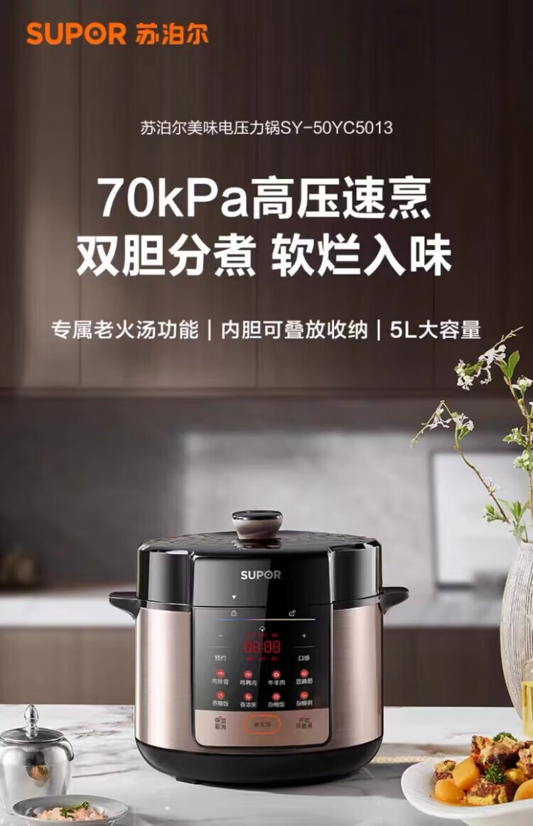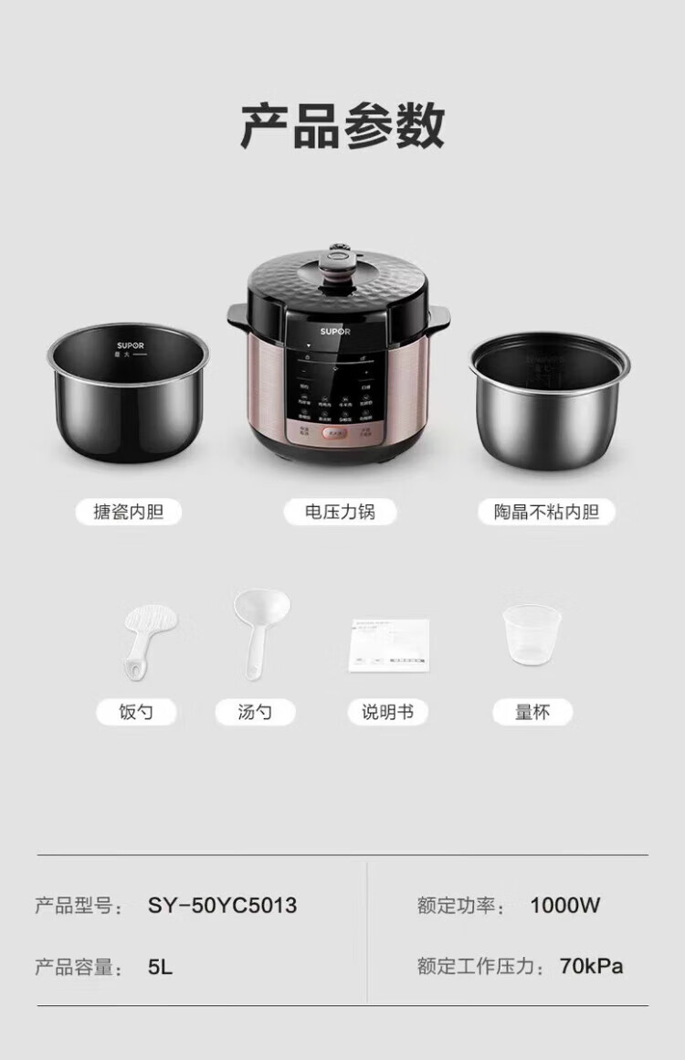 苏泊尔(SUPOR)电压力锅家用5L升双胆高压饭煲SY-50YC5013多功能高压锅新款 SY-50YC5013 5L