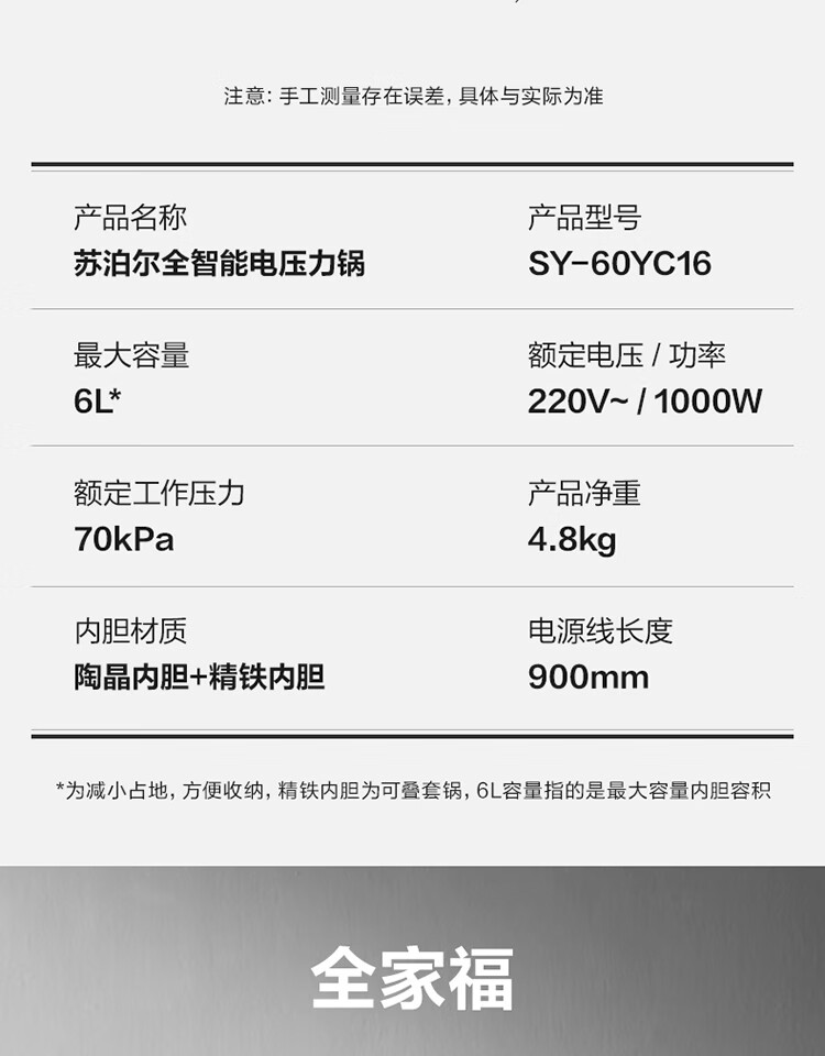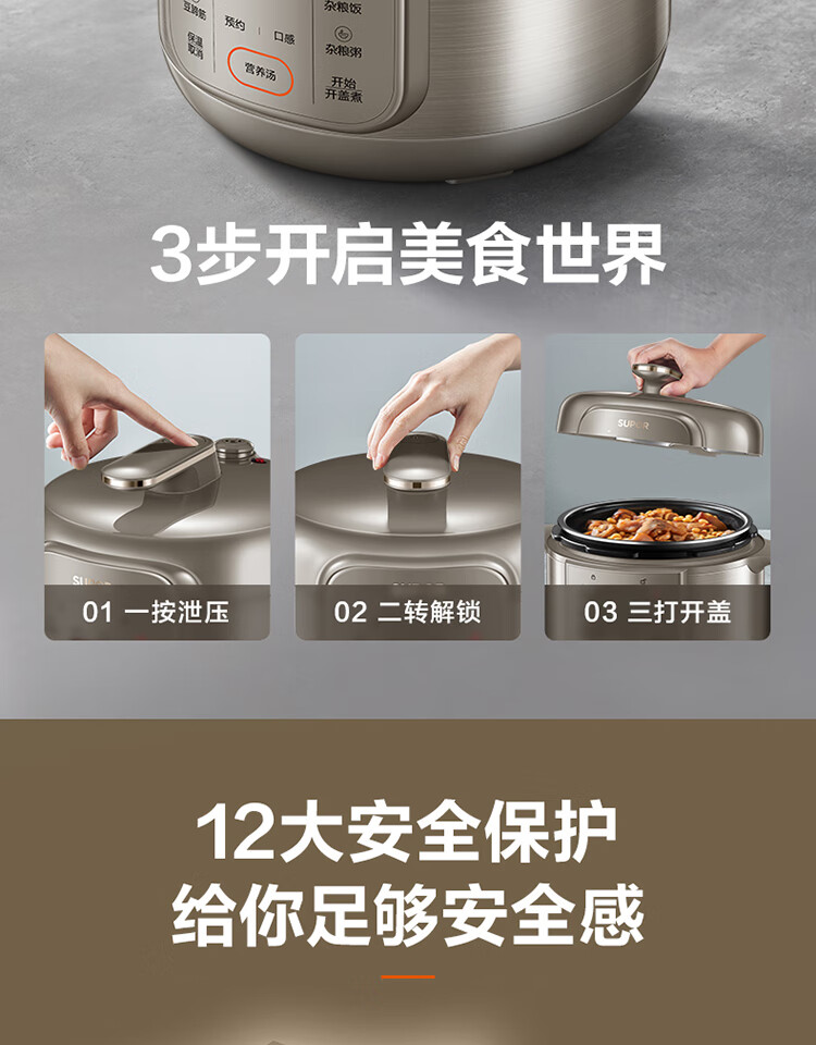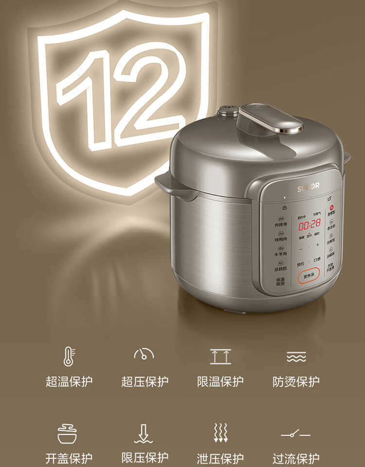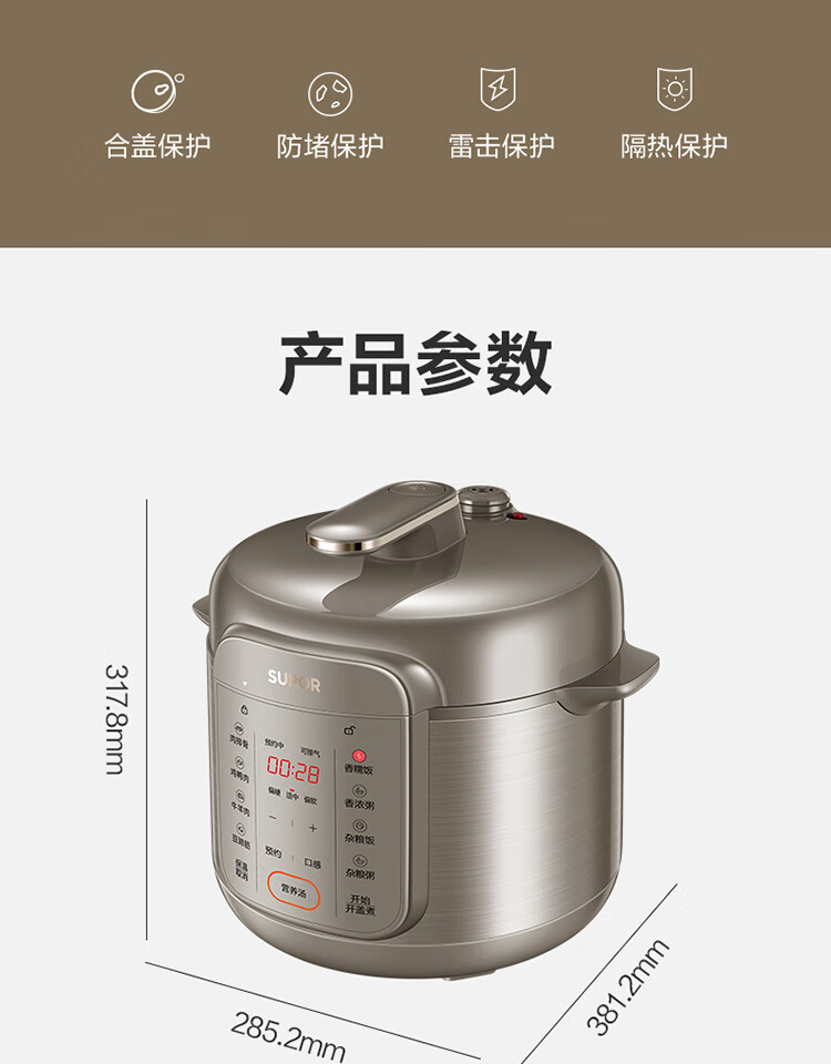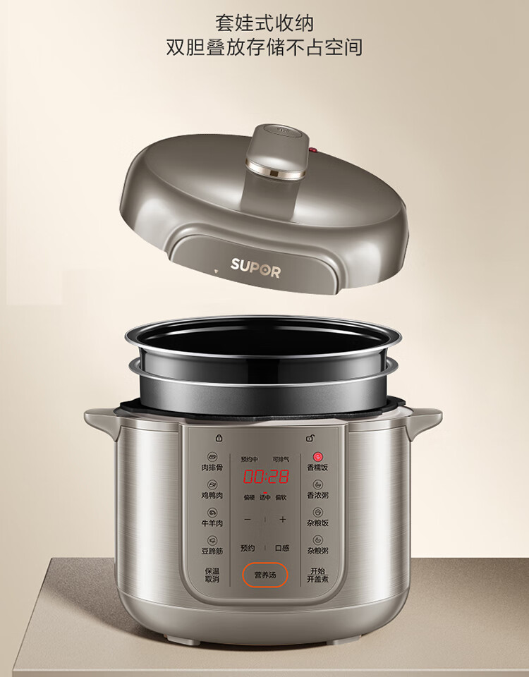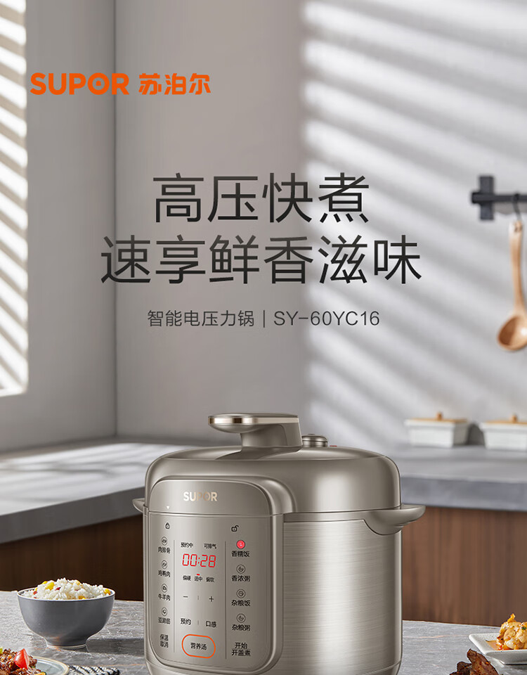 苏泊尔电压力锅5L全自动智能预约家用煲汤多功能面板易清洁双内胆压力锅电饭煲高压锅SY-50YC16 6L 专柜款SY-60YC16