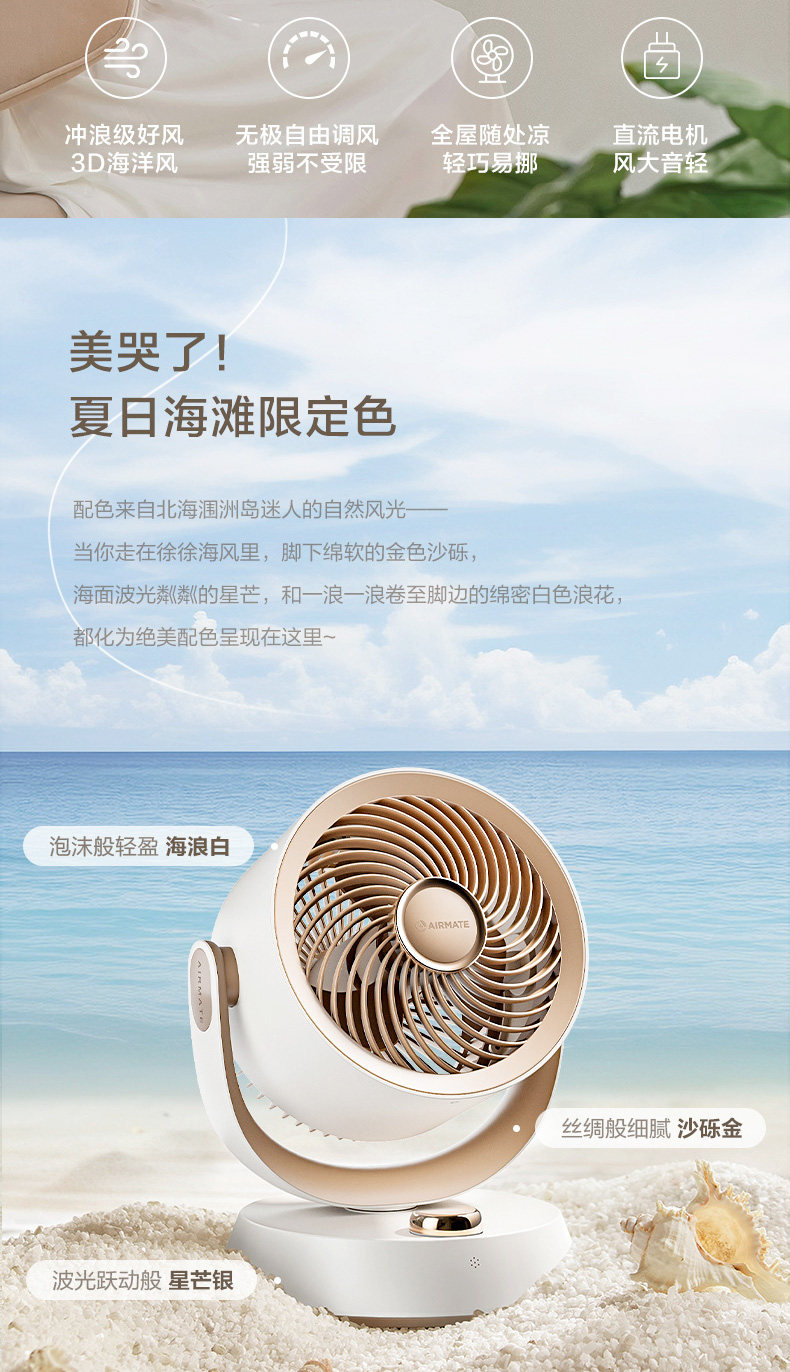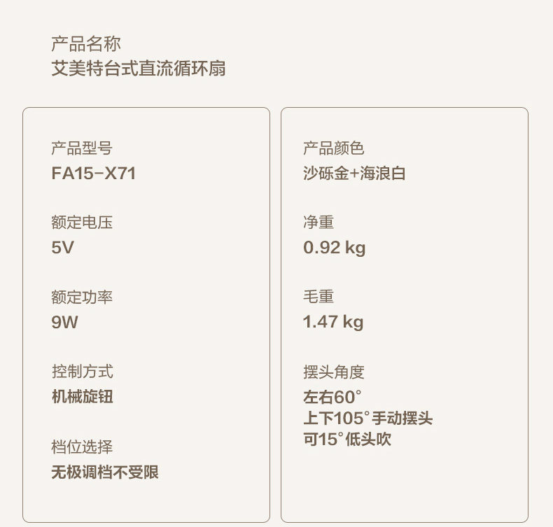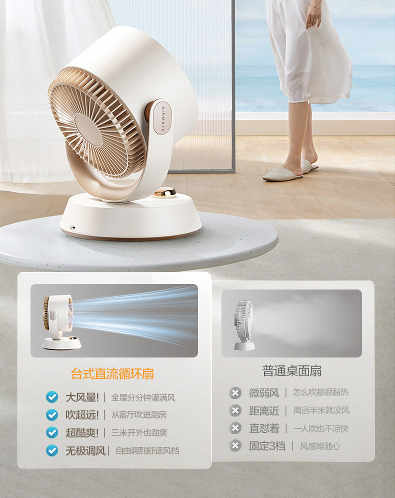 艾美特空气循环扇家用电风扇小型台式卧室台扇学生宿舍X71定时