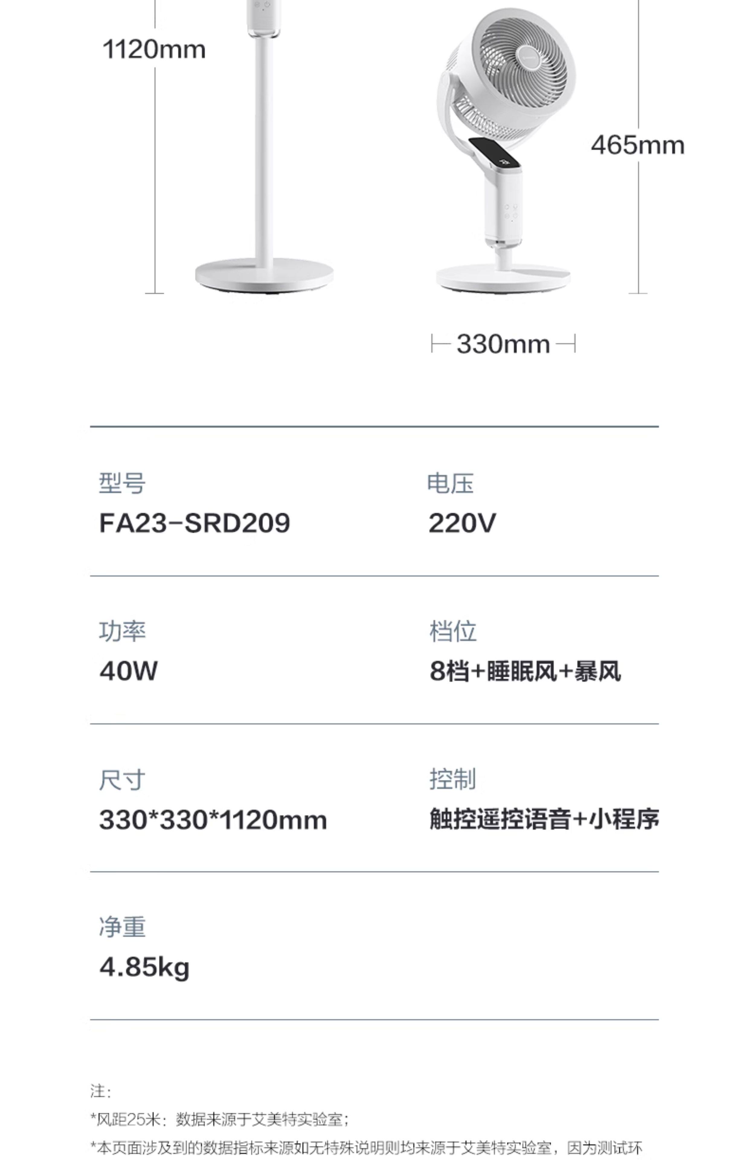 艾美特循环扇FA23-SRD209立式智能电风扇