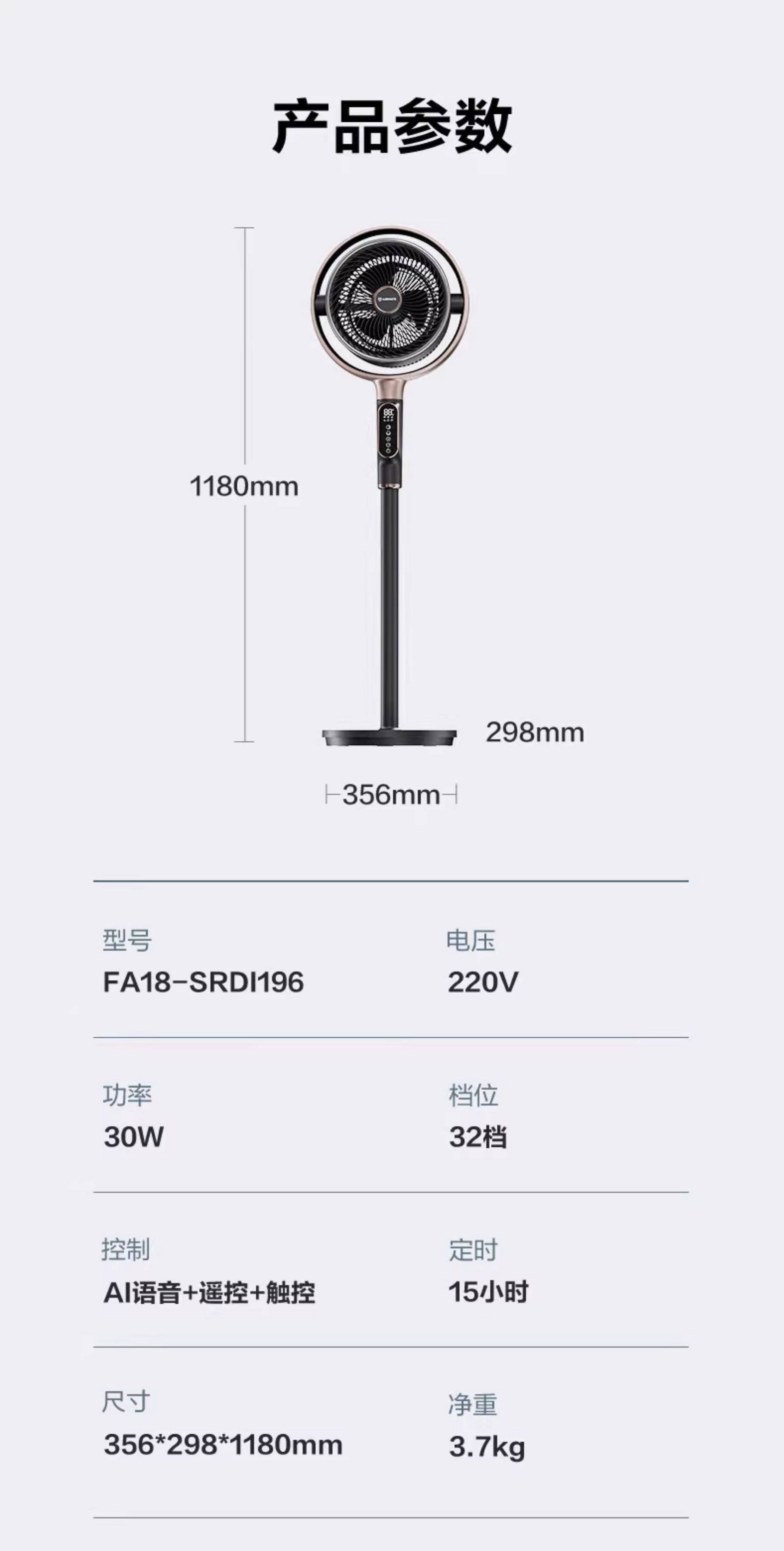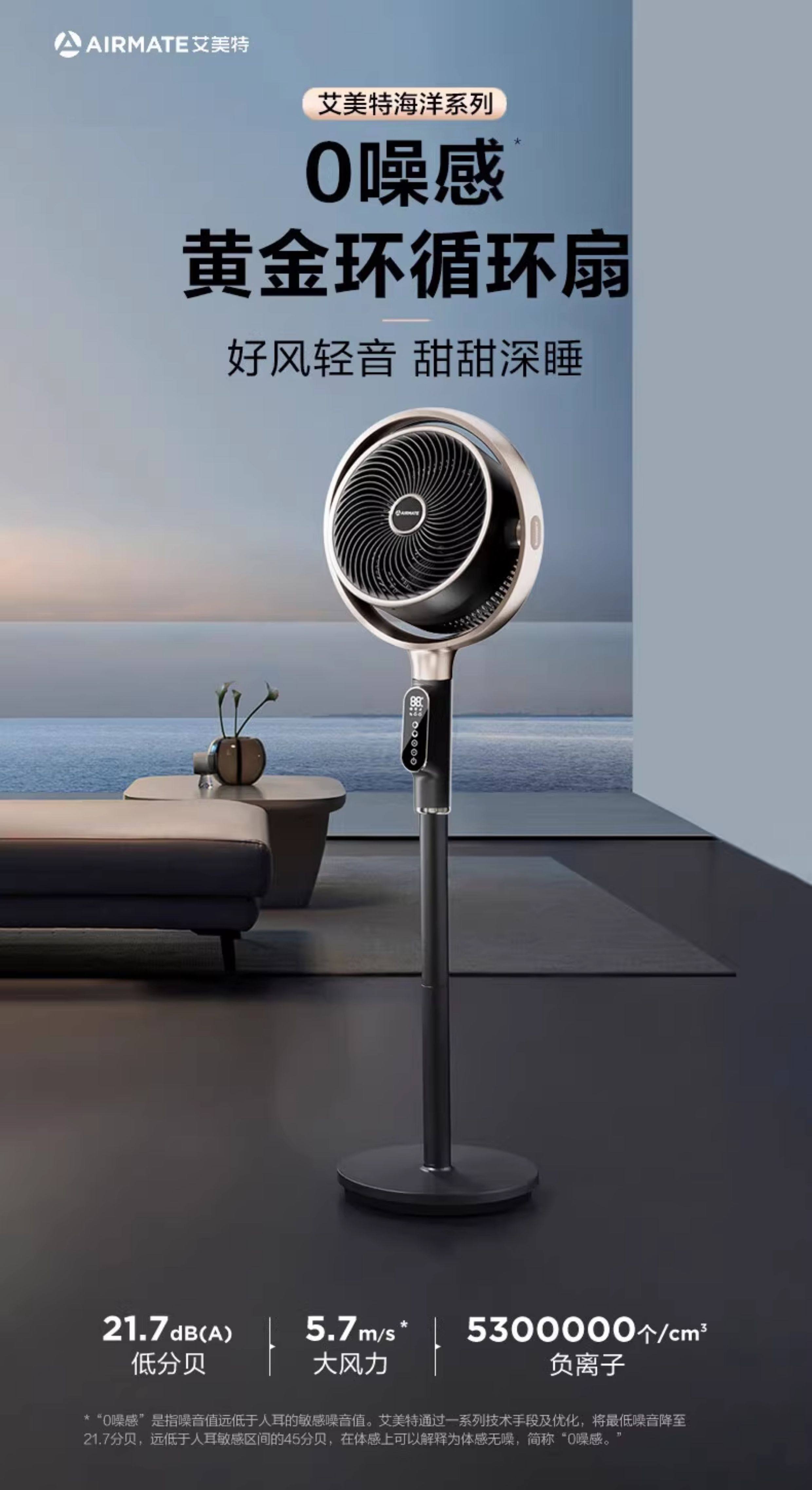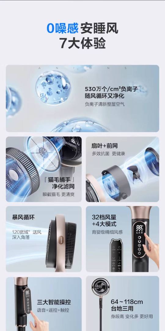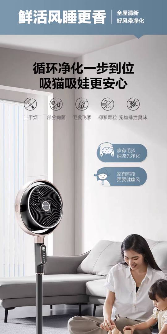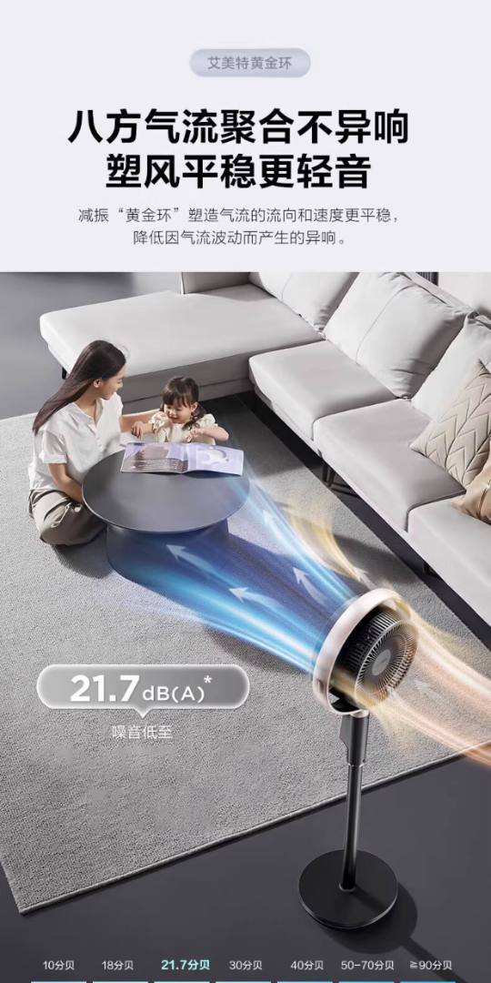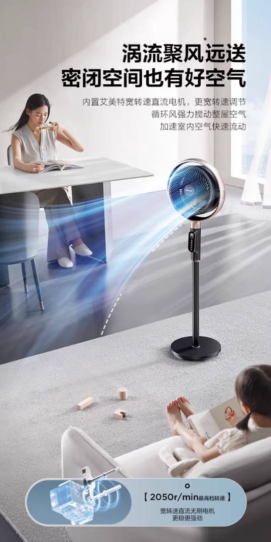 艾美特空气循环扇家用强力语音遥控离子净化直流立式落地电风扇