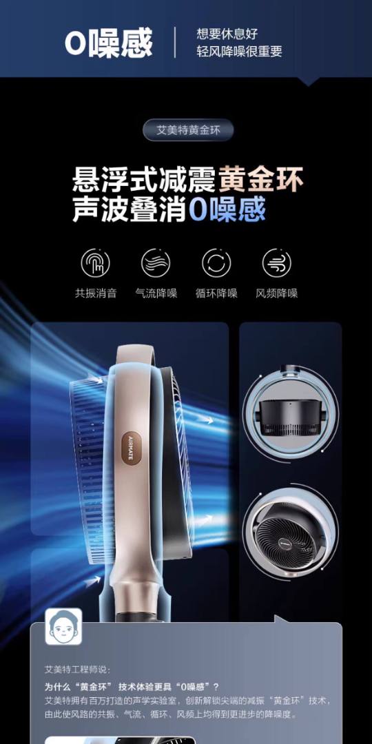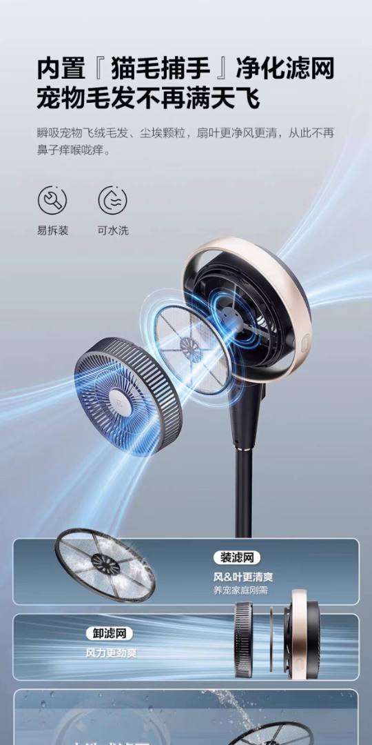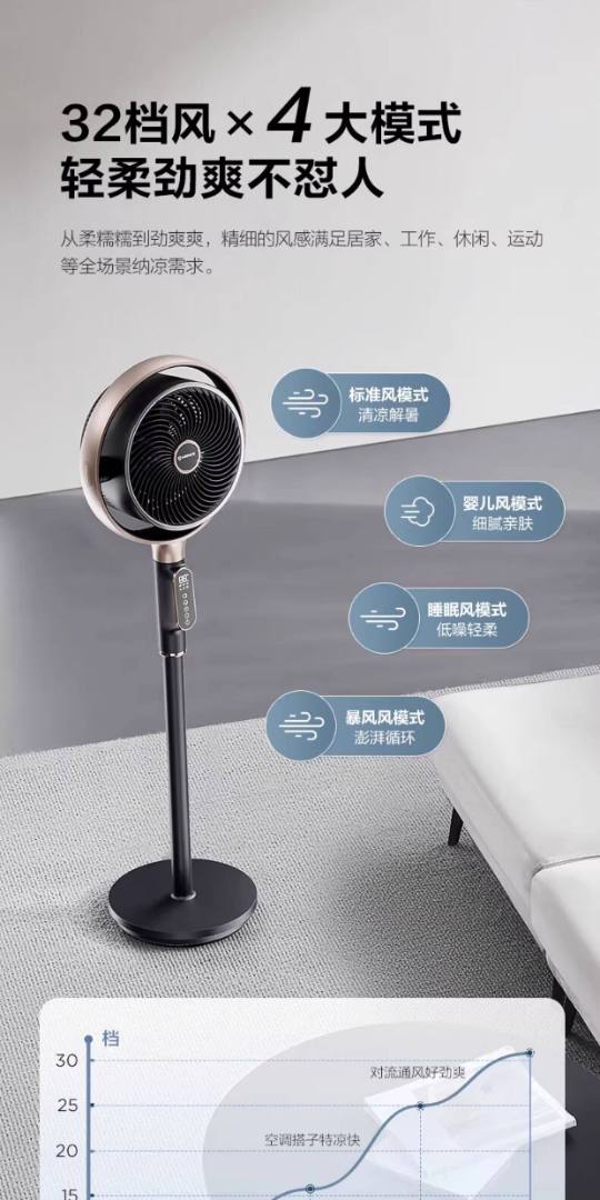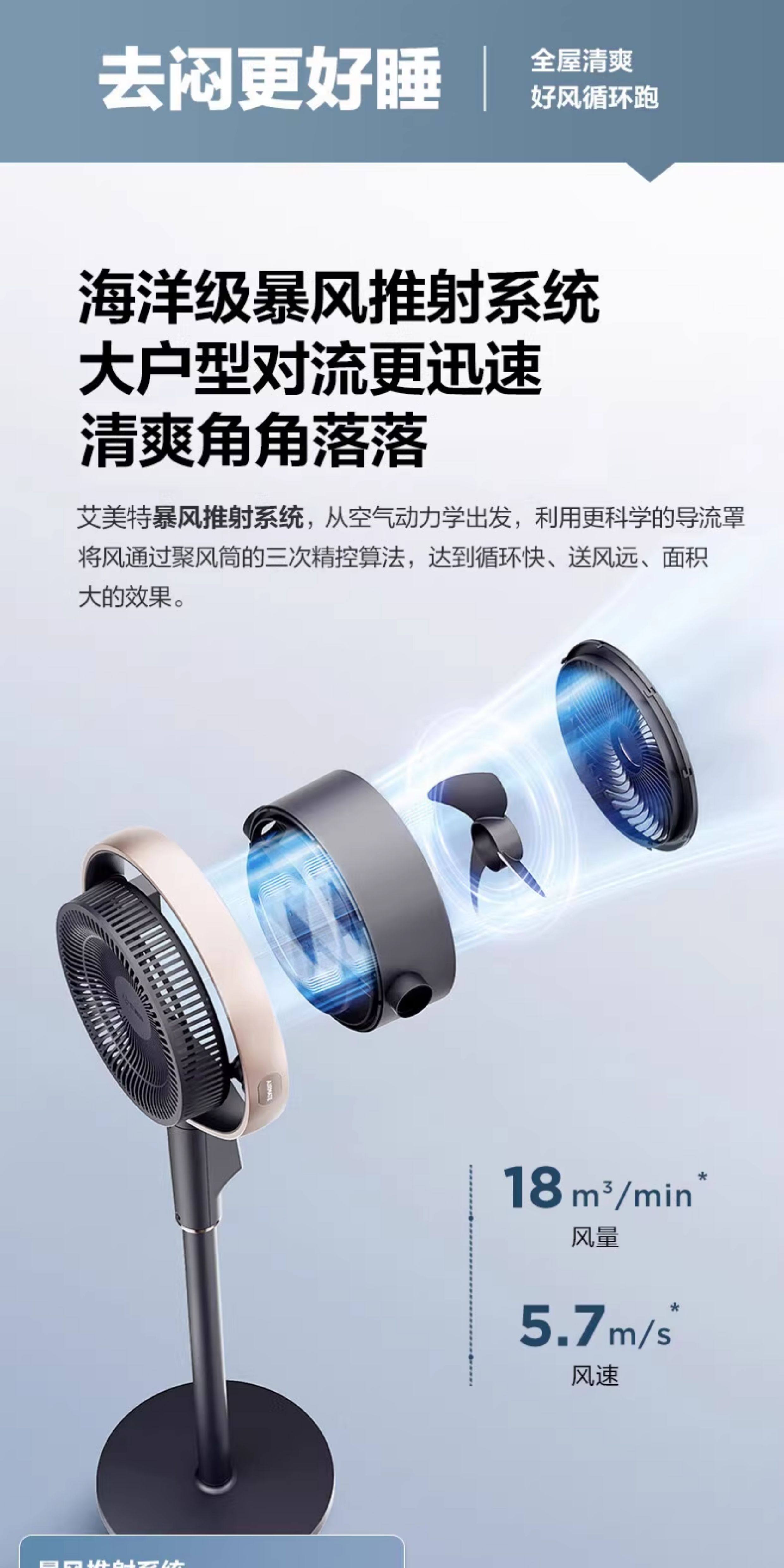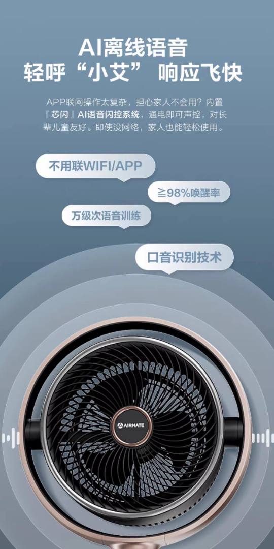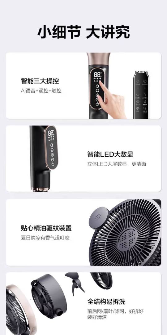 艾美特空气循环扇家用强力语音遥控离子净化直流立式落地电风扇