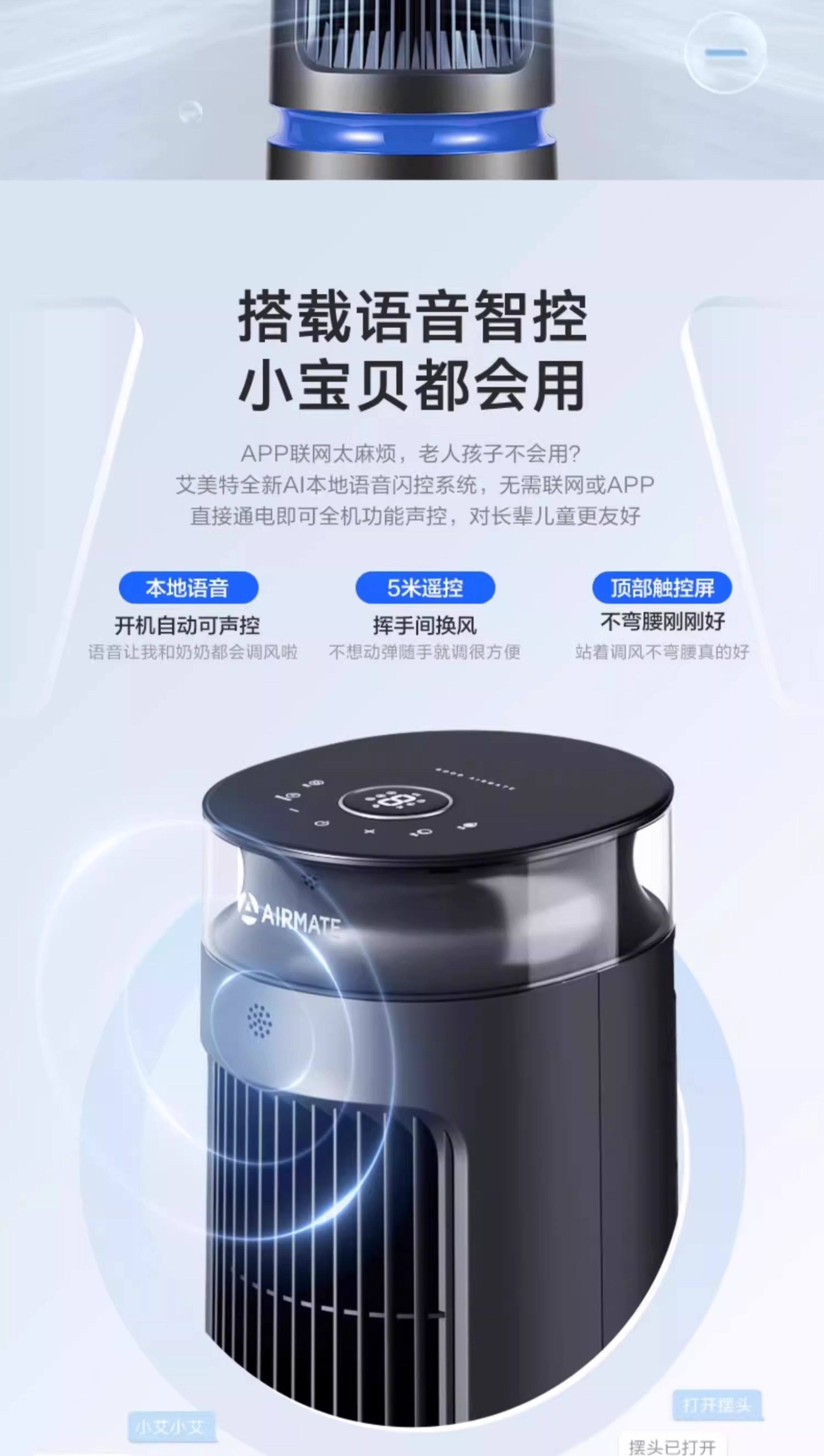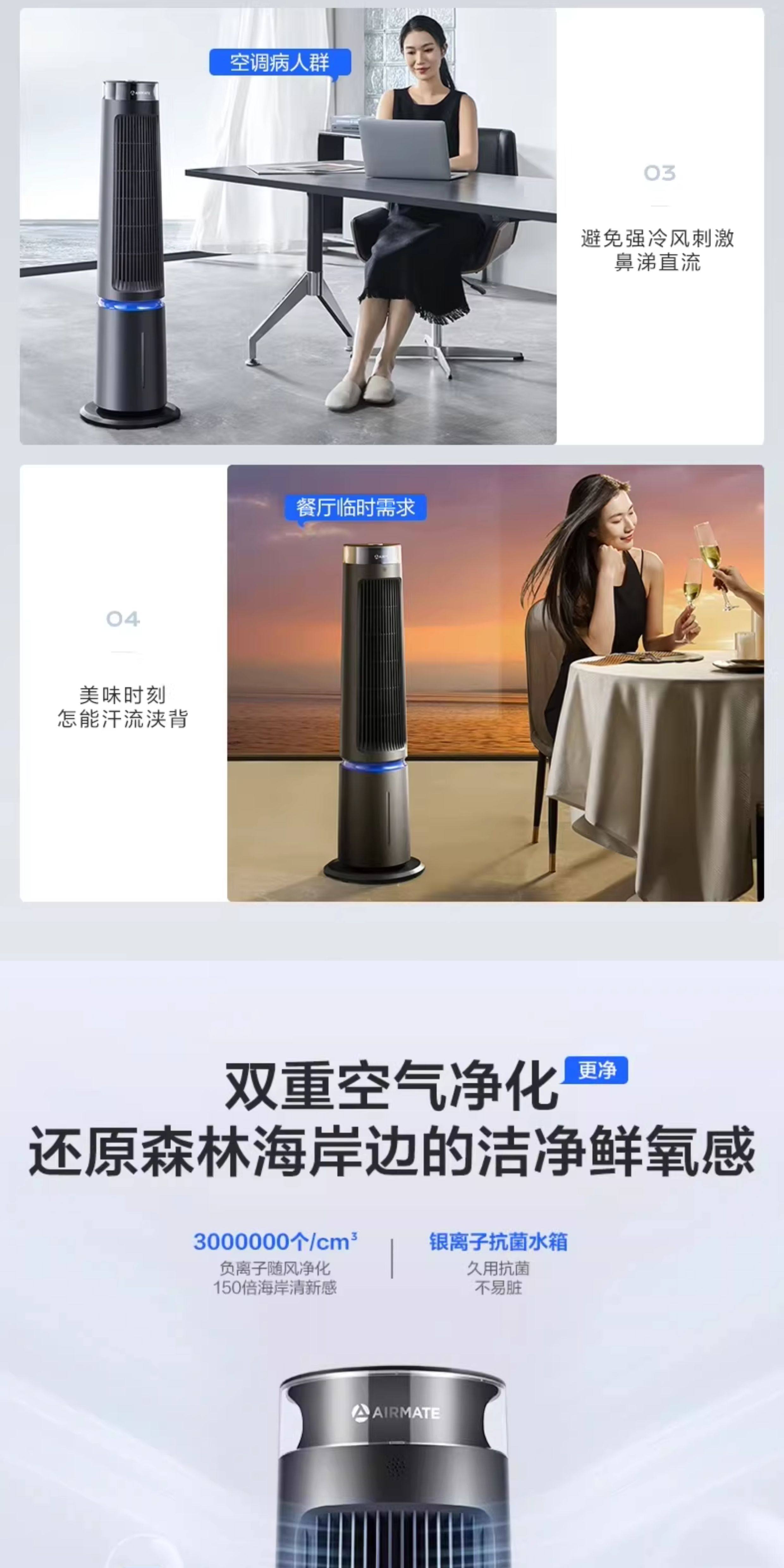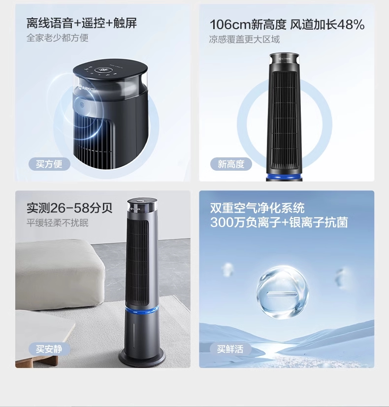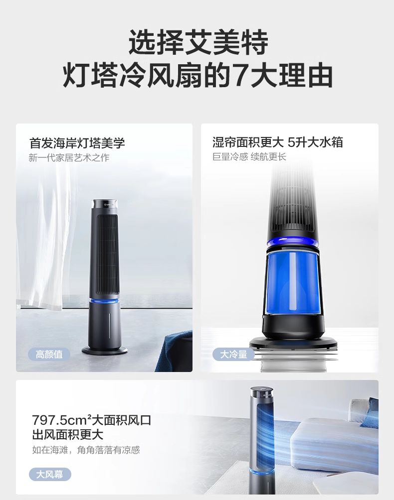 艾美特塔扇冷风扇家用冷风机遥控定时制冷空调扇轻音电风扇SRI22
