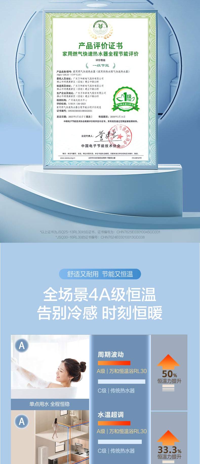 万和 JSQ30-16RL30 16升 天然气 水气双伺服 零冷水热水器