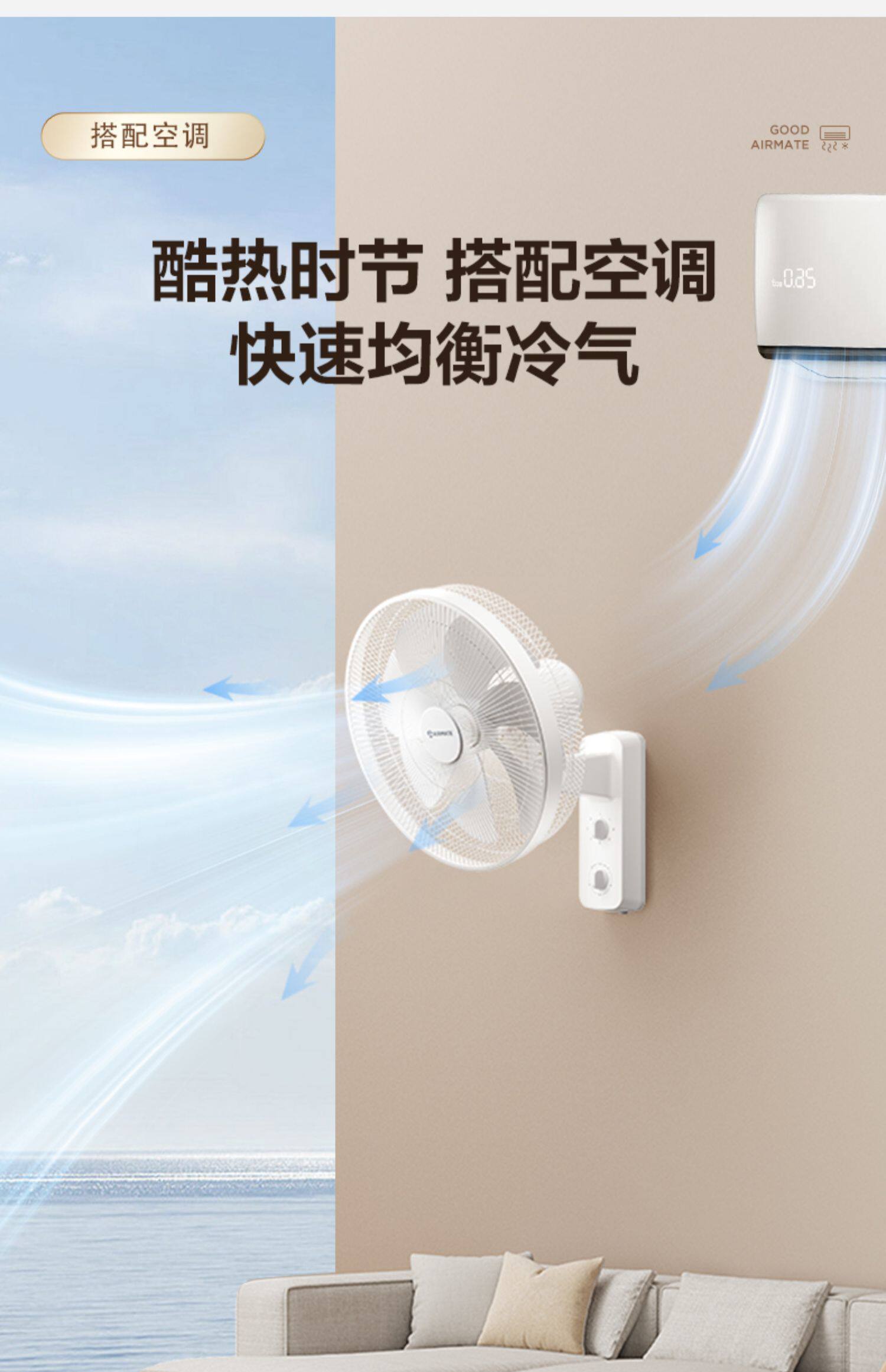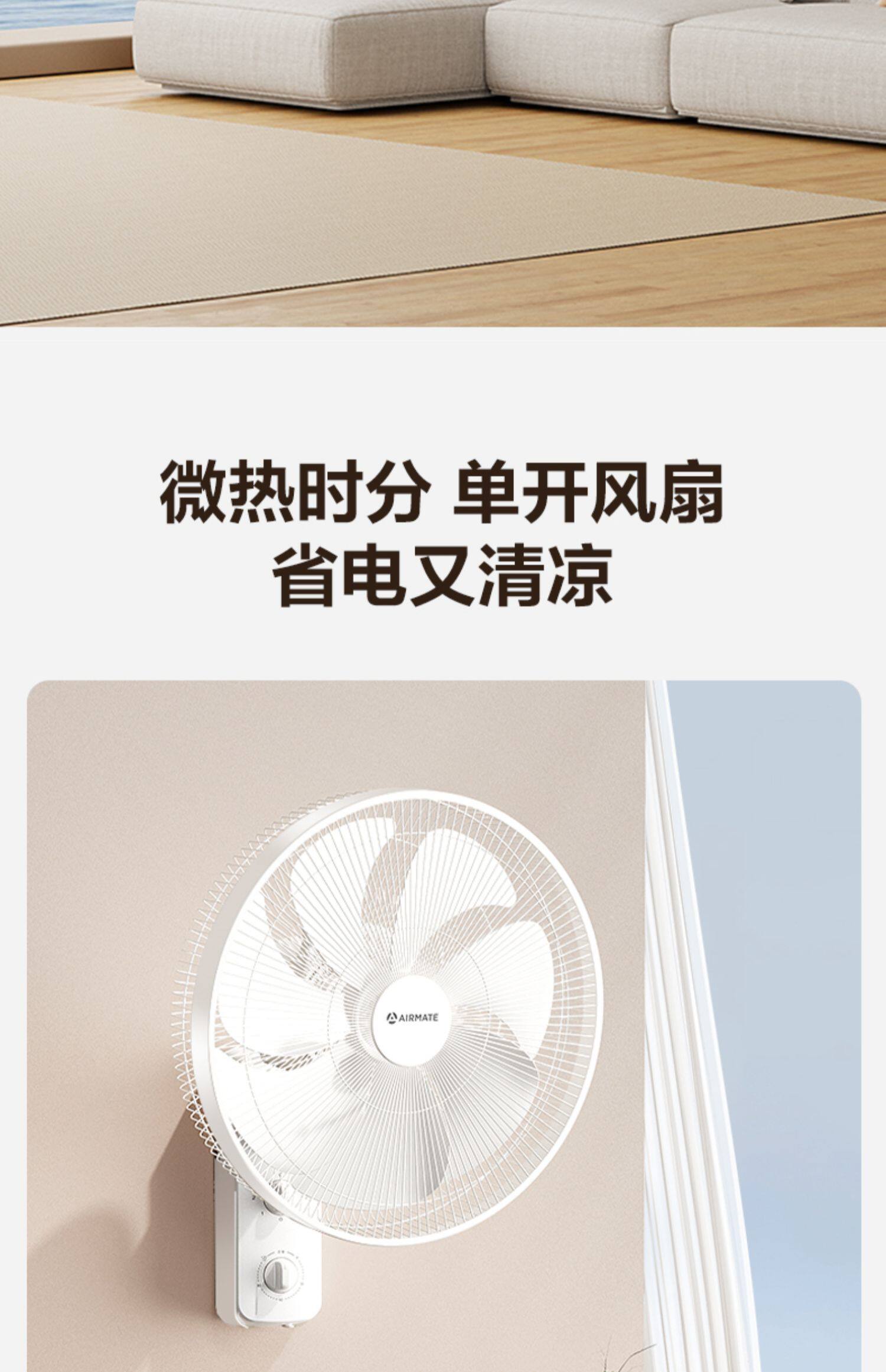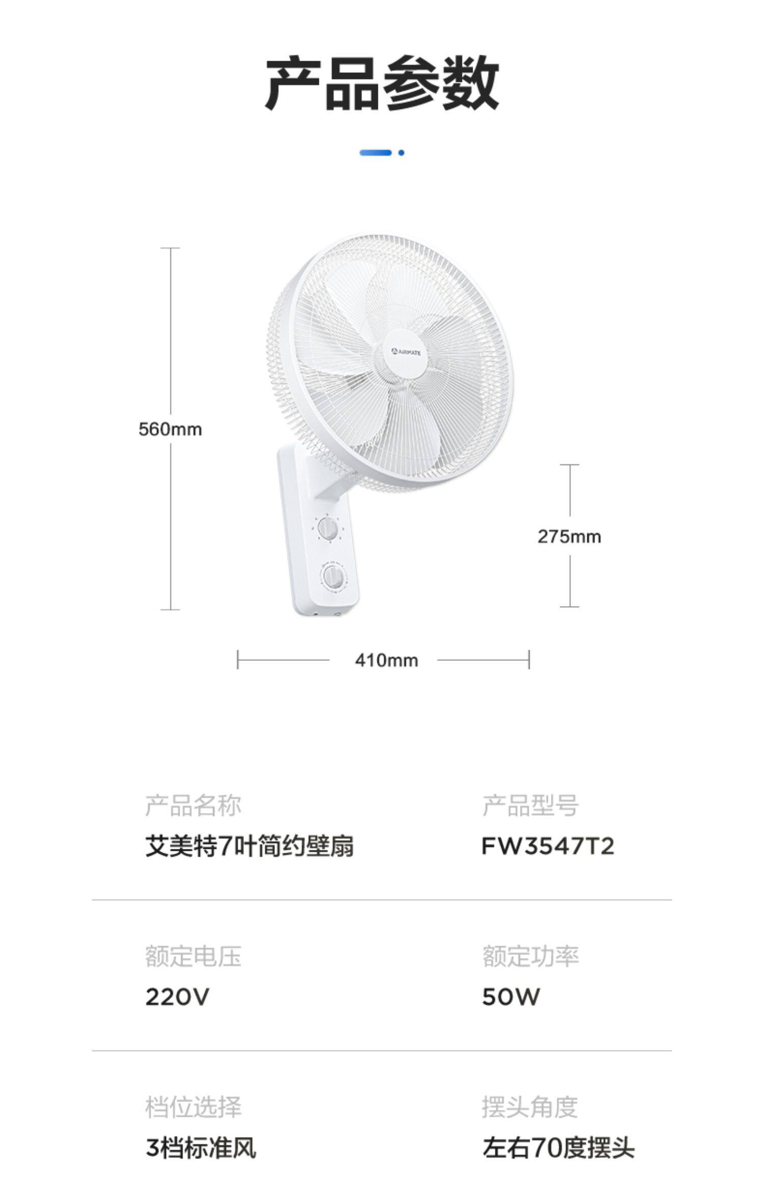 艾美特壁扇电风扇家用挂壁式电扇厨房风扇强力工业壁挂电扇FW3547T2