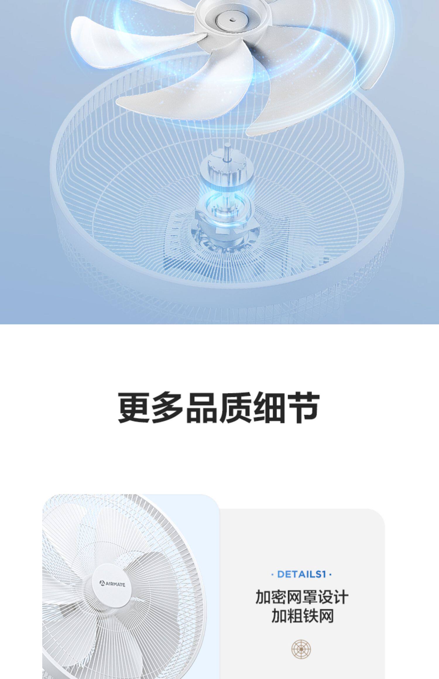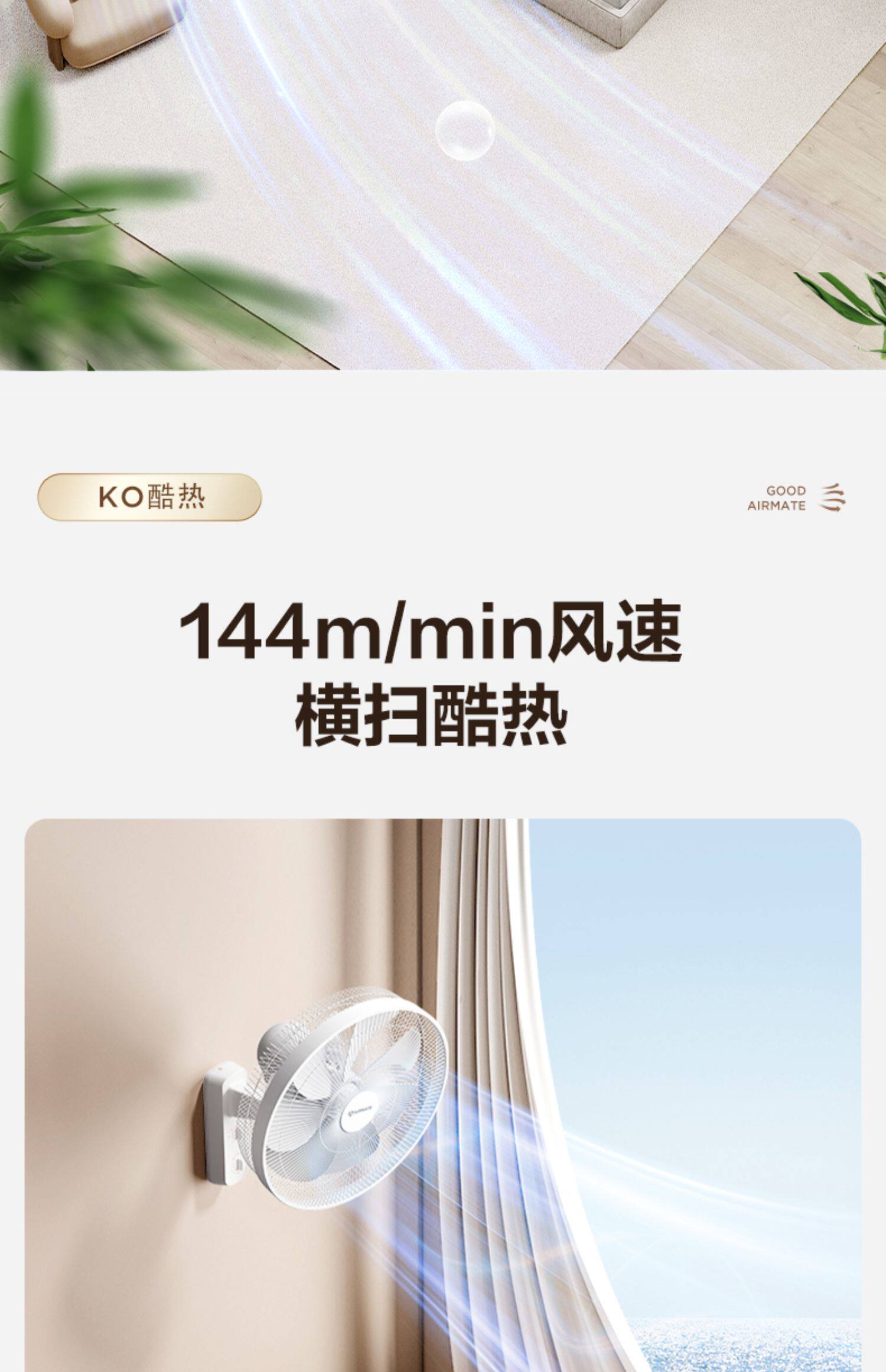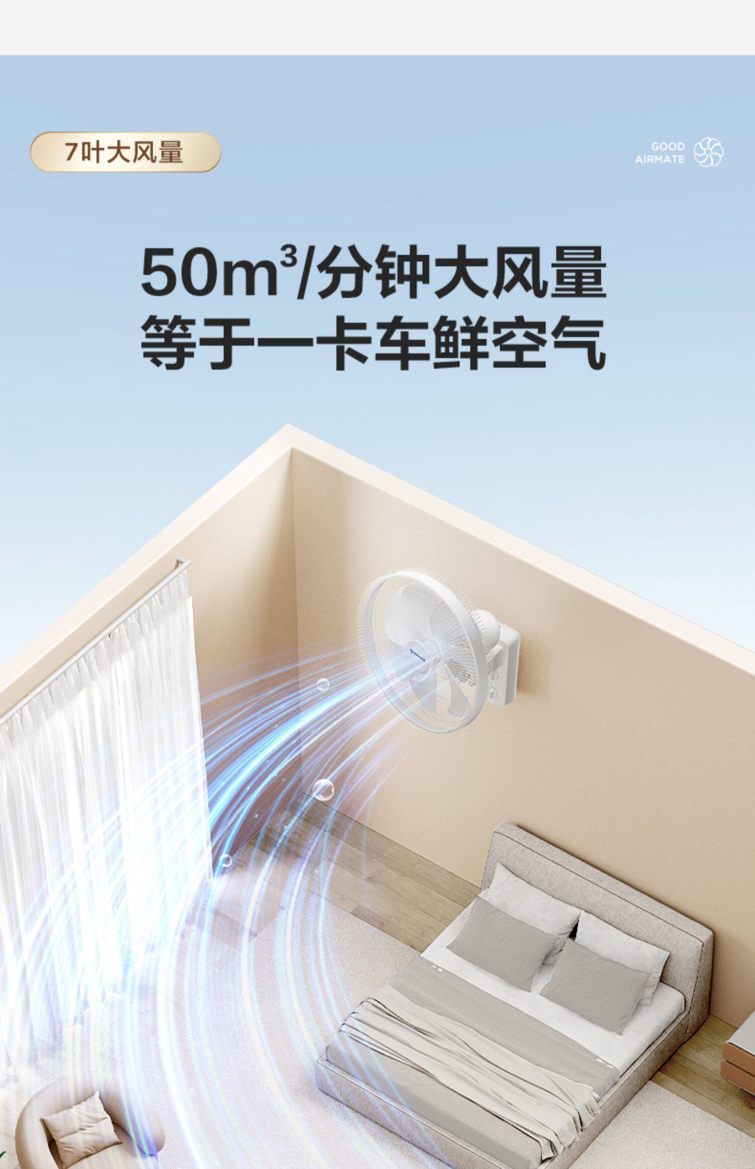 艾美特壁扇电风扇家用挂壁式电扇厨房风扇强力工业壁挂电扇FW3547T2