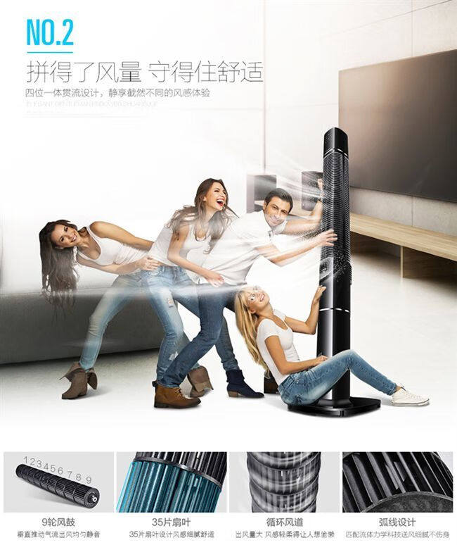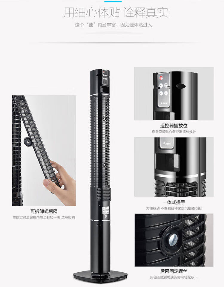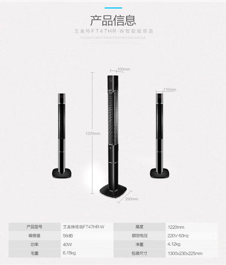 艾美特塔扇家用无叶扇台式遥控静落地扇定时摇头大风扇FT47HR-W