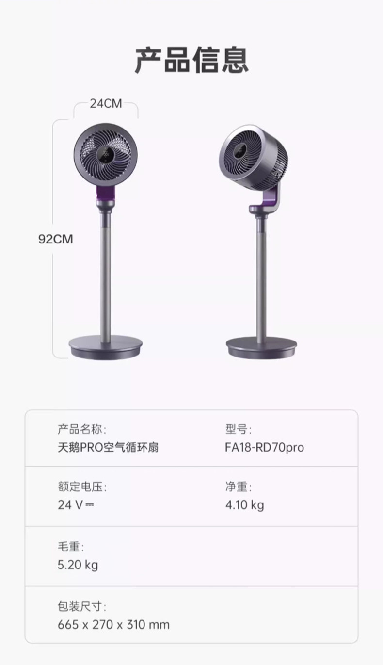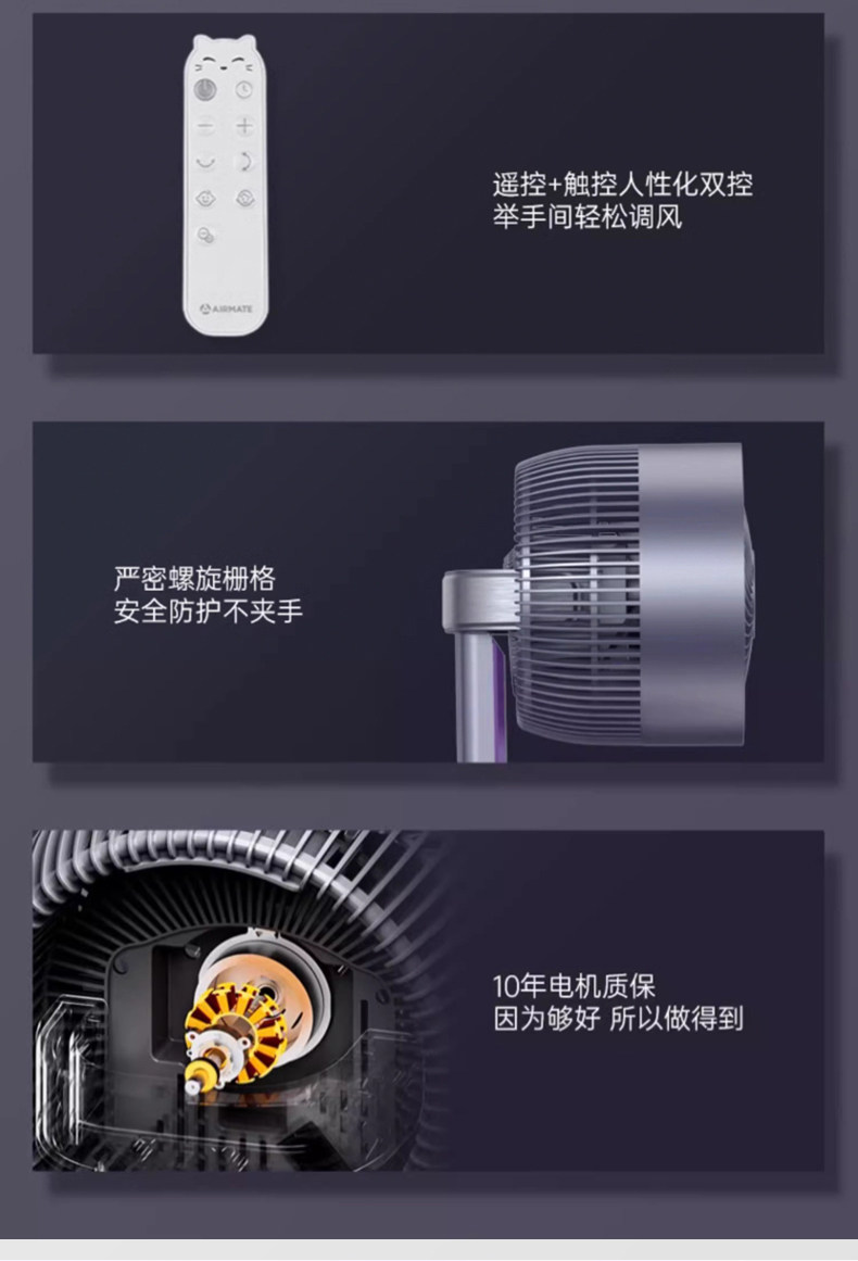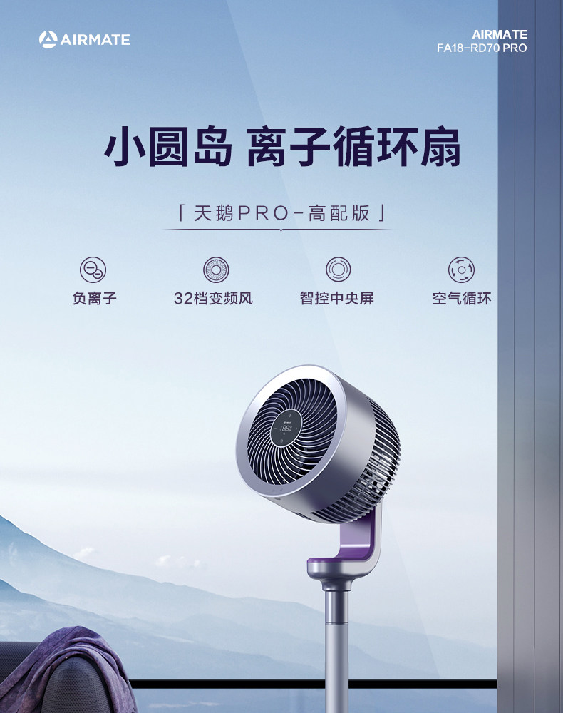 艾美特空气循环扇家用低噪电风扇70pro