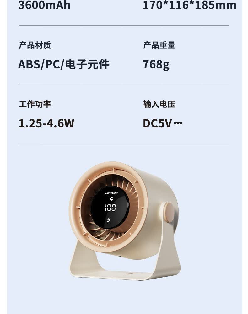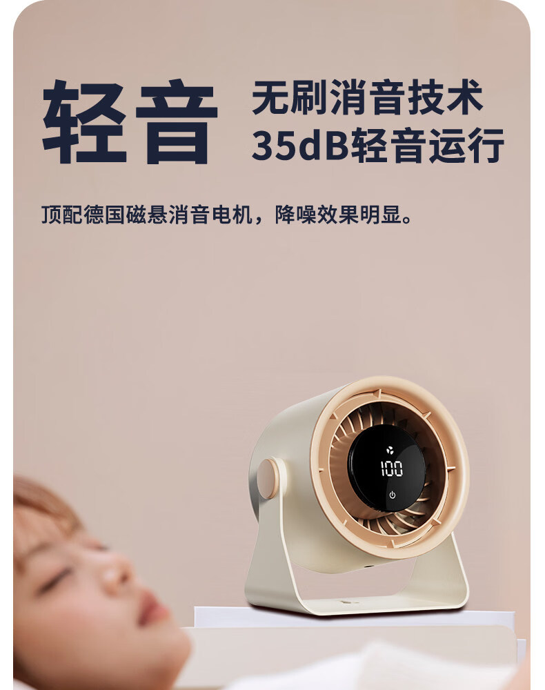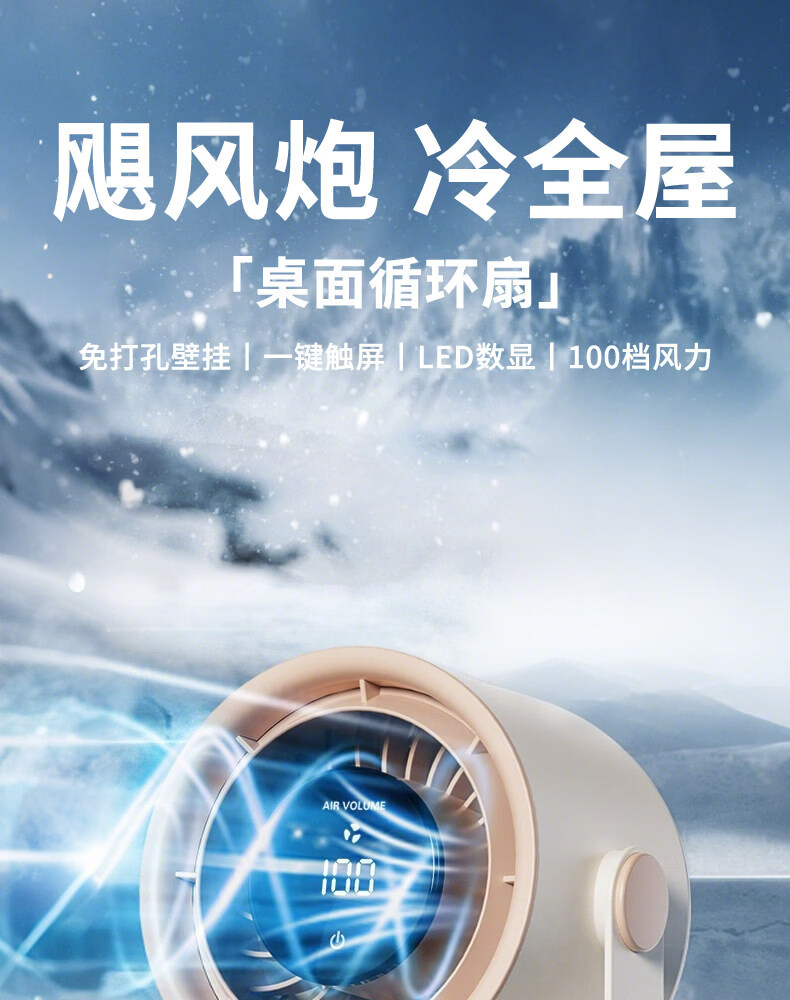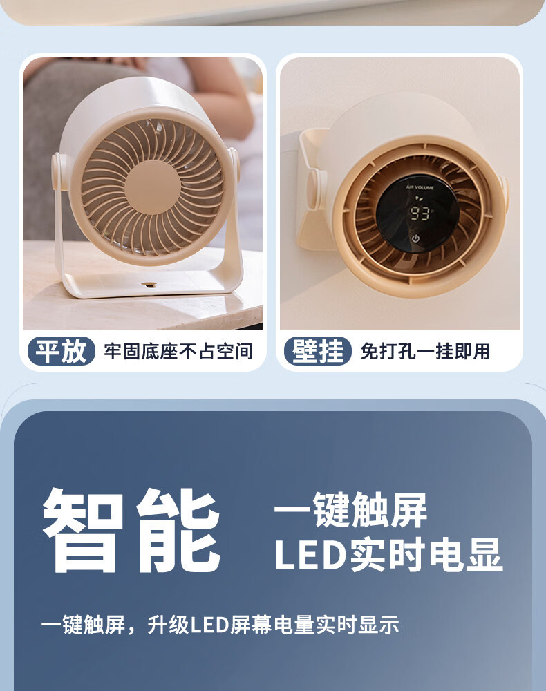 艾美特(AIRMATE)静音大风力循环电风扇USB壁挂台扇宿舍家用 【3600mAh】AH33台壁两用风大音轻100档无极调速 3600mAh